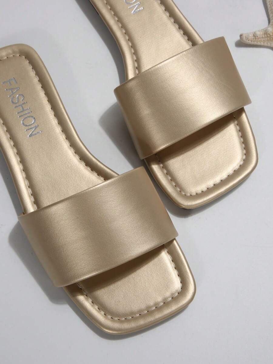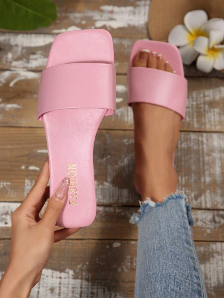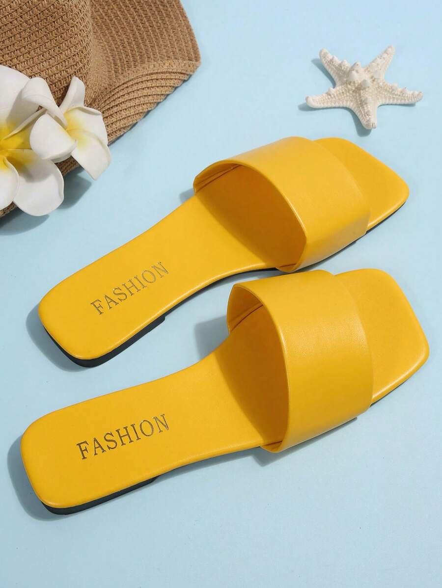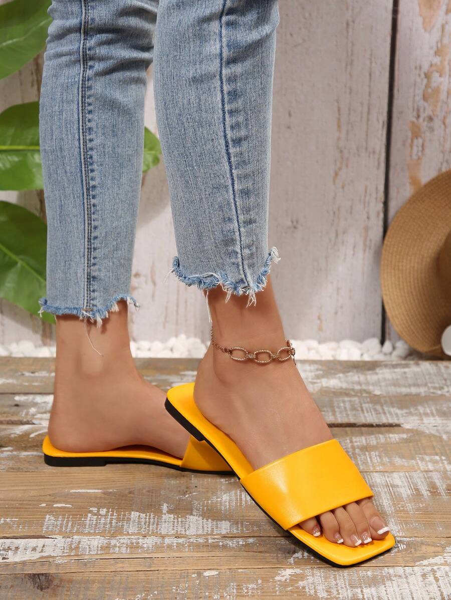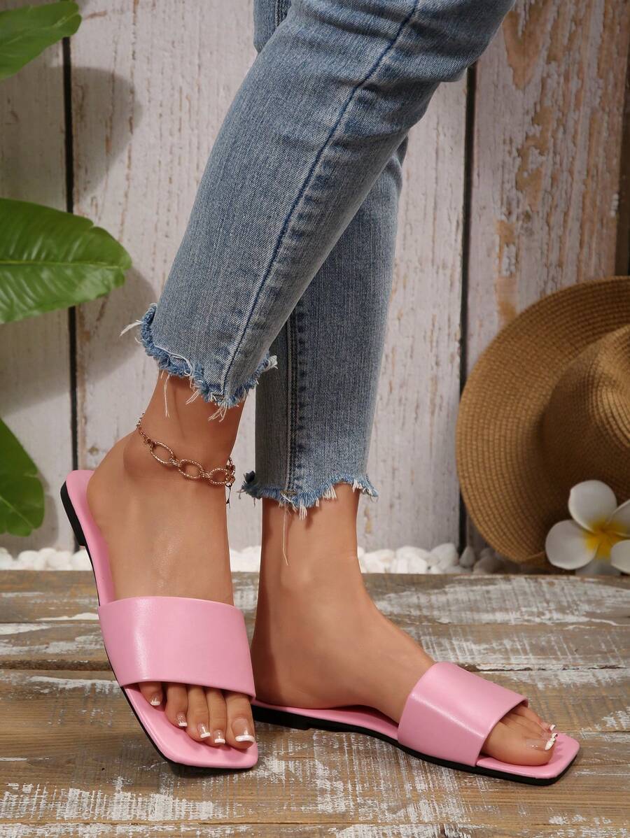 MIU Women's Leather One-Piece Flat Slide Sandals, Black Lightweight Soft Bottom Low Heel Slip-On Mule Sandals For Summer Casual Wear