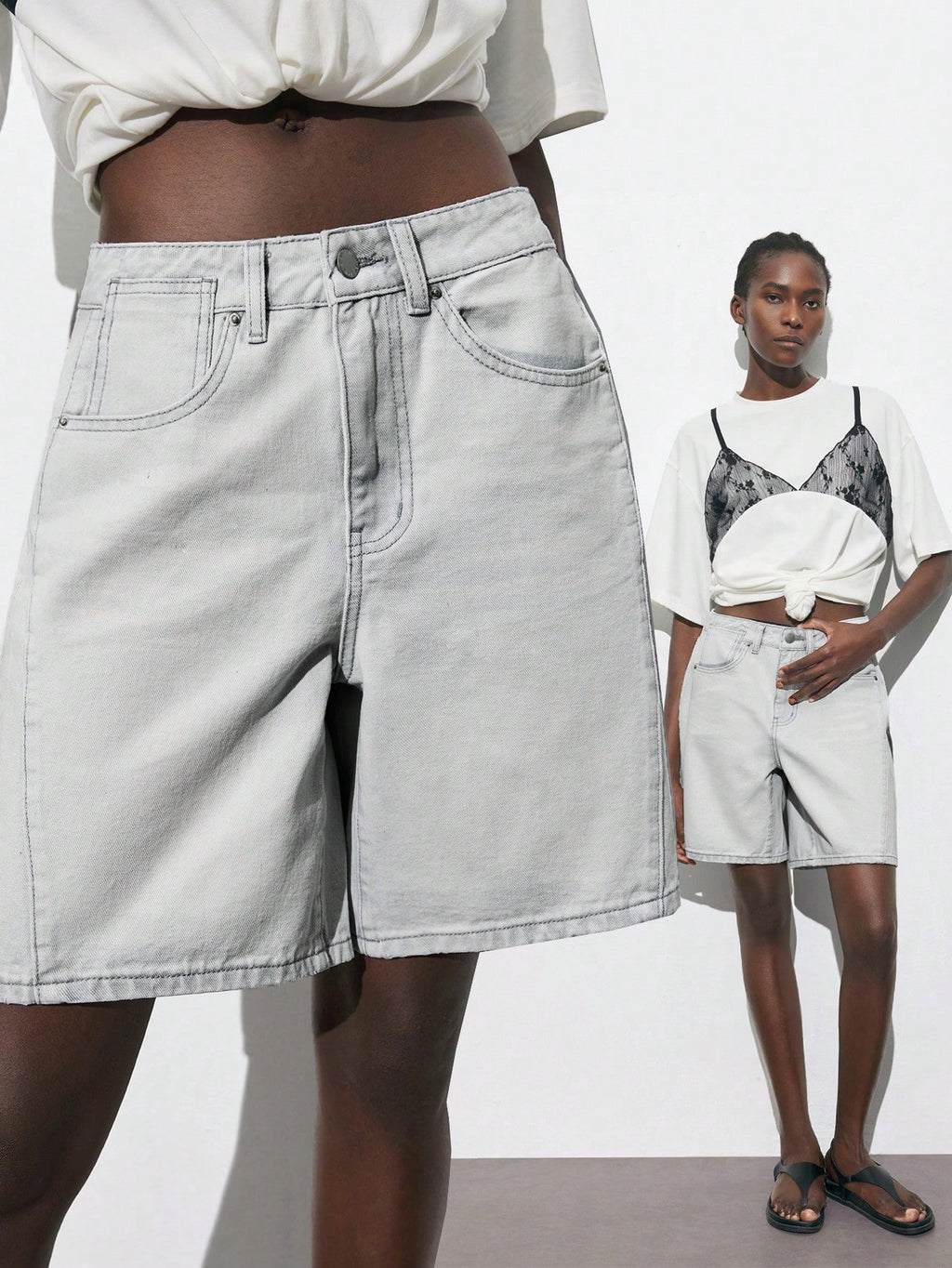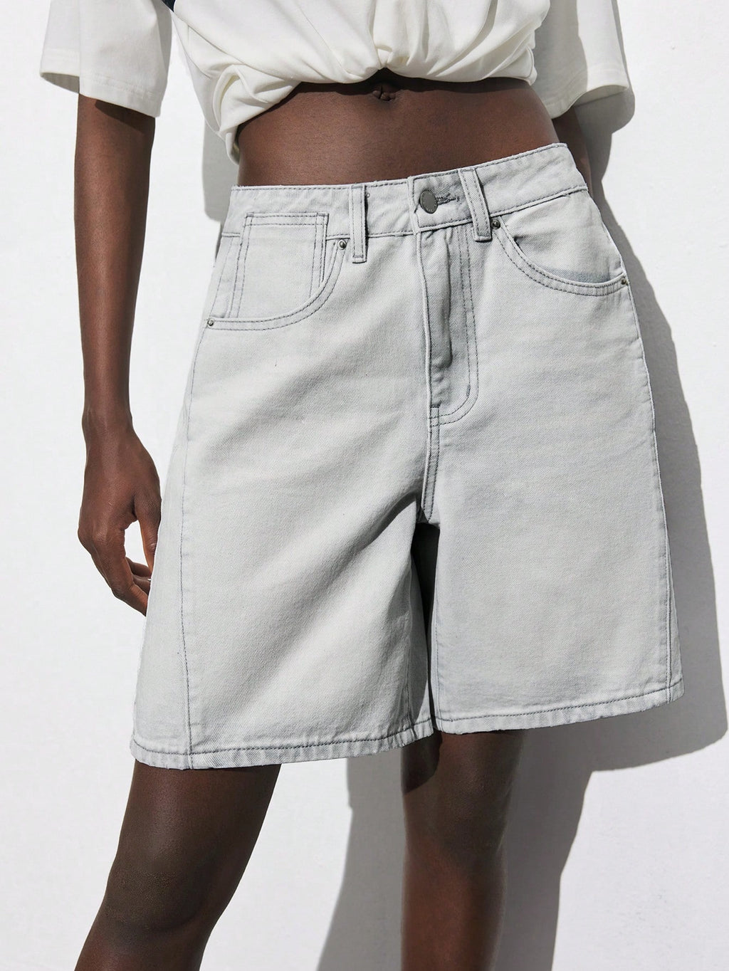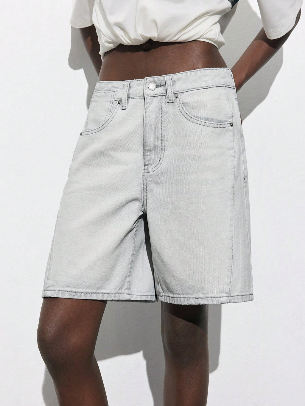 MIU Women's Light Grey Denim Shorts Low Waist Bermuda Shorts Summer Shorts Vacation And Leisure Wear