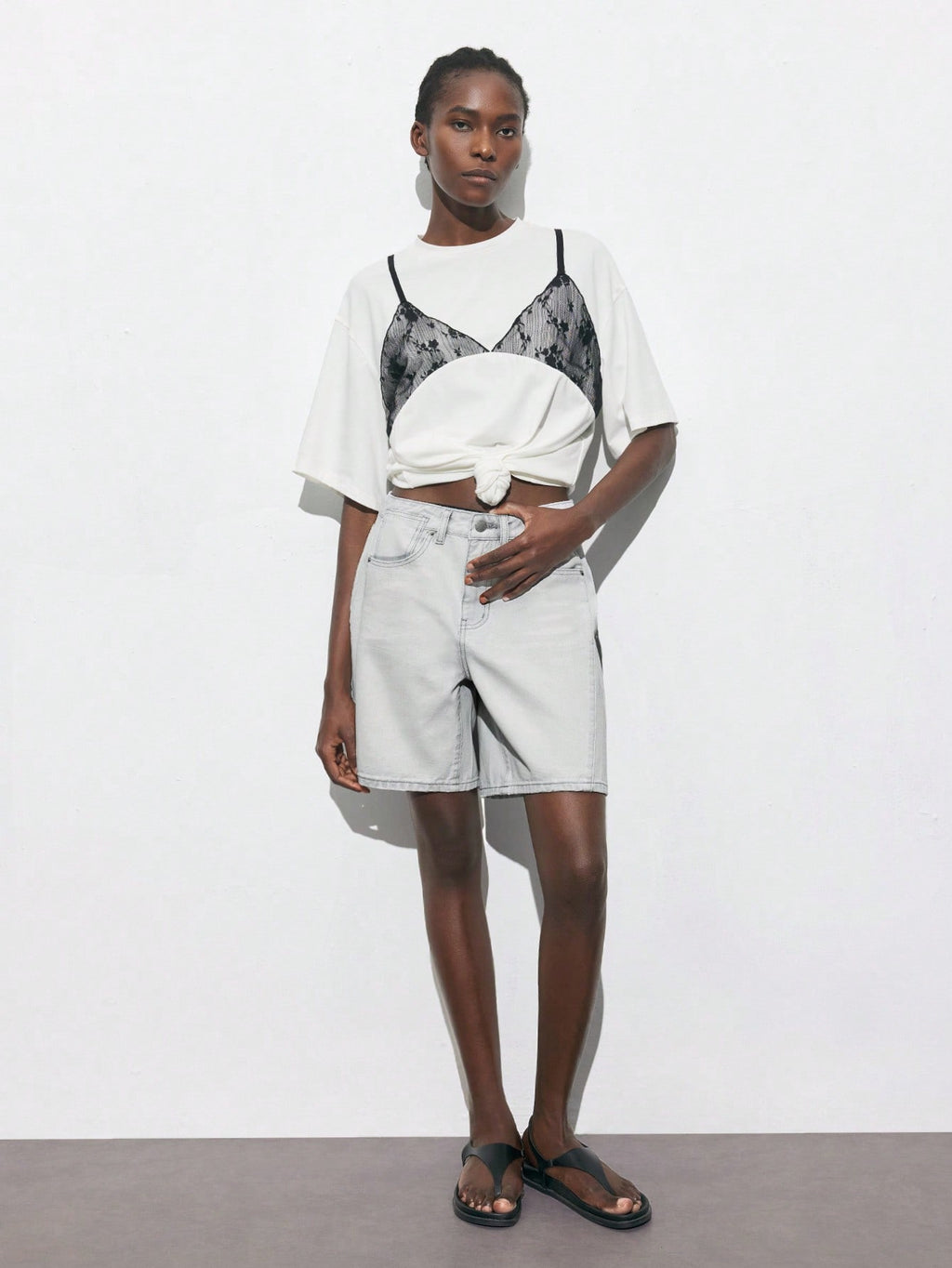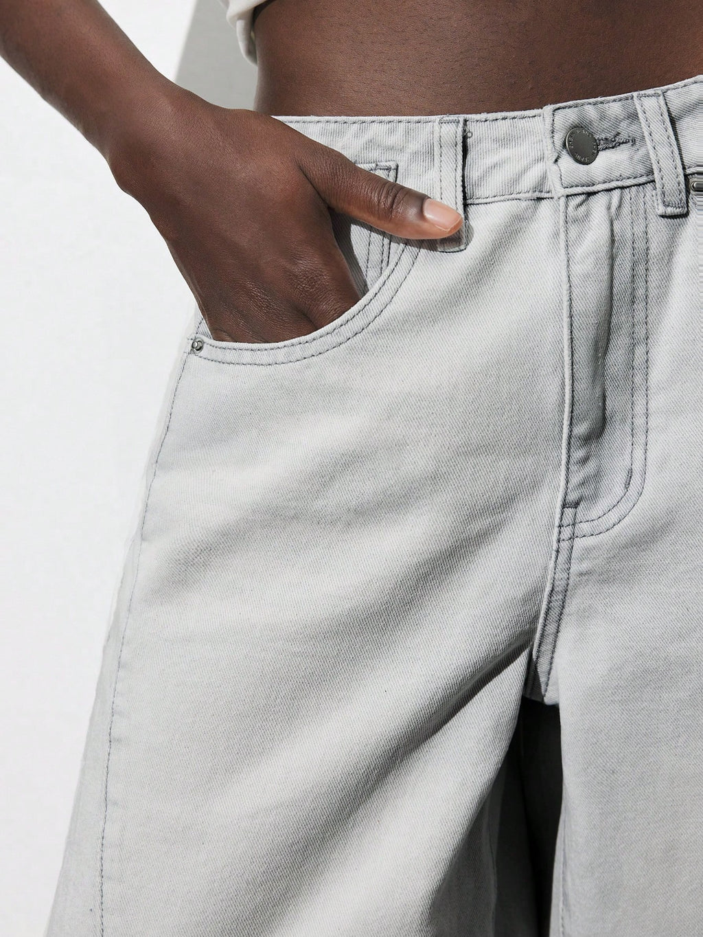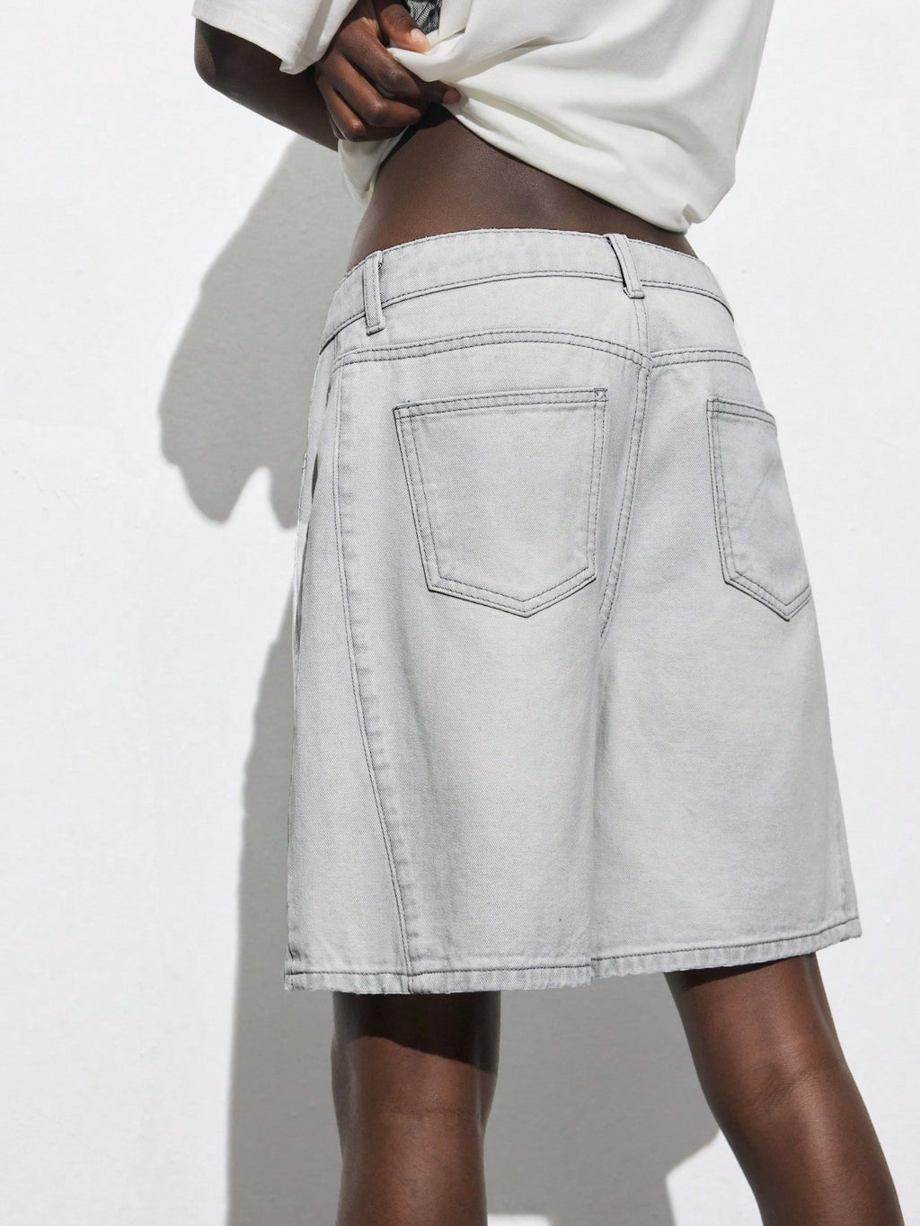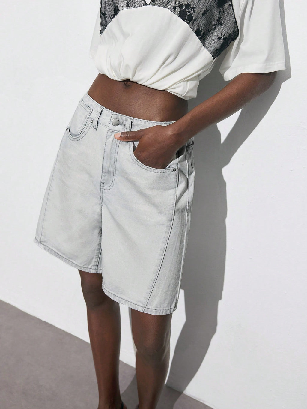 MIU Women's Light Grey Denim Shorts Low Waist Bermuda Shorts Summer Shorts Vacation And Leisure Wear