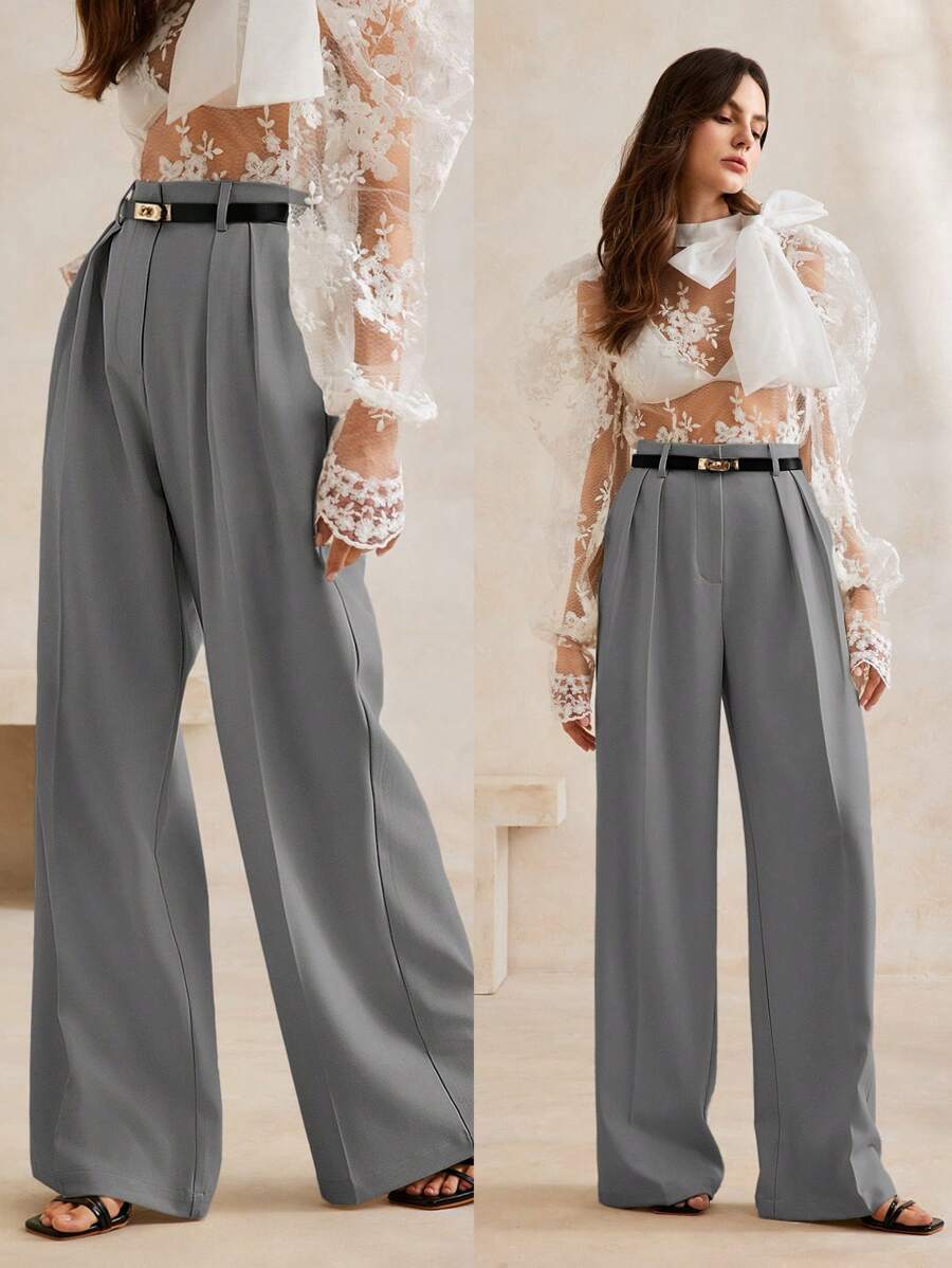 MIU Women's Modern Stylish Simple Wide-Leg Suit Pants, Spring/Summer Women Clothing Pants