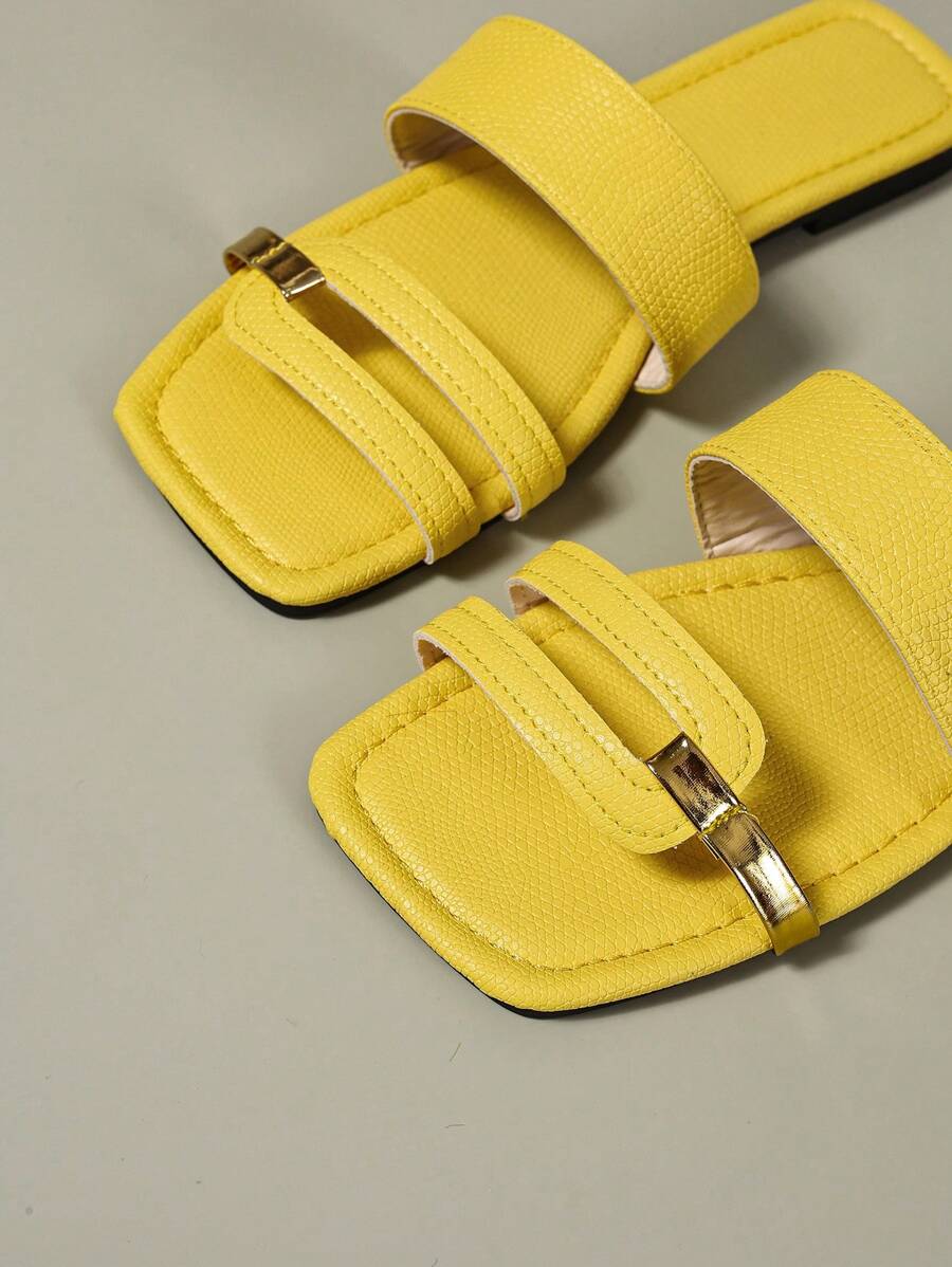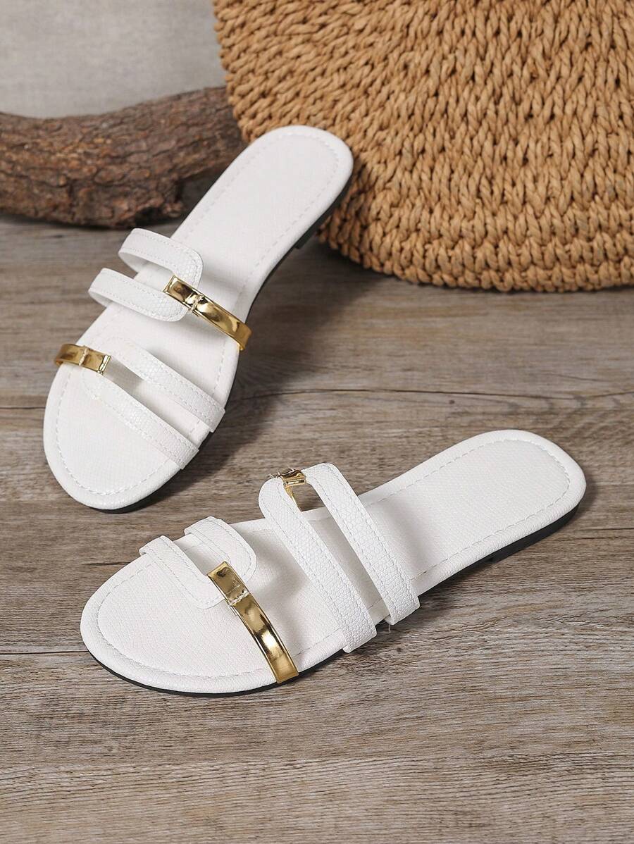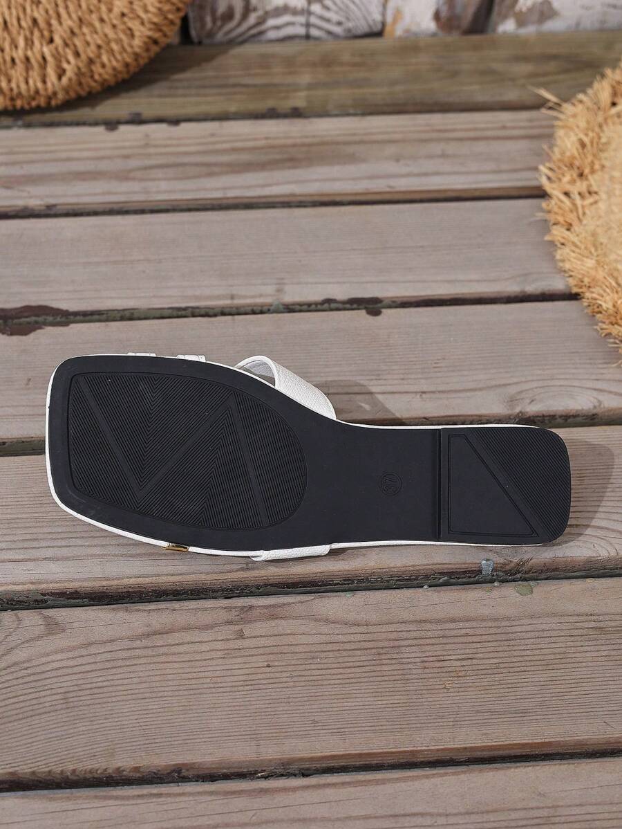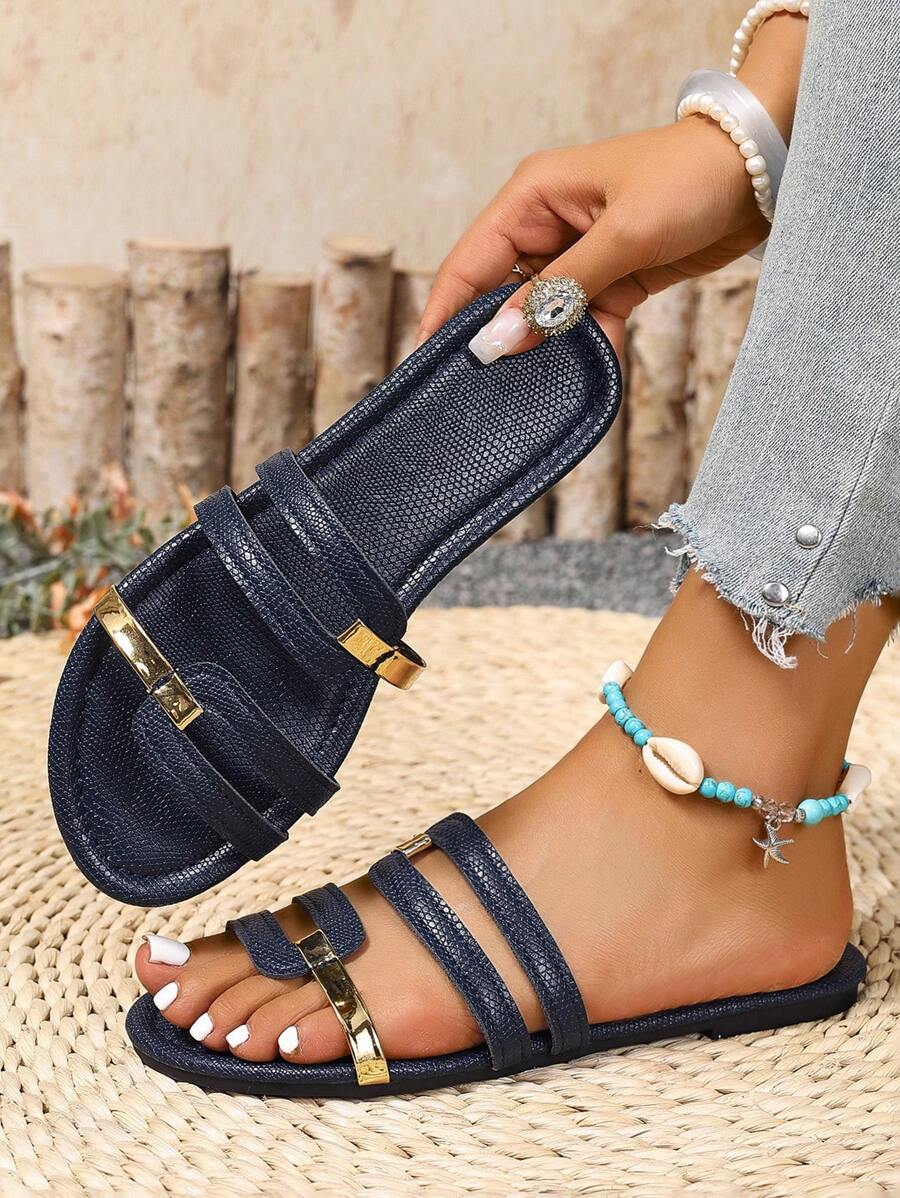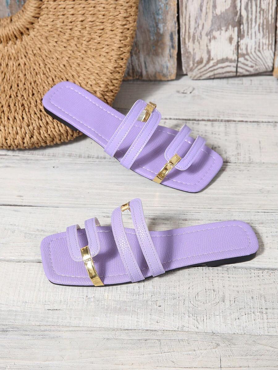 MIU Women's New Brown Square Toe Gold Strap Hollow Open Toe Casual Slip-On Sandals For Summer Vacation, Beach, Daily Wear