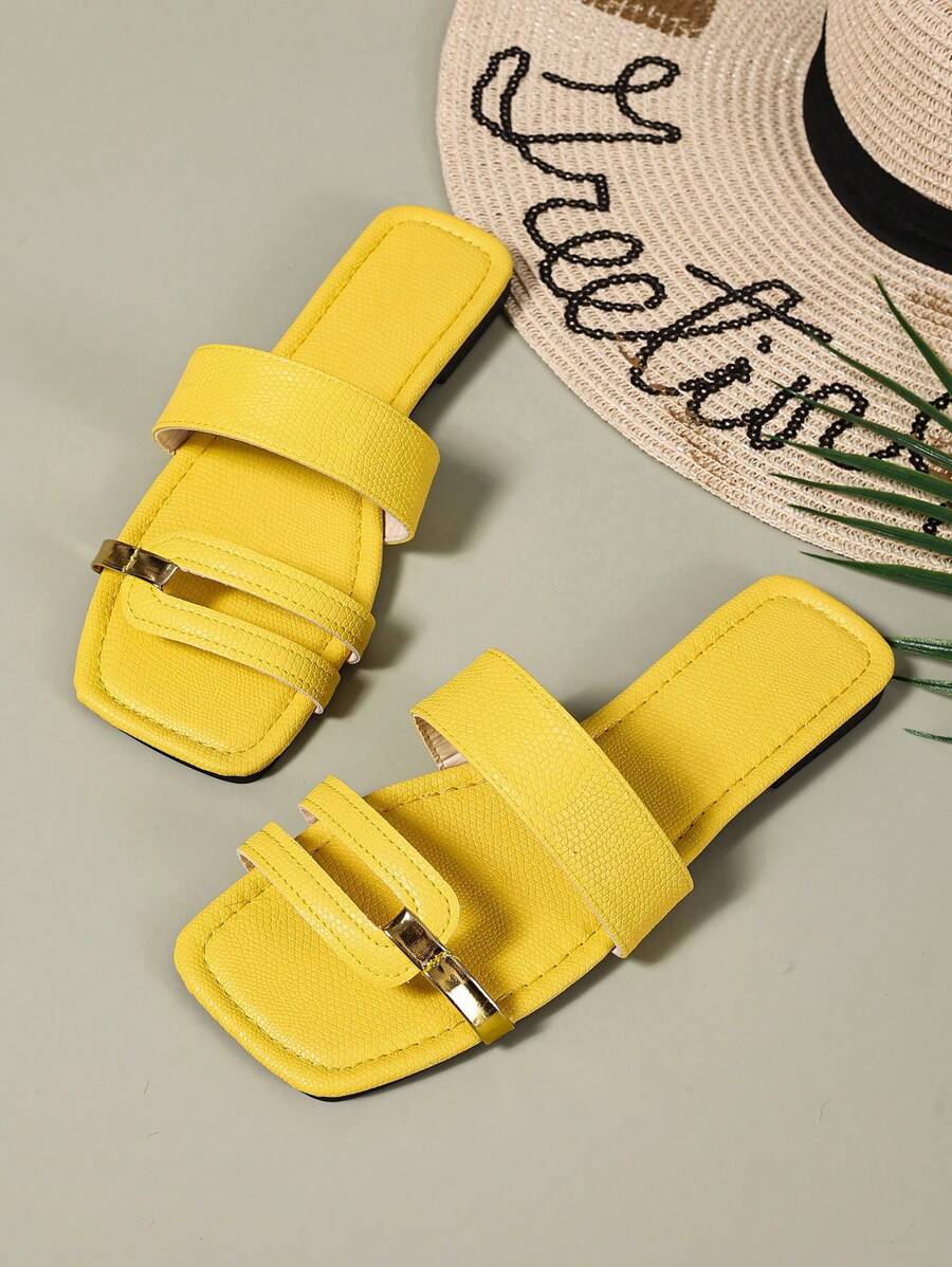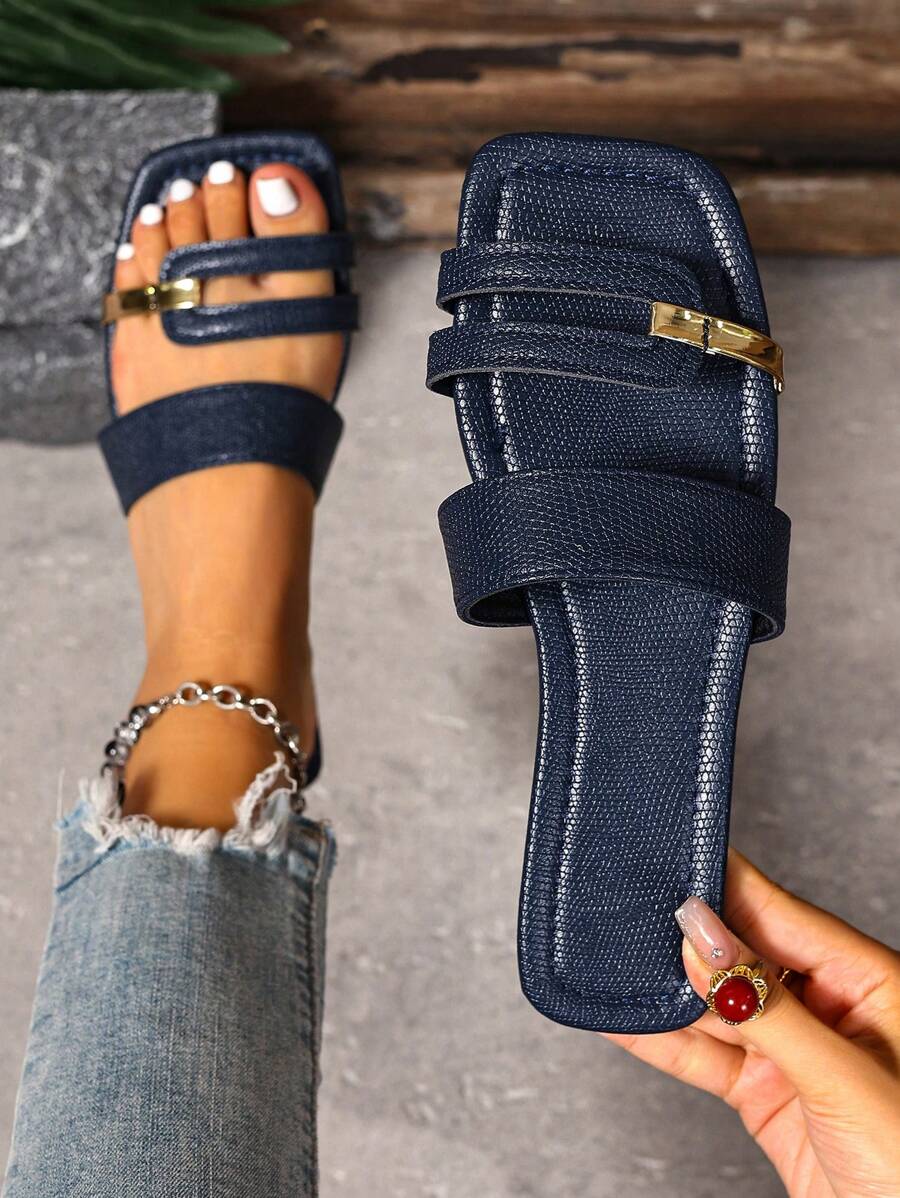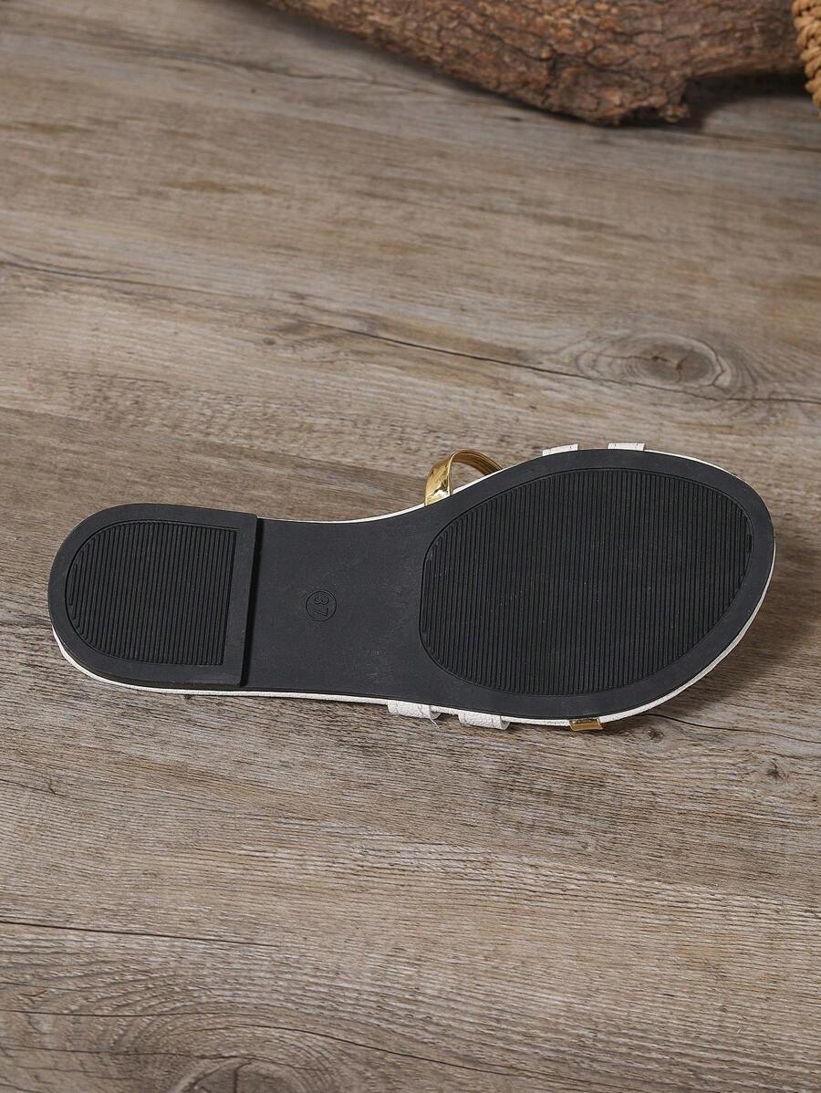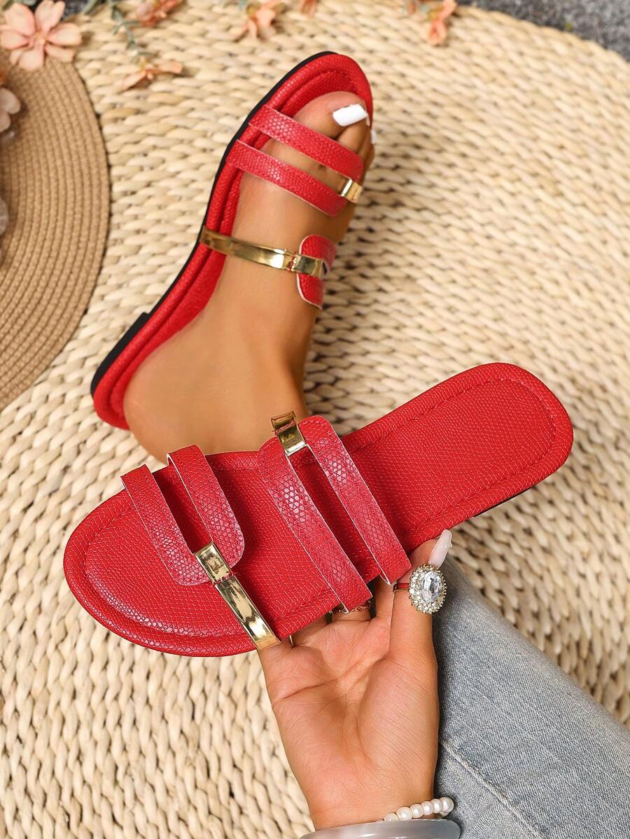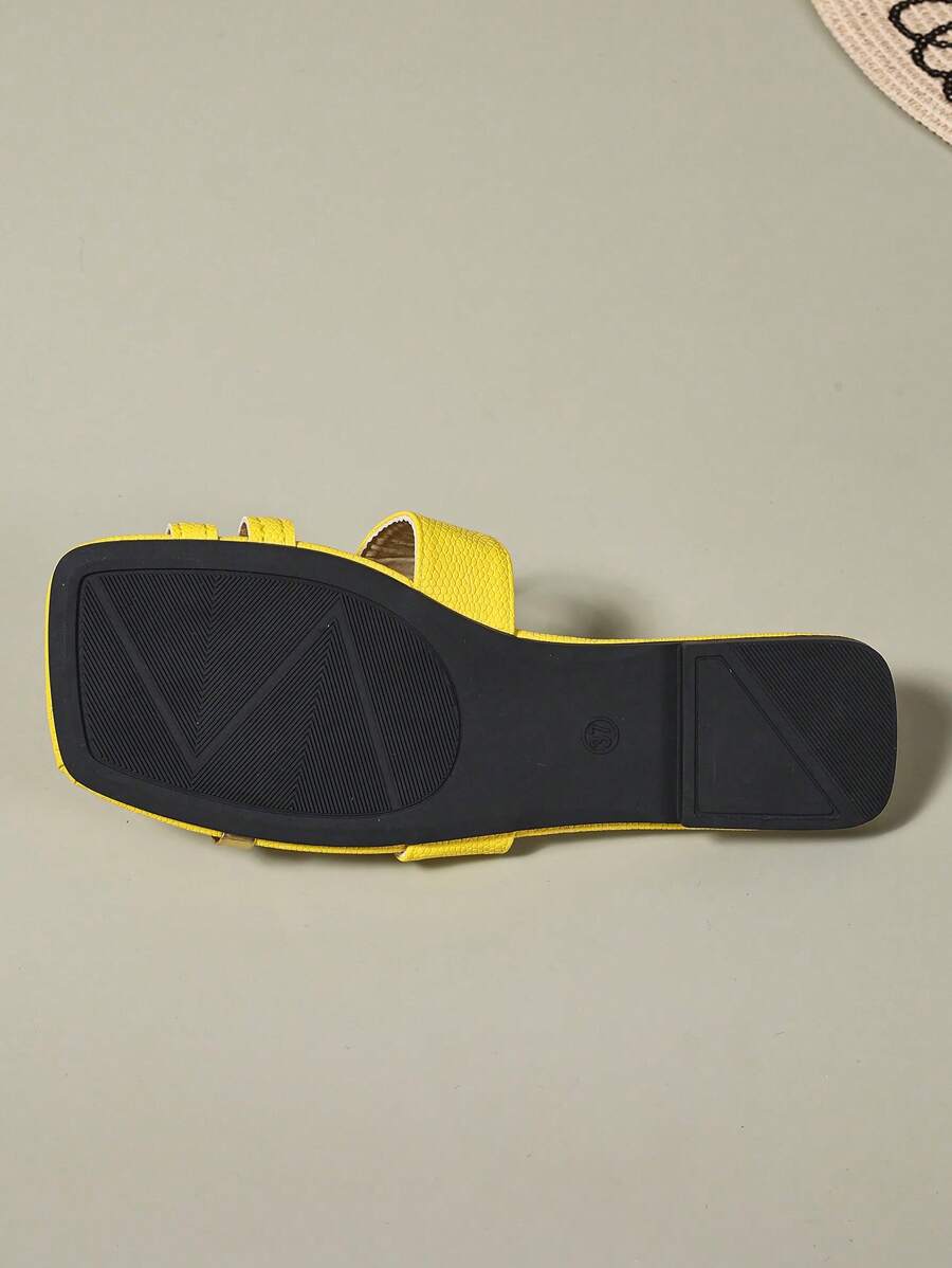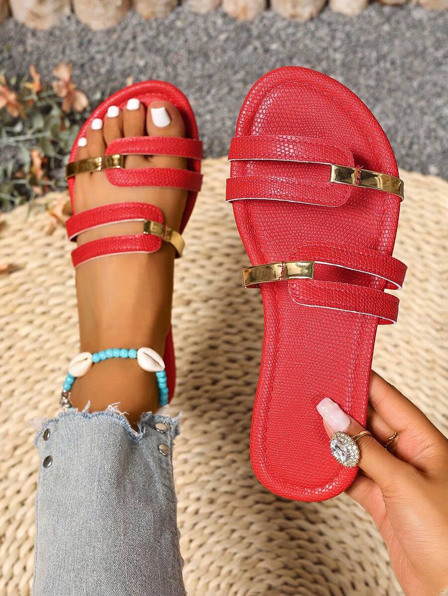 MIU Women's New Brown Square Toe Gold Strap Hollow Open Toe Casual Slip-On Sandals For Summer Vacation, Beach, Daily Wear