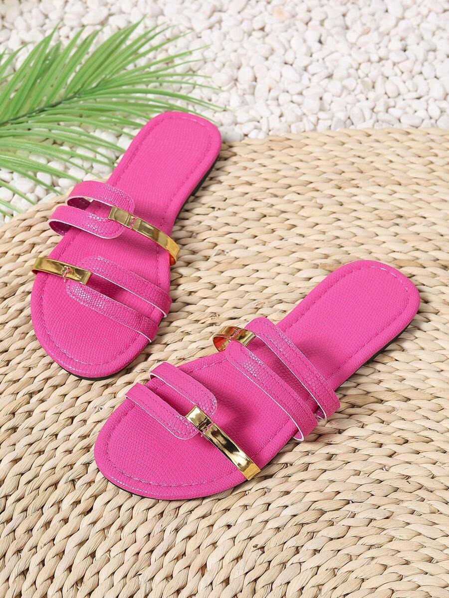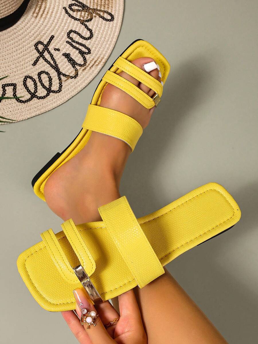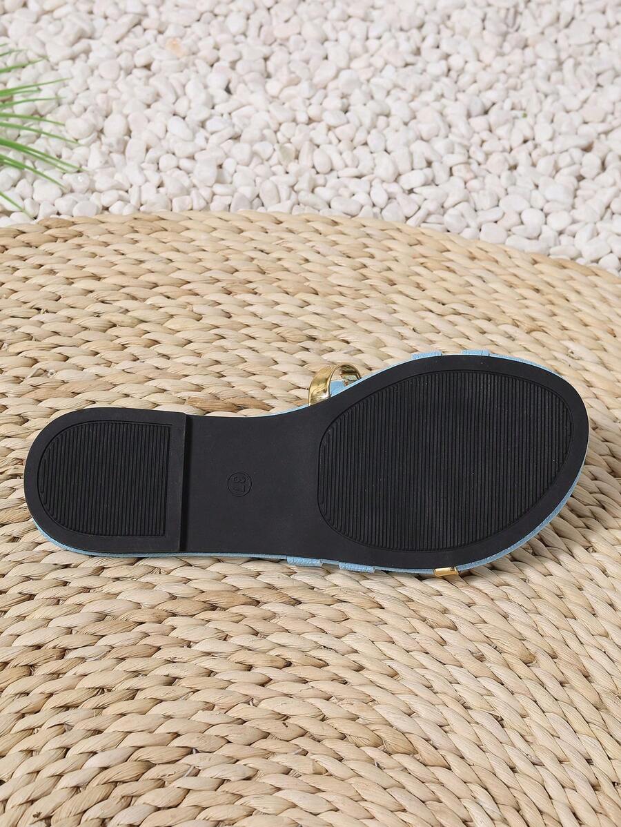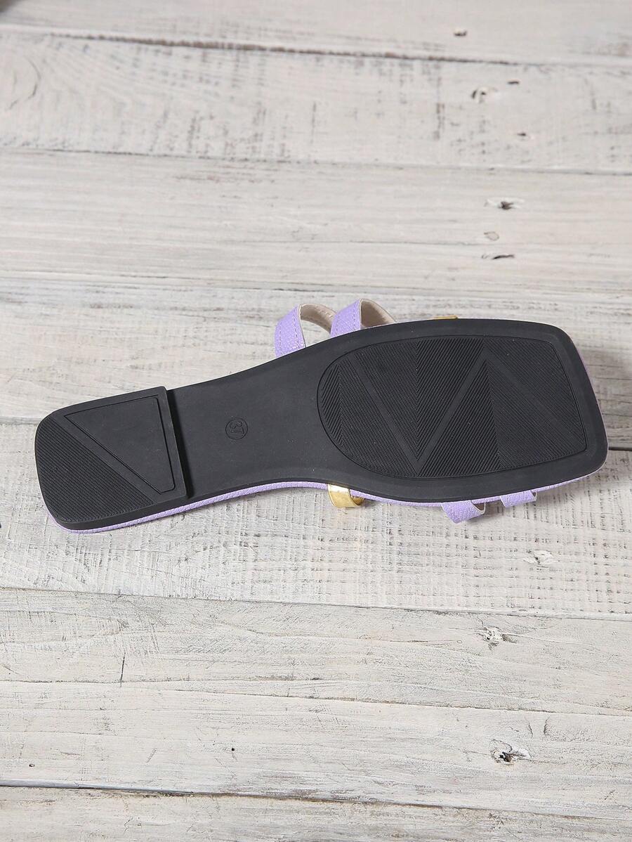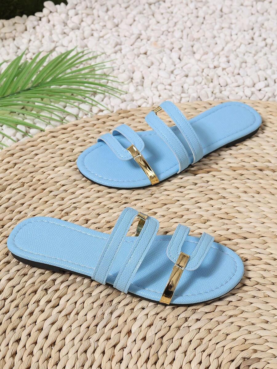 MIU Women's New Brown Square Toe Gold Strap Hollow Open Toe Casual Slip-On Sandals For Summer Vacation, Beach, Daily Wear