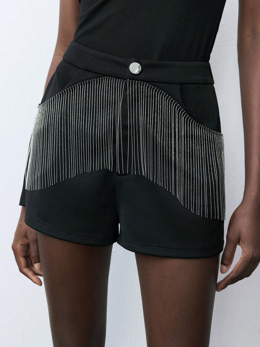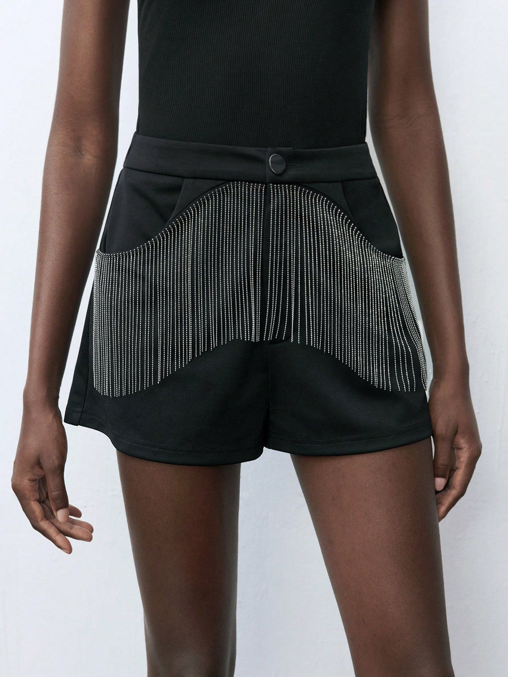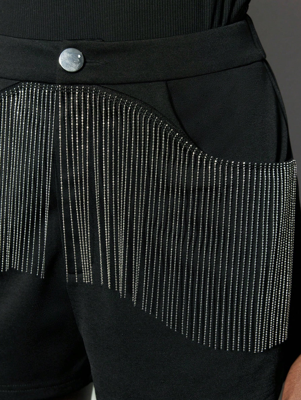 MIU Women's One Shoulder Tassel Fashion Party Gathering Matching Summer Shorts
