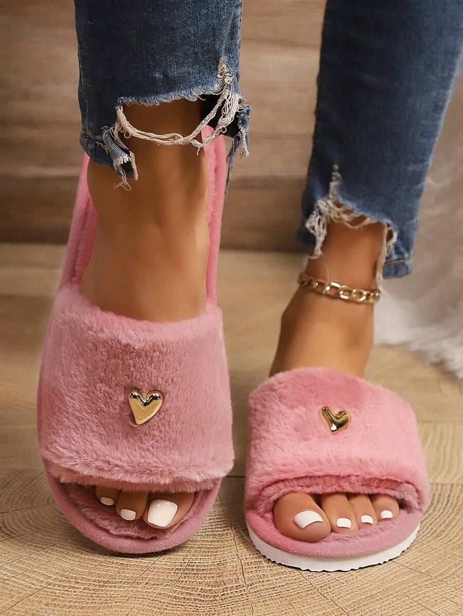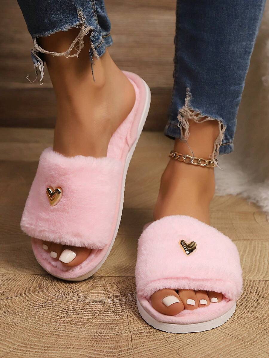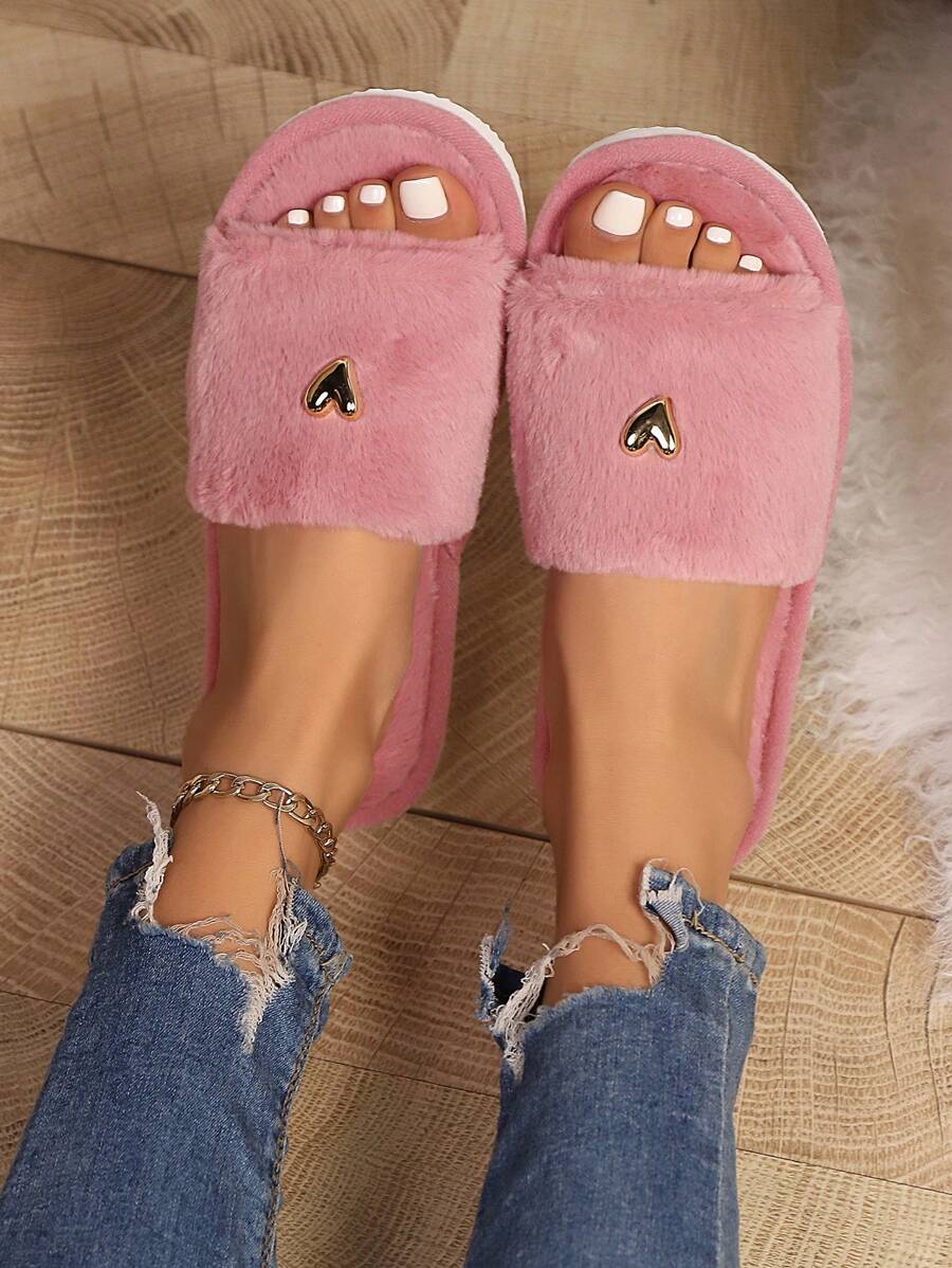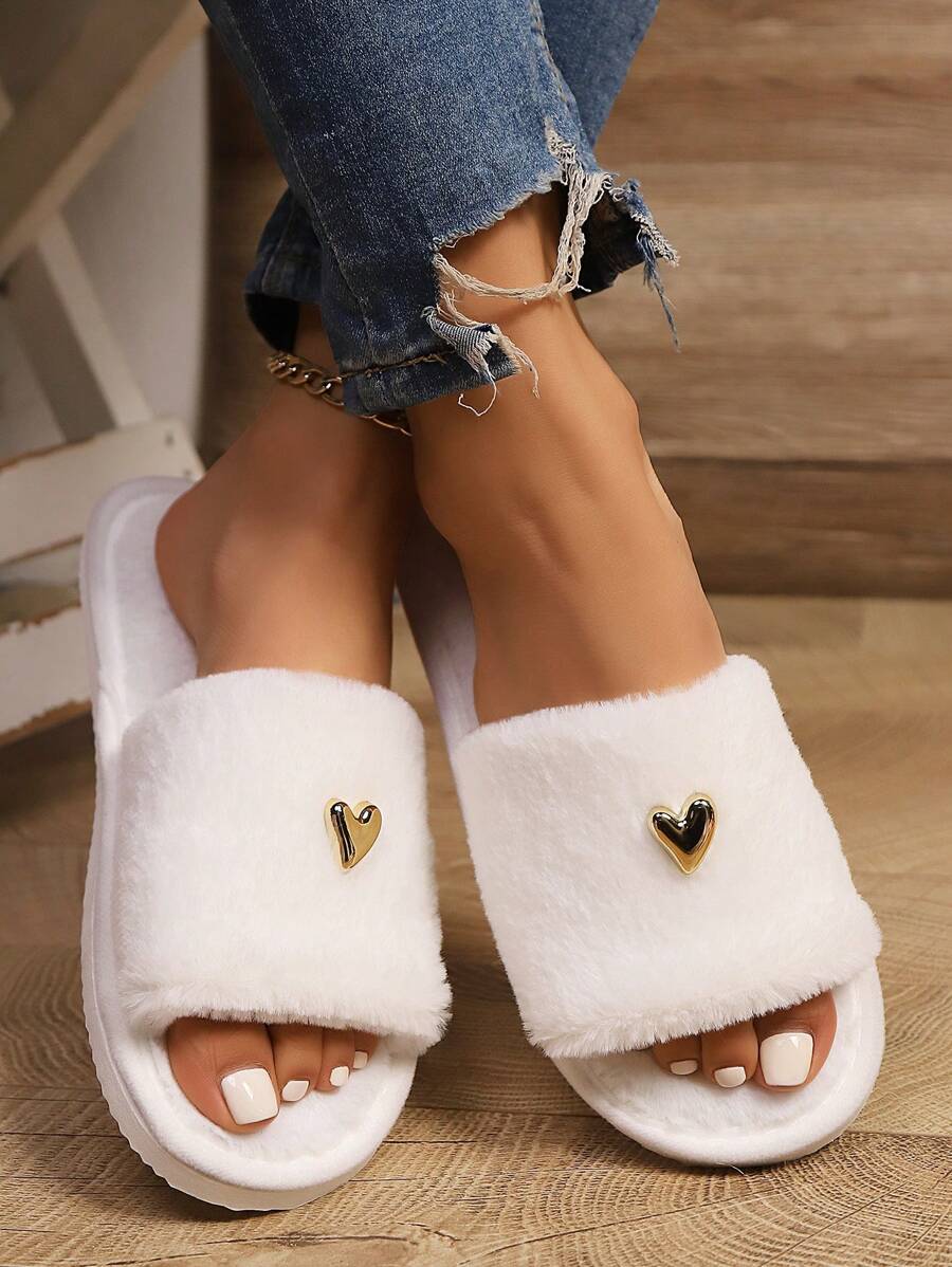 MIU Women's Premium Fashion Heart Decor Plush Slippers, Soft
