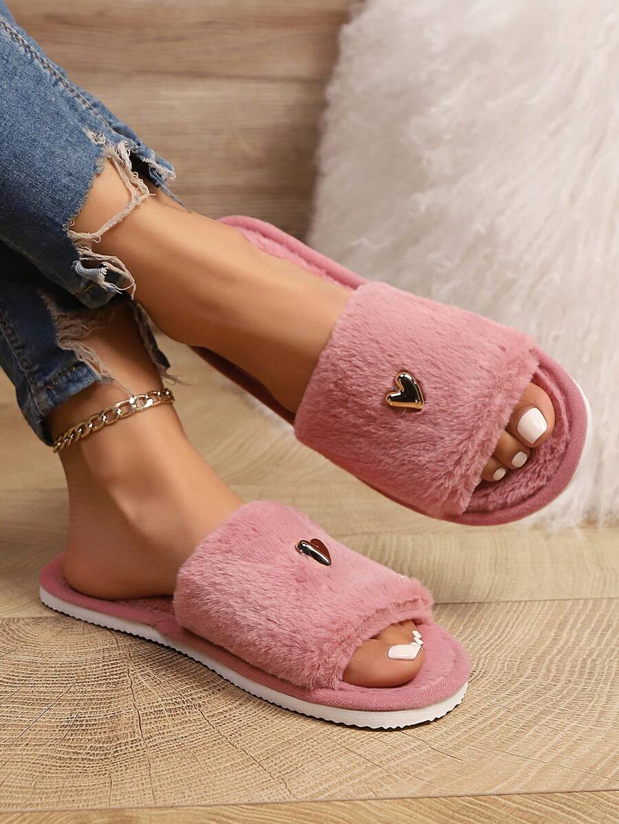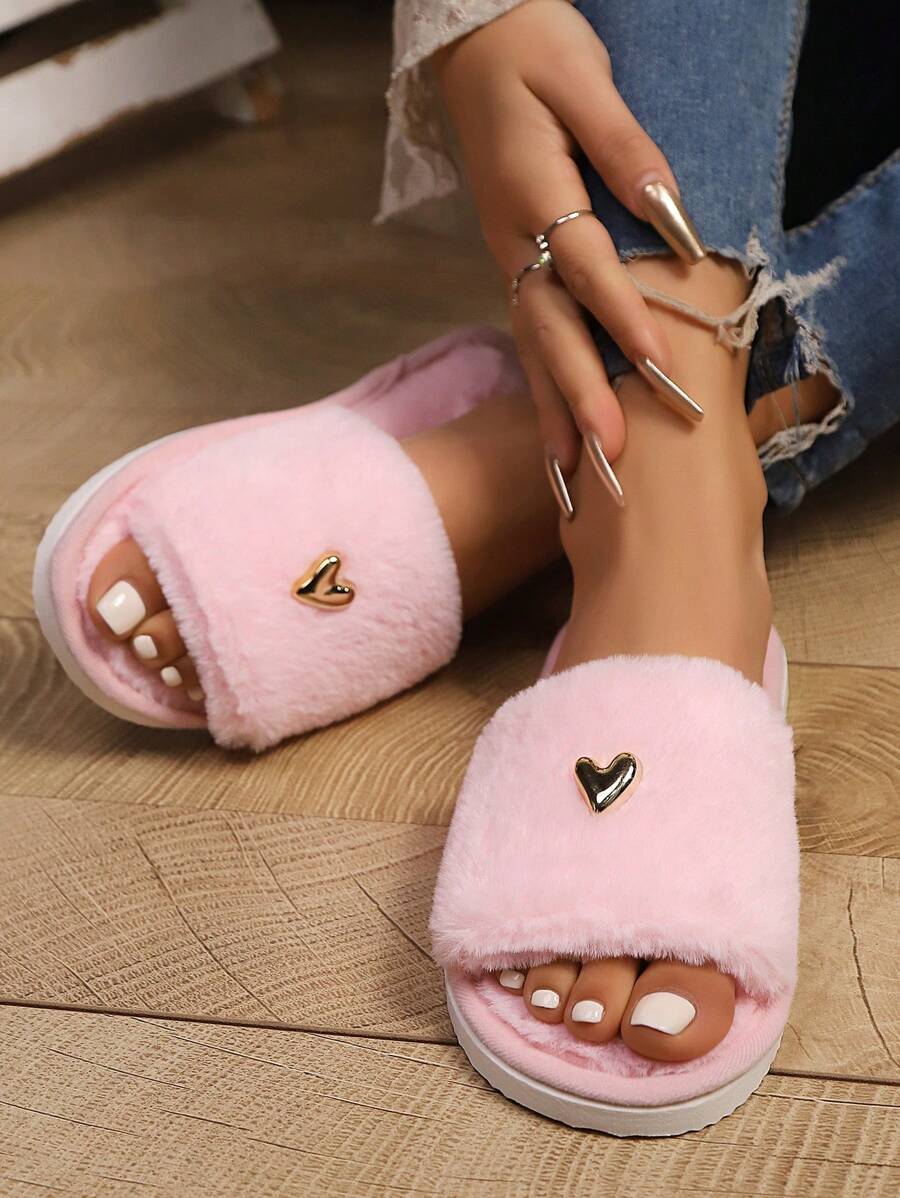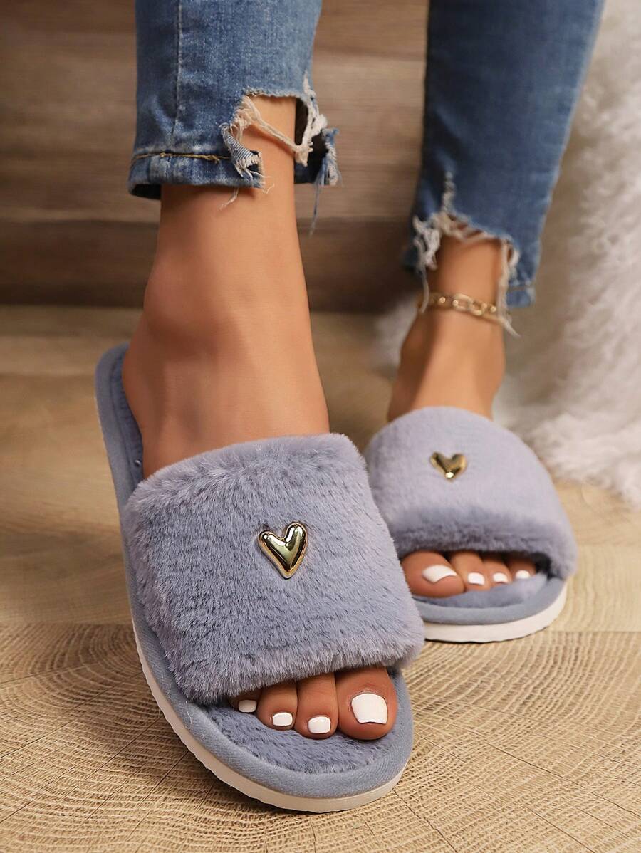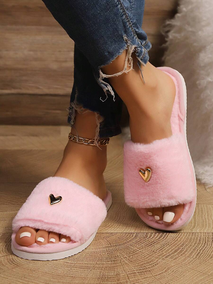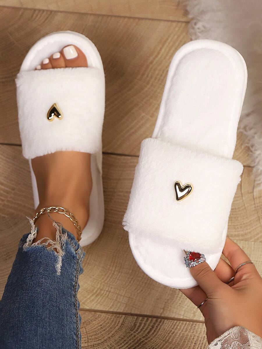 MIU Women's Premium Fashion Heart Decor Plush Slippers, Soft