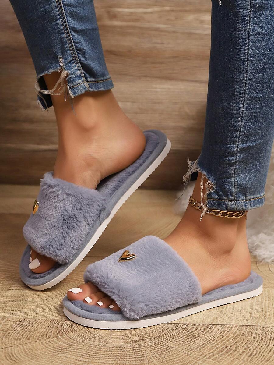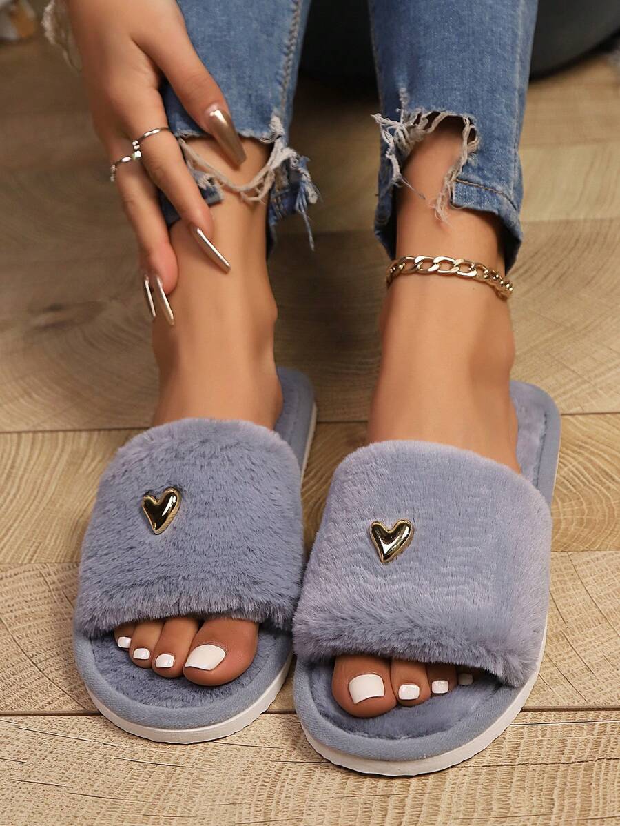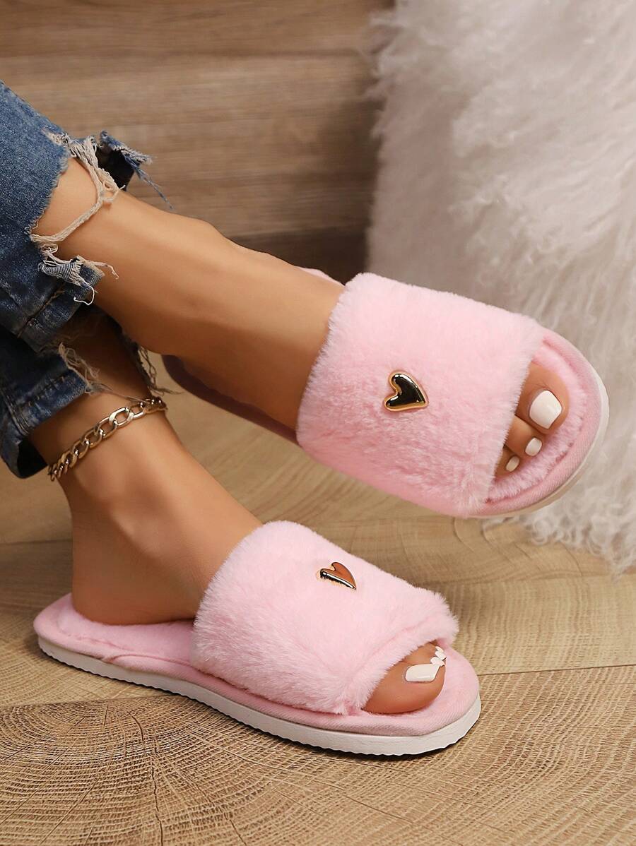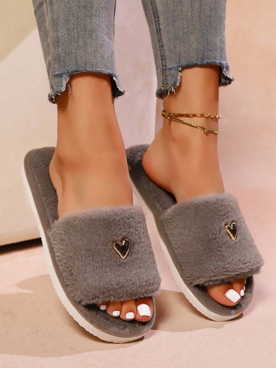 MIU Women's Premium Fashion Heart Decor Plush Slippers, Soft