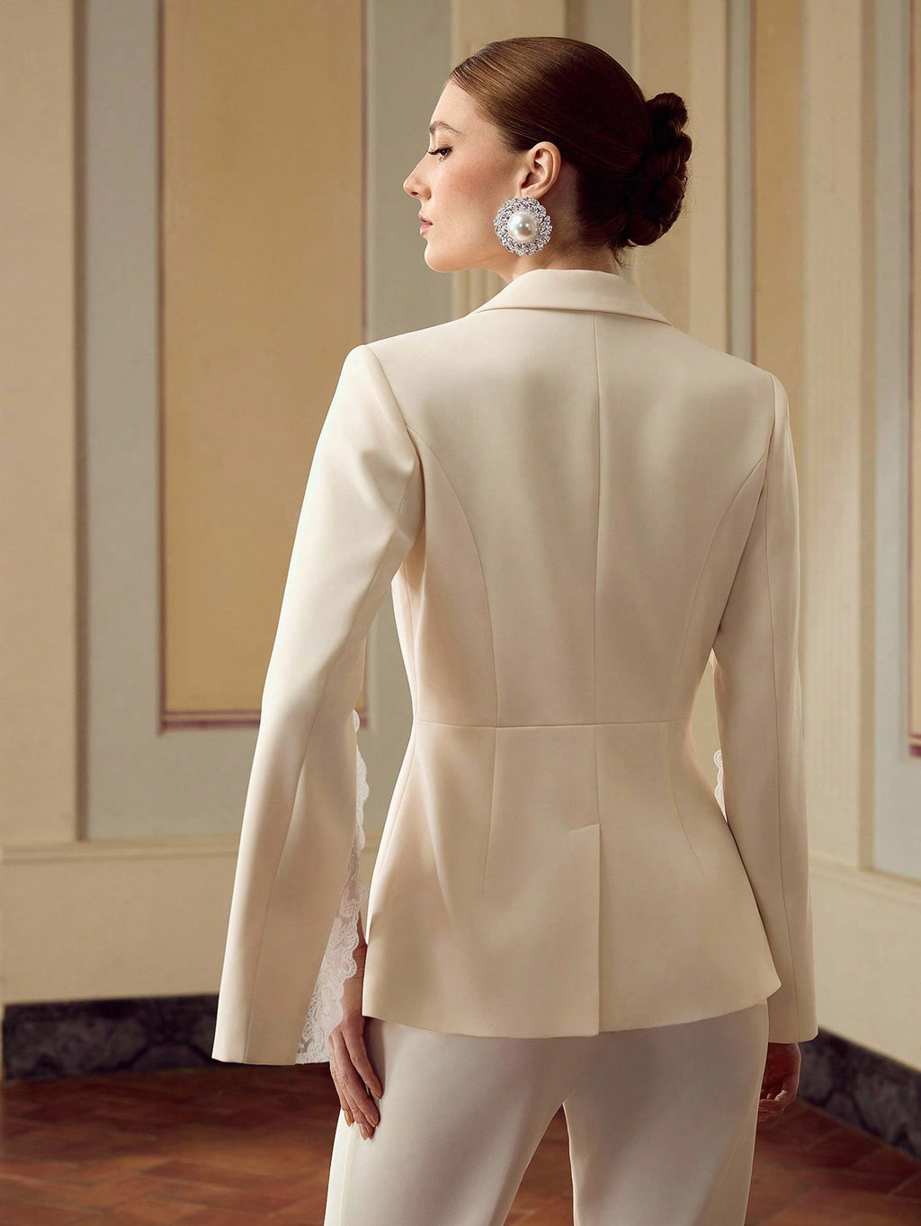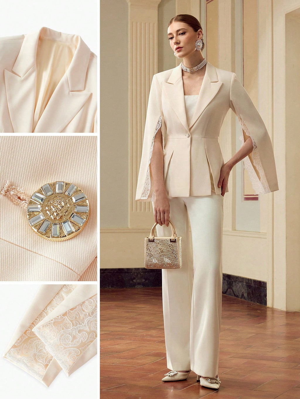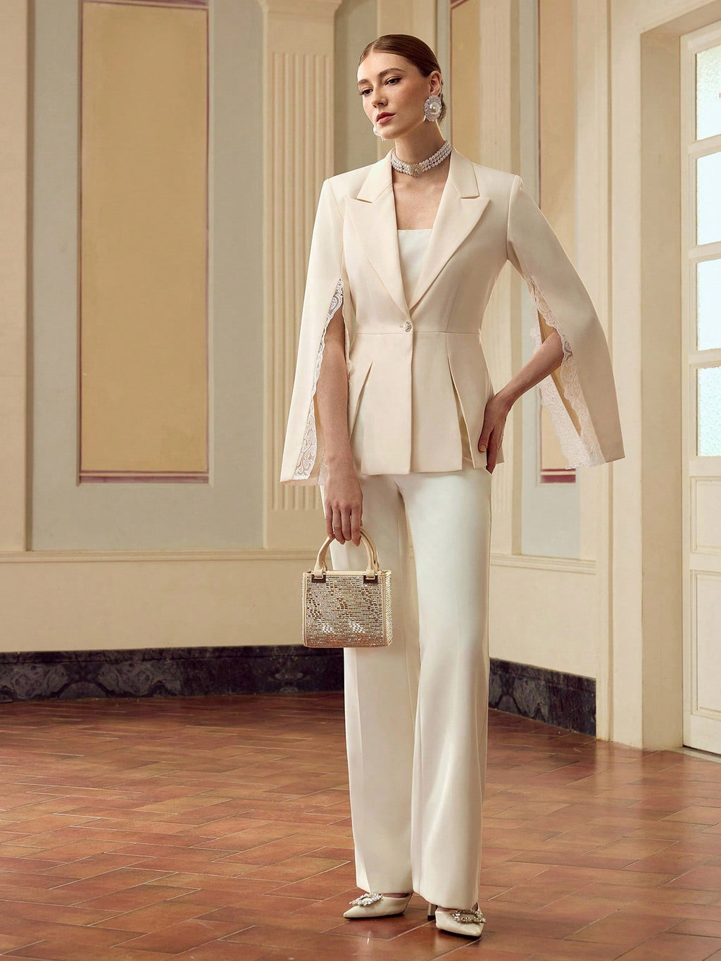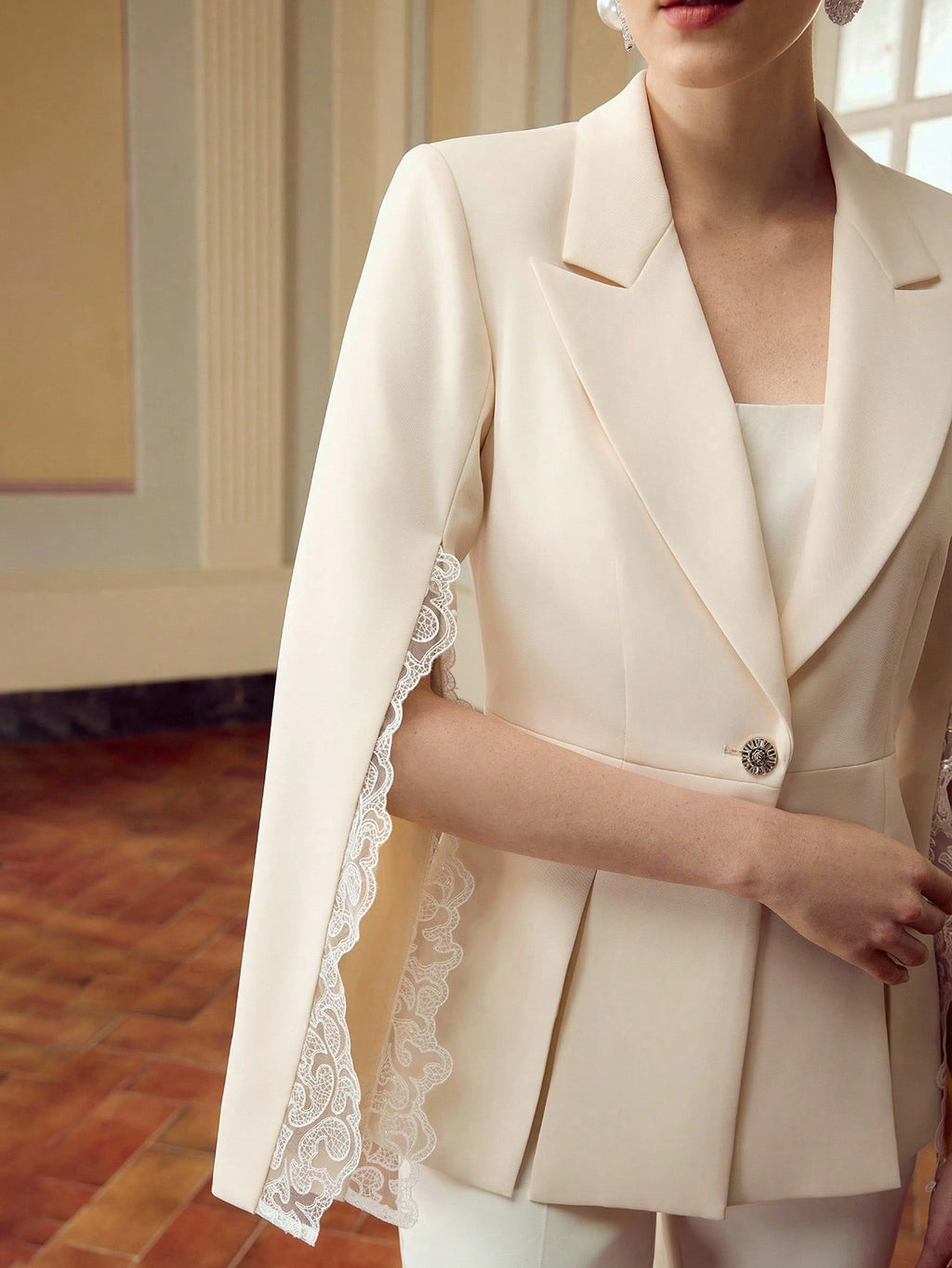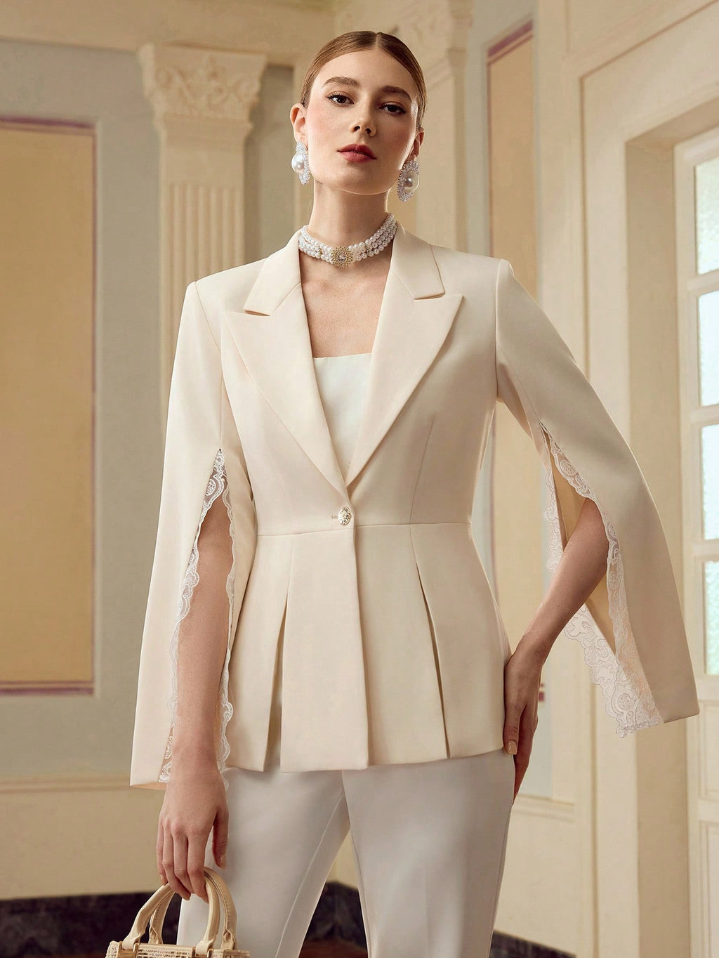 MIU Women's Simple Solid Color Waist Cinched Waist Open Slit Sleeve Office/Commute Blazer Jacket