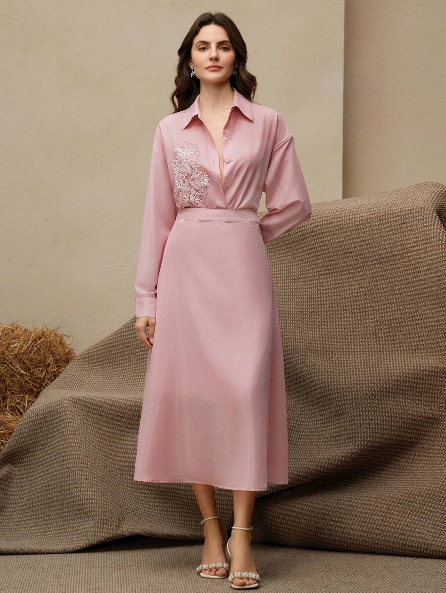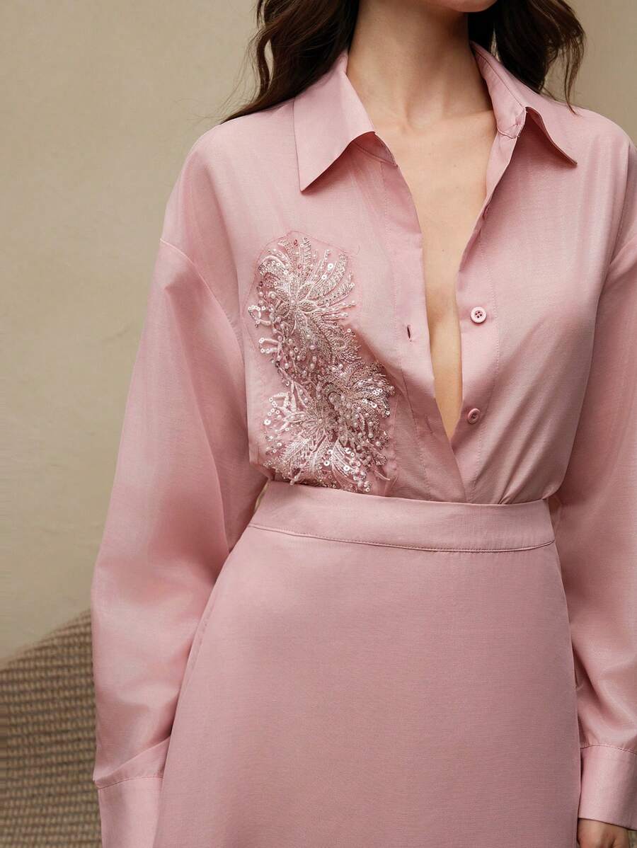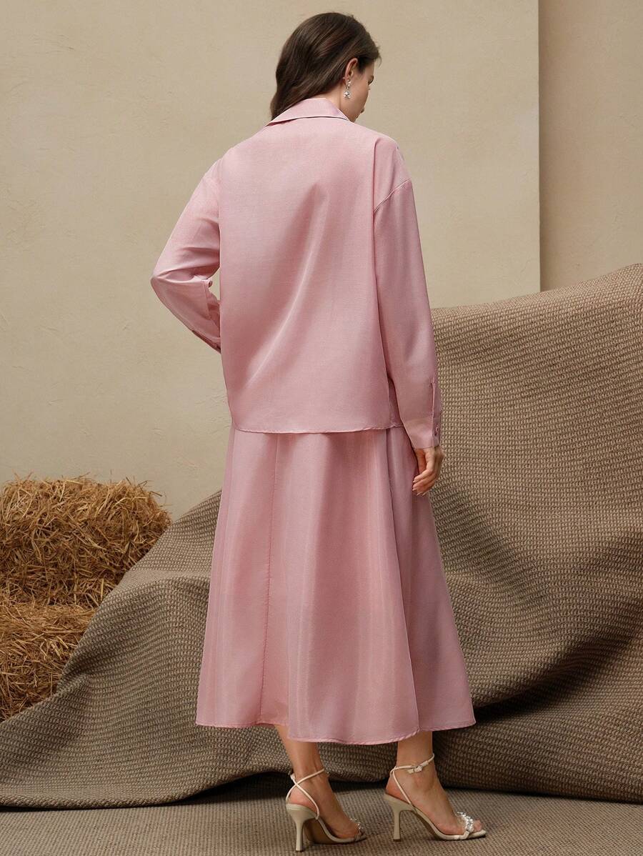 MIU Women's Skirt And Blouse Set, Mulberry Silk Rose Flower Jacquard Elegant Spring Outfits