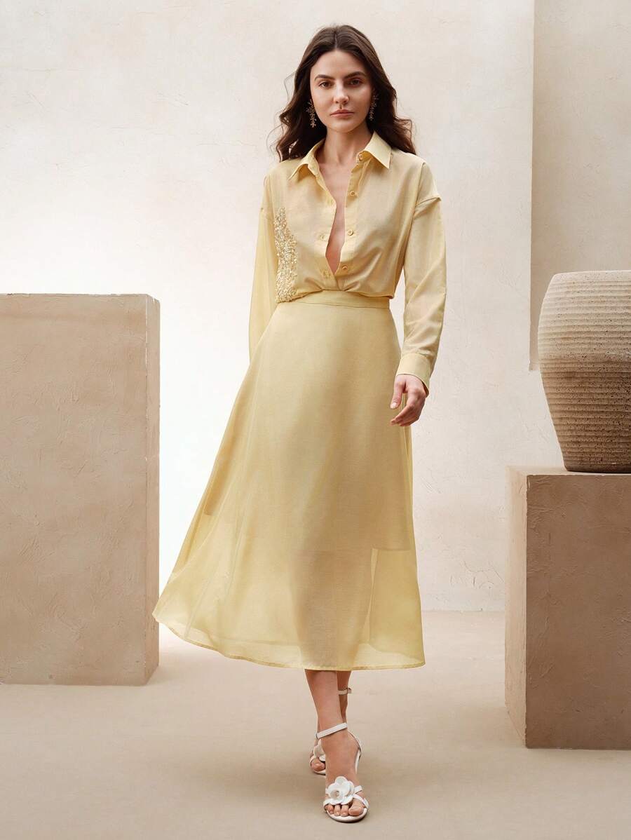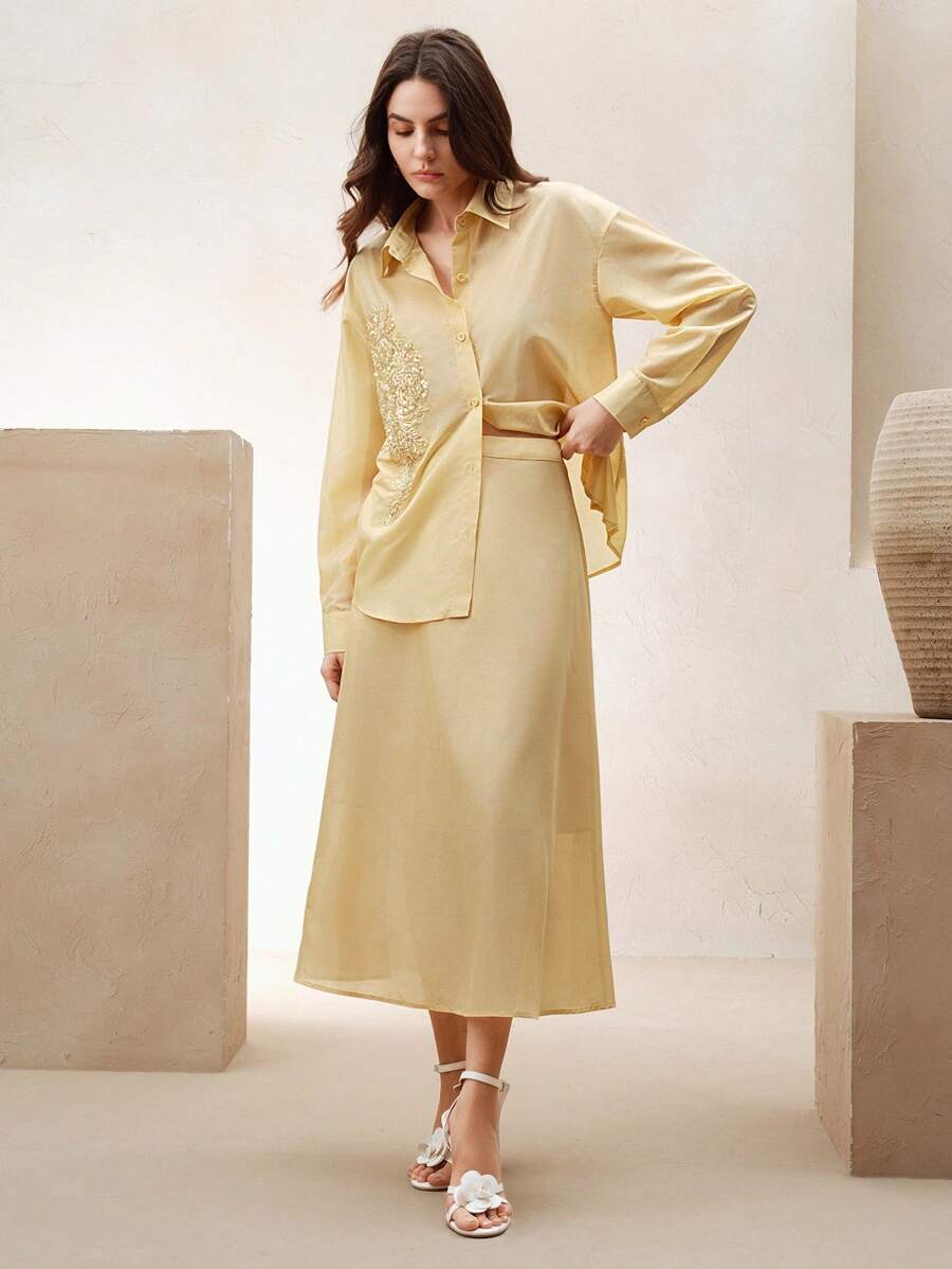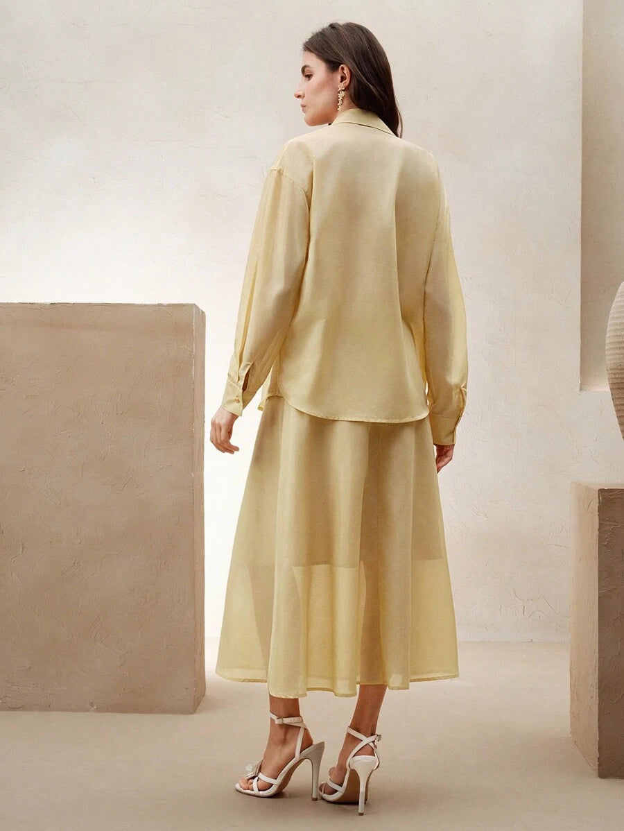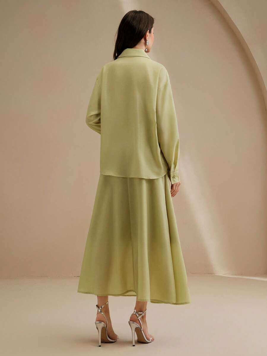 MIU Women's Skirt And Blouse Set, Mulberry Silk Rose Flower Jacquard Elegant Spring Outfits