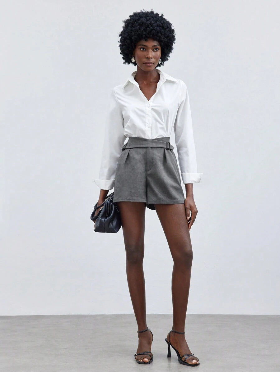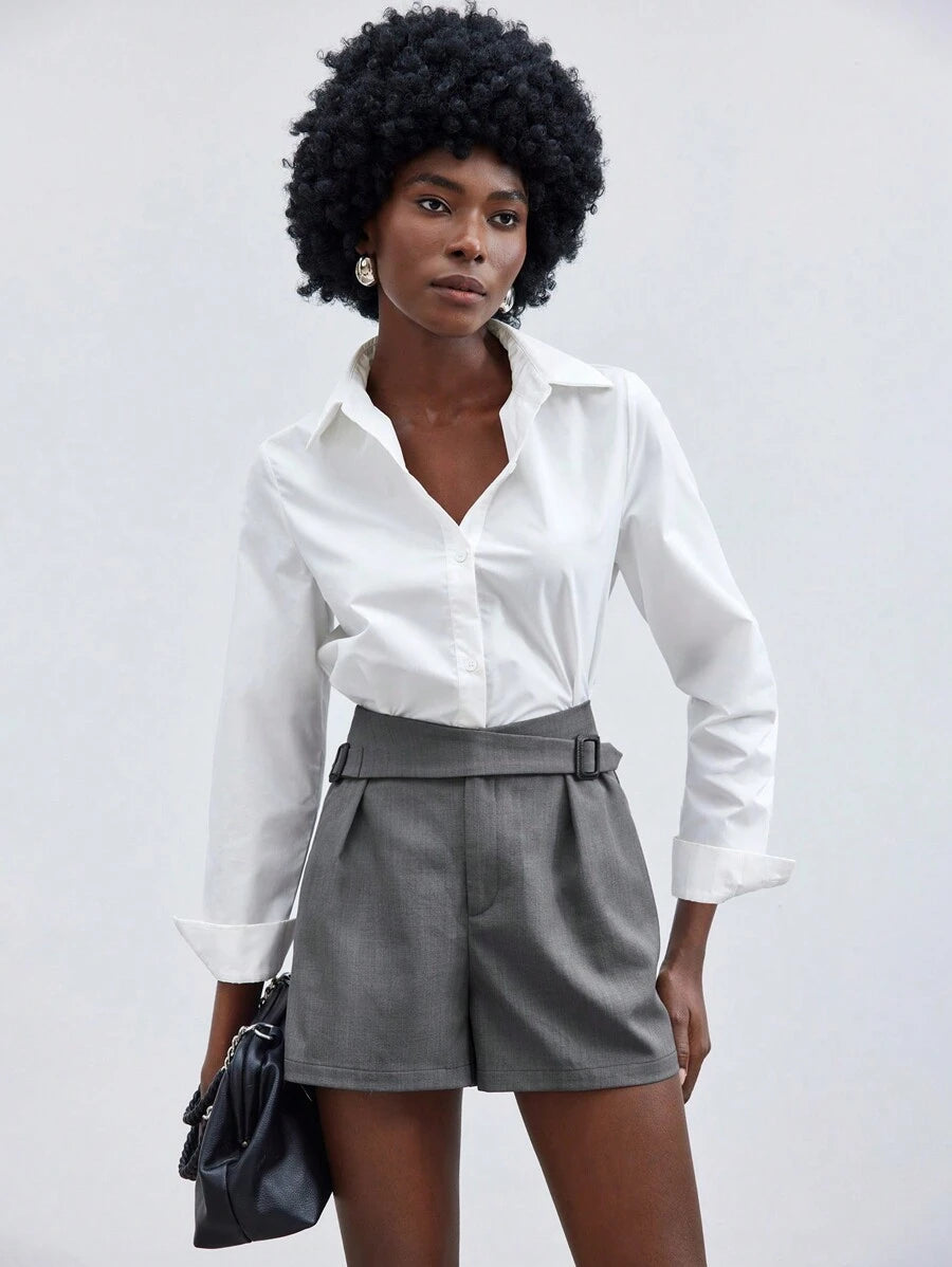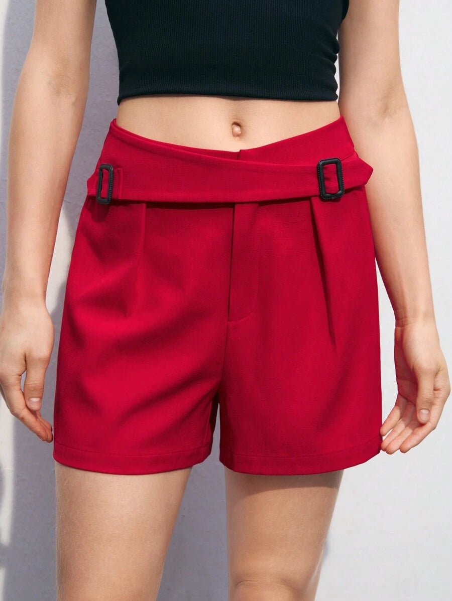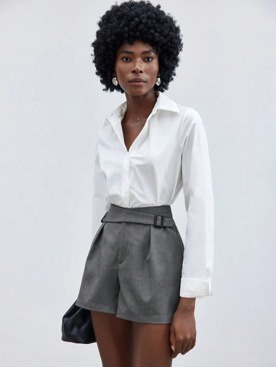 MIU Women's Solid Color D-Buckle Loose Casual Shorts