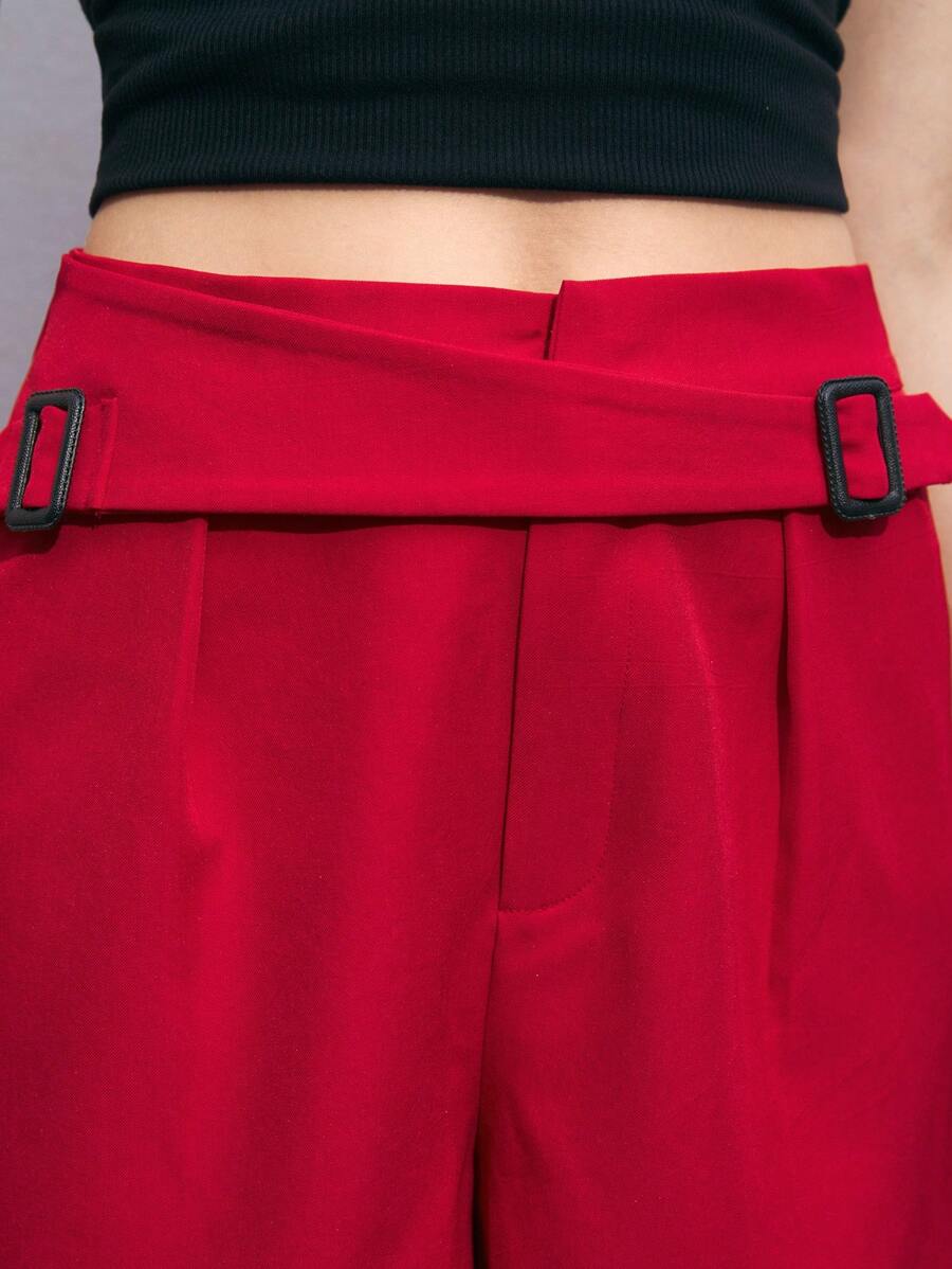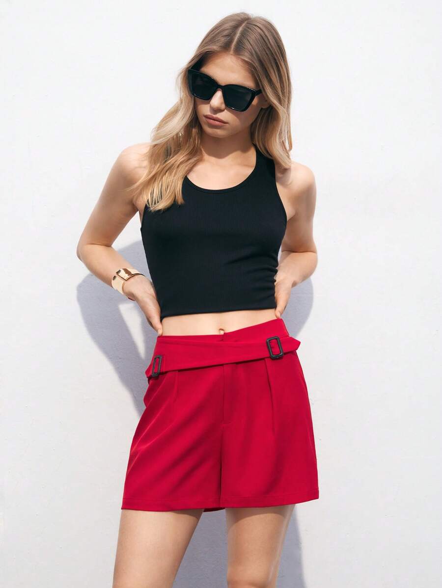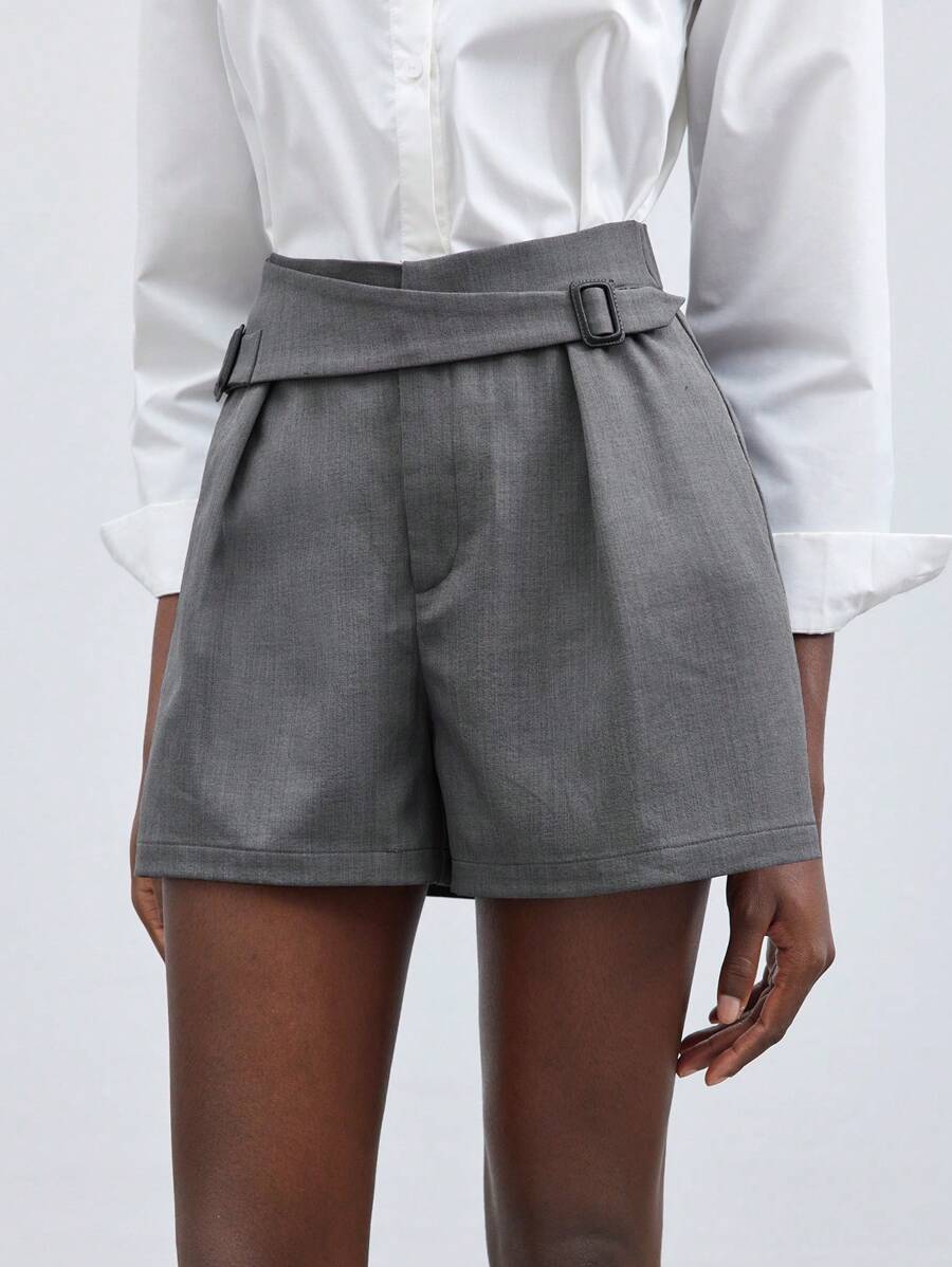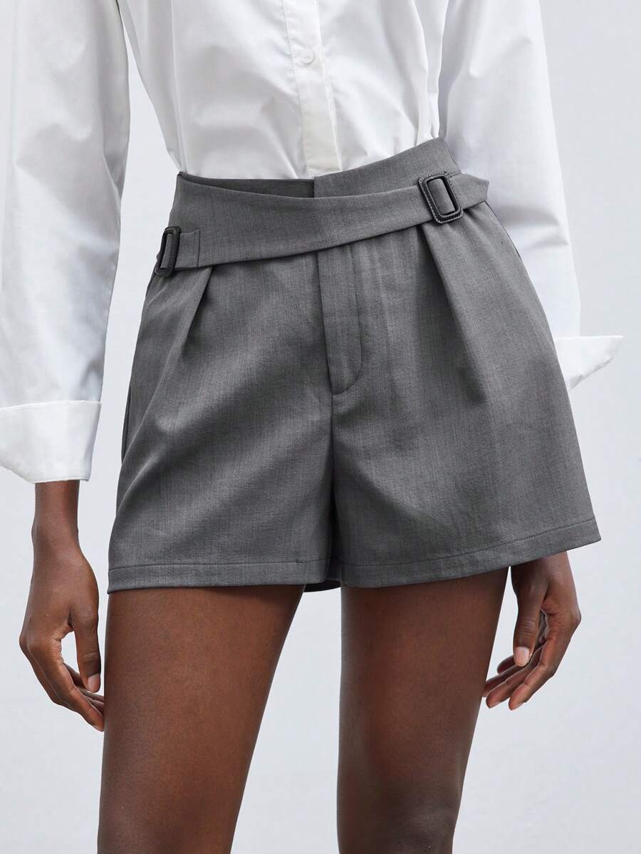 MIU Women's Solid Color D-Buckle Loose Casual Shorts