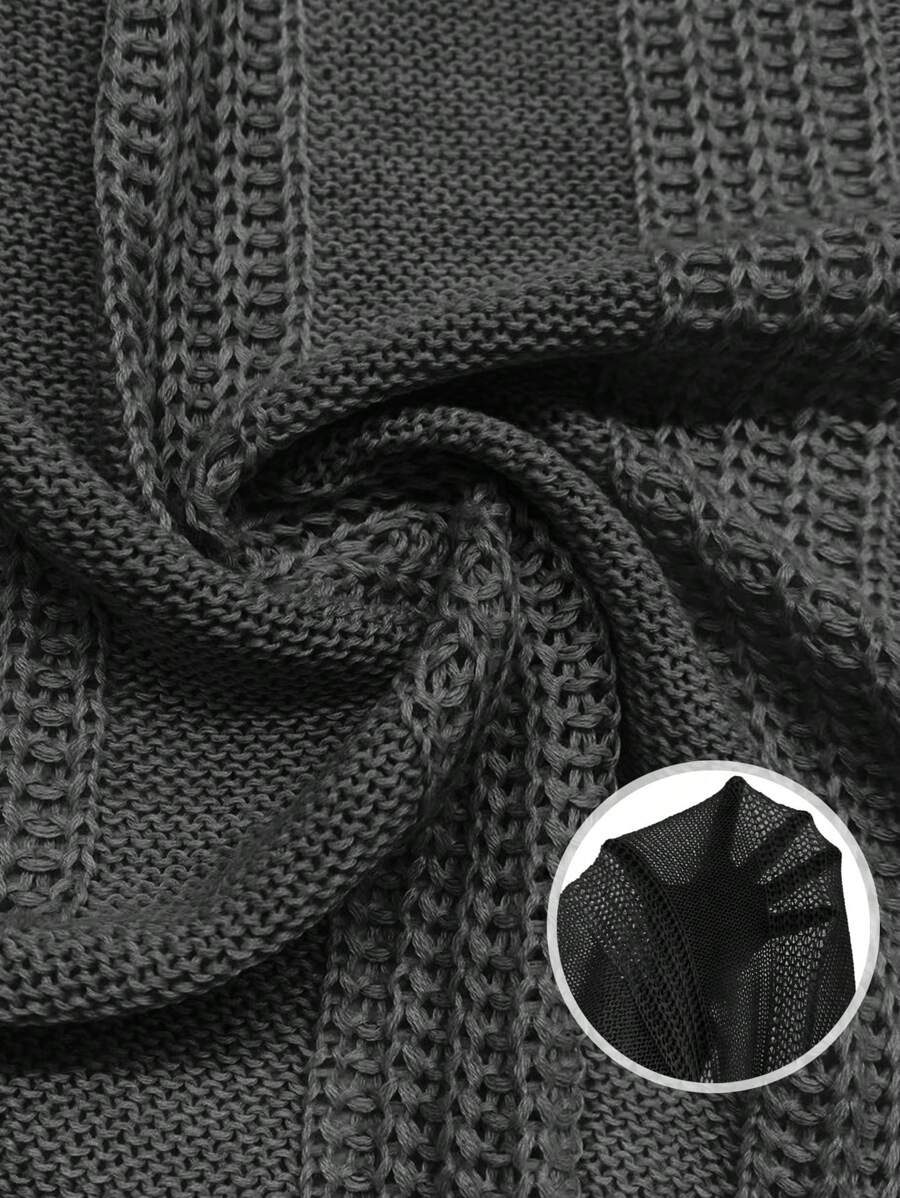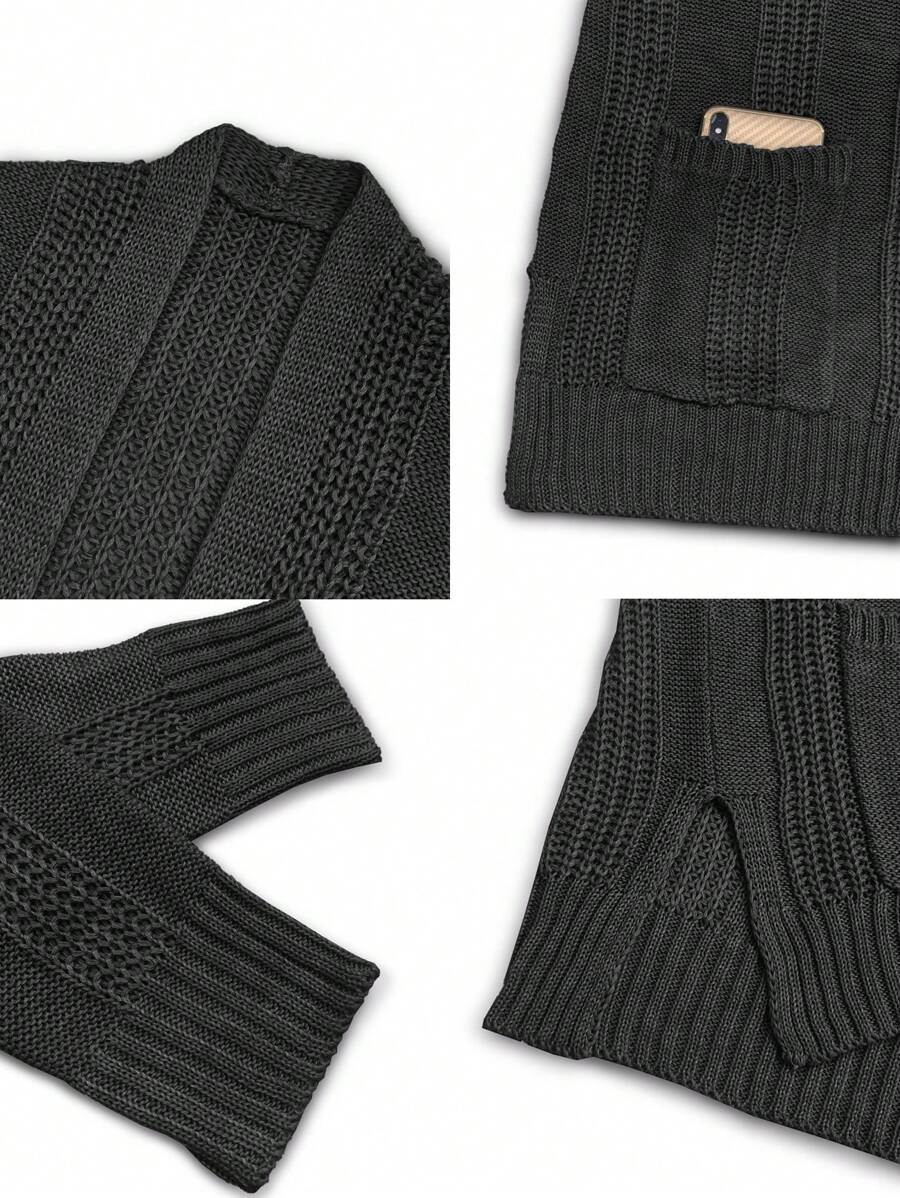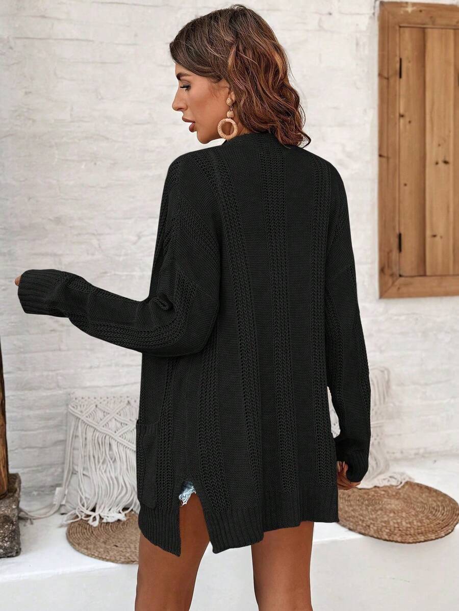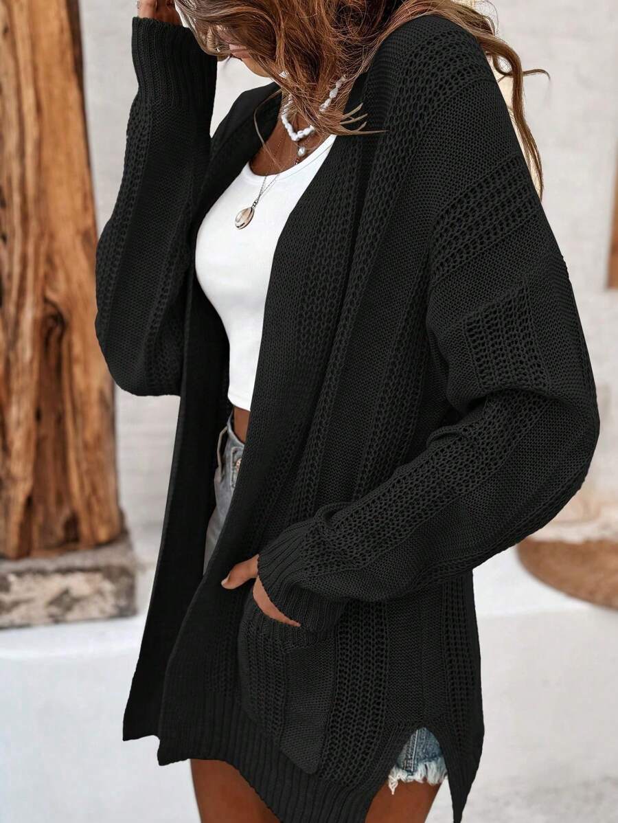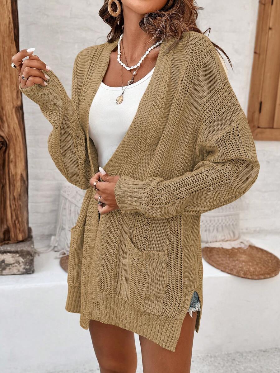 MIU Women's Solid Color Drop Shoulder Long Sleeve Cardigan With Double Pockets