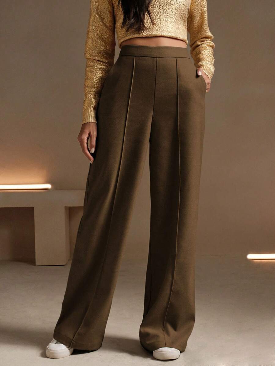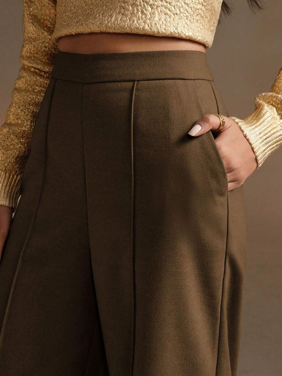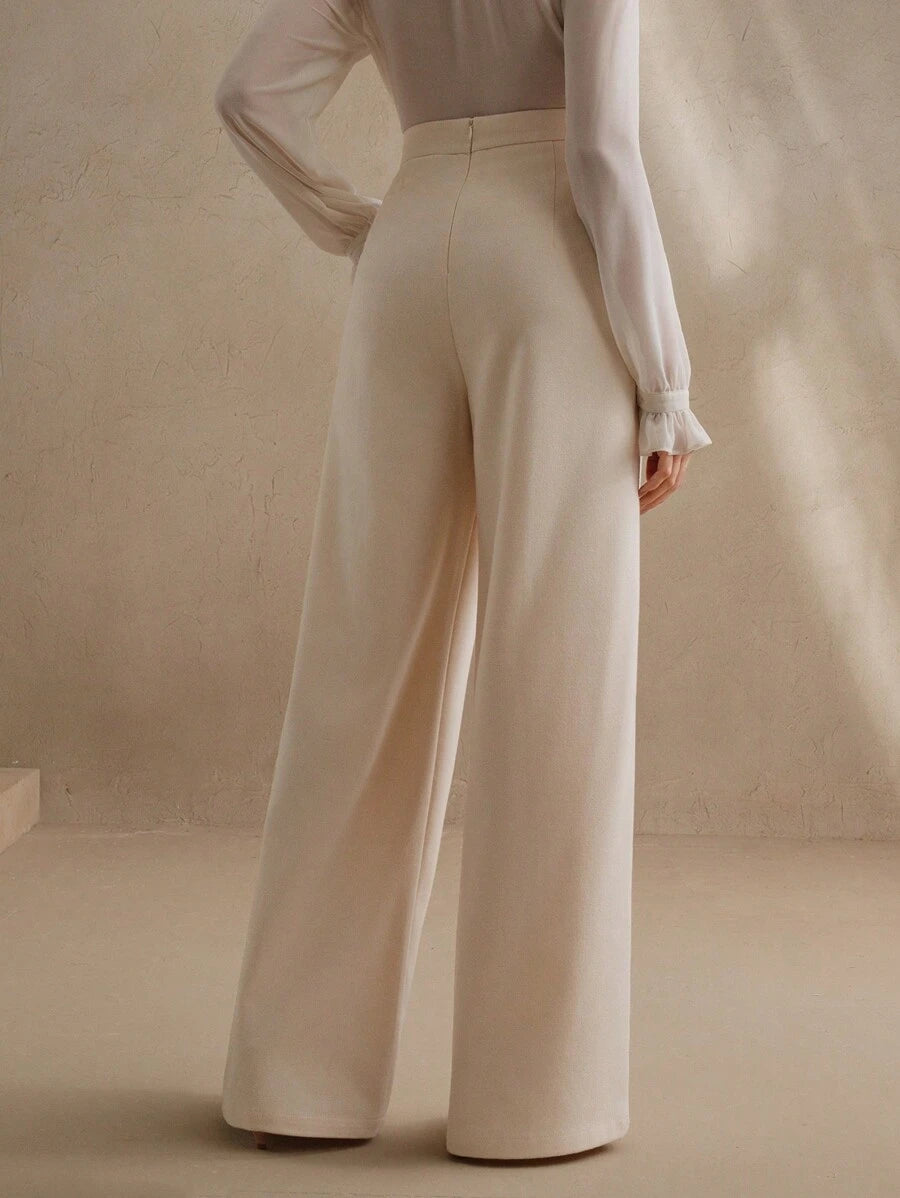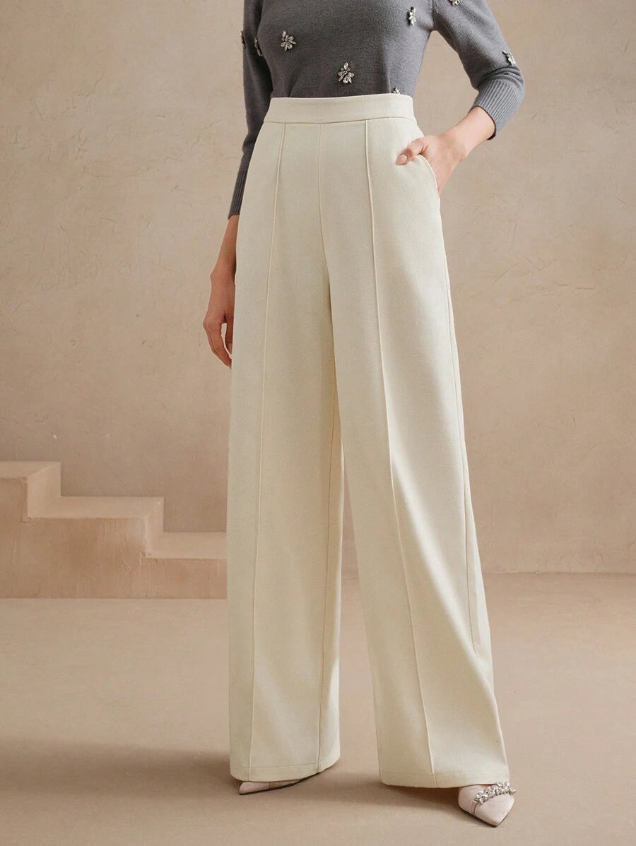 MIU Women's Solid Color Wool Blend Straight-Leg Relaxed Casual Pants