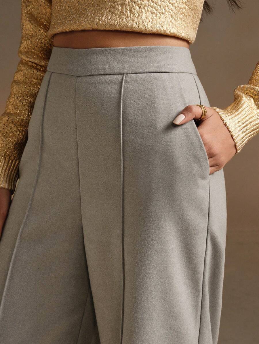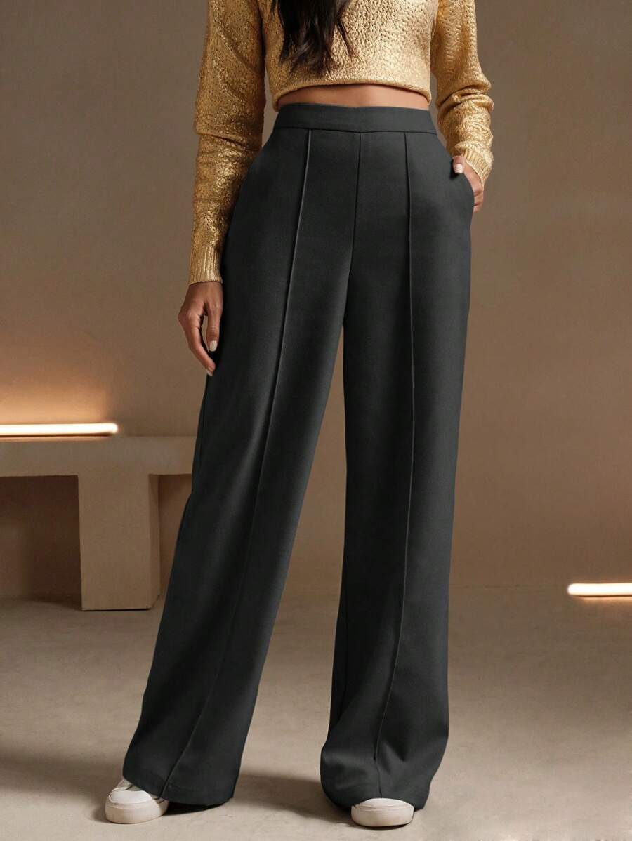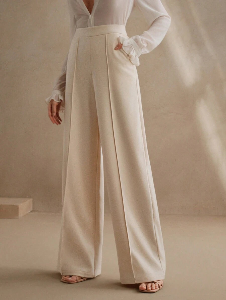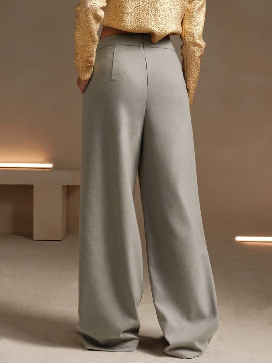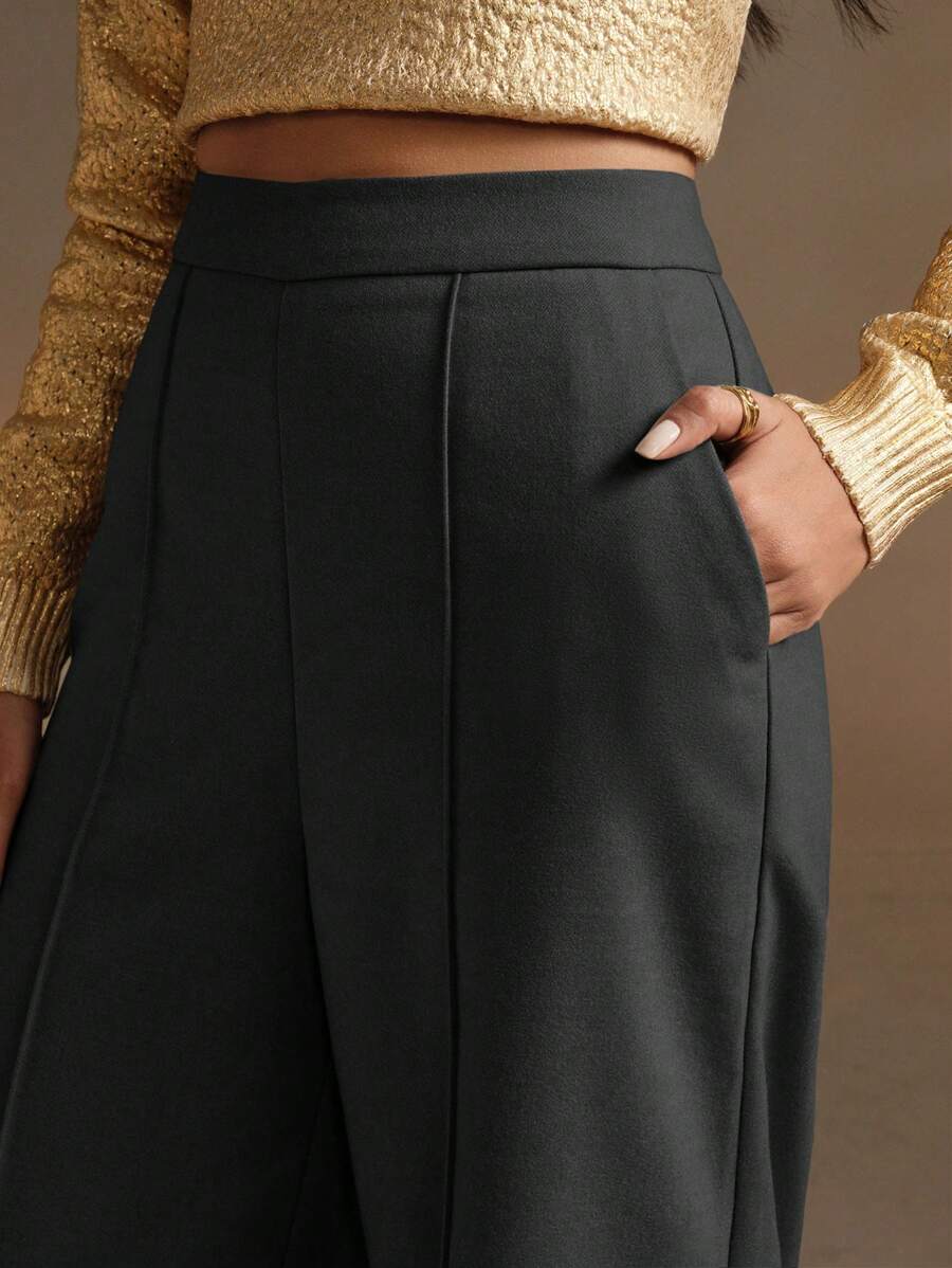 MIU Women's Solid Color Wool Blend Straight-Leg Relaxed Casual Pants