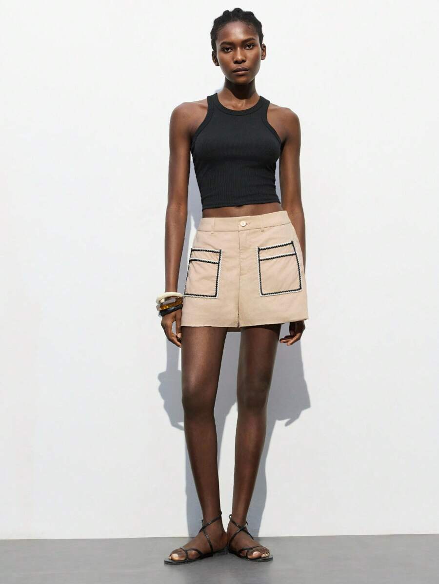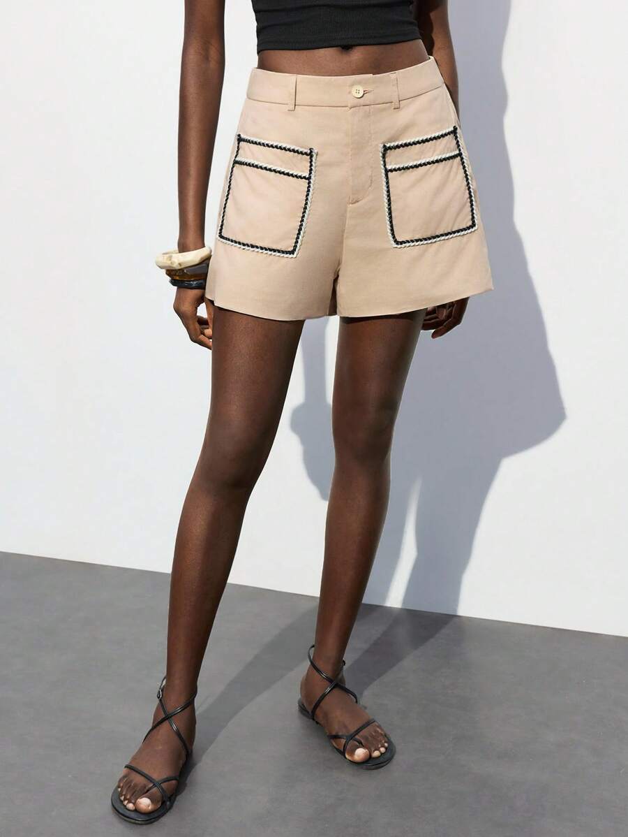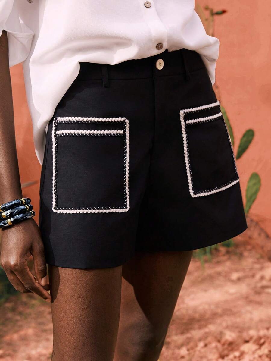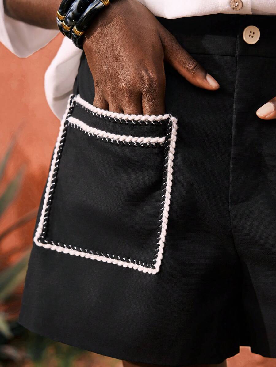MIU Women's Summer Casual Fashion Contrast Piping Patch Pocket Loose Shorts Tailored Shorts Elegant Shorts Womens Shorts High Waisted Shorts