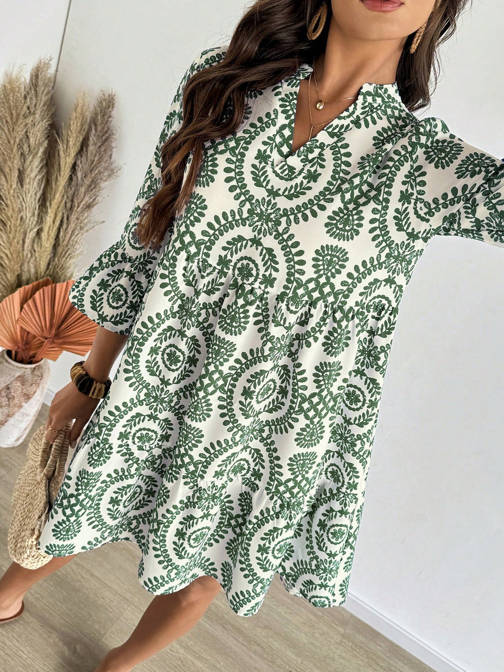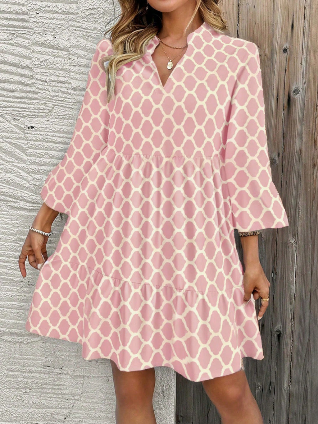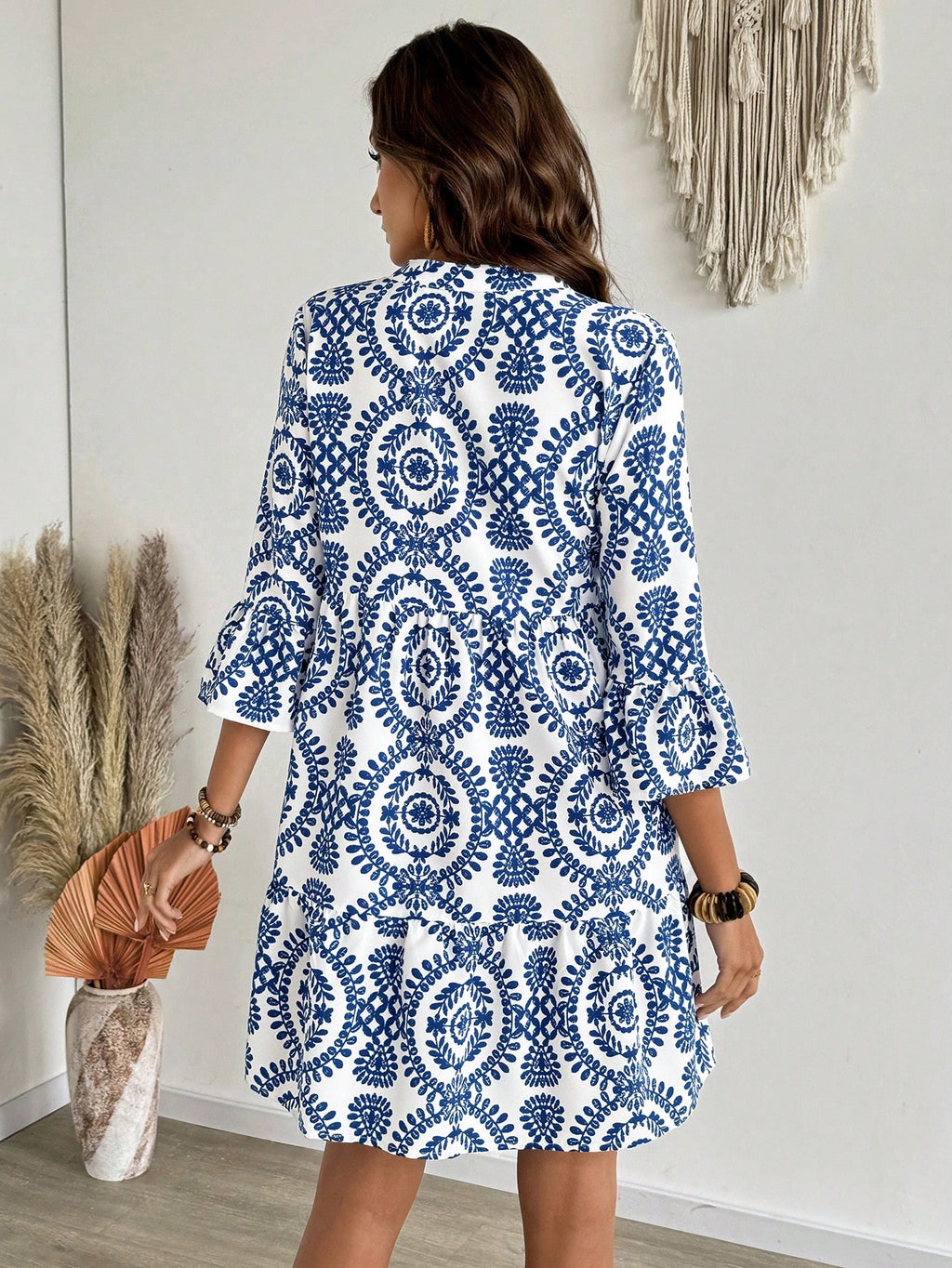MIU AZRA Ženska Crna Crep Haljina sa Nabranom Ovratnikom i Rukavima u Zvonu