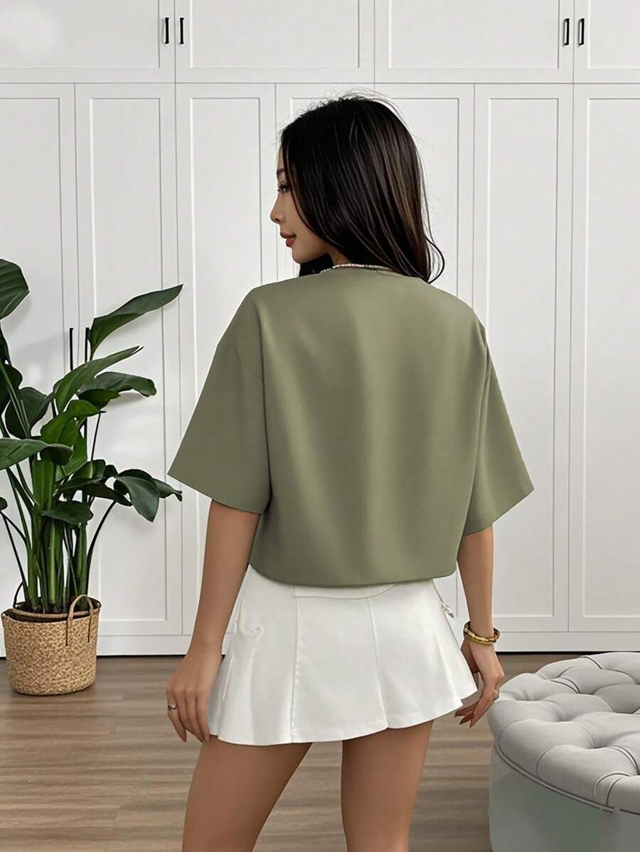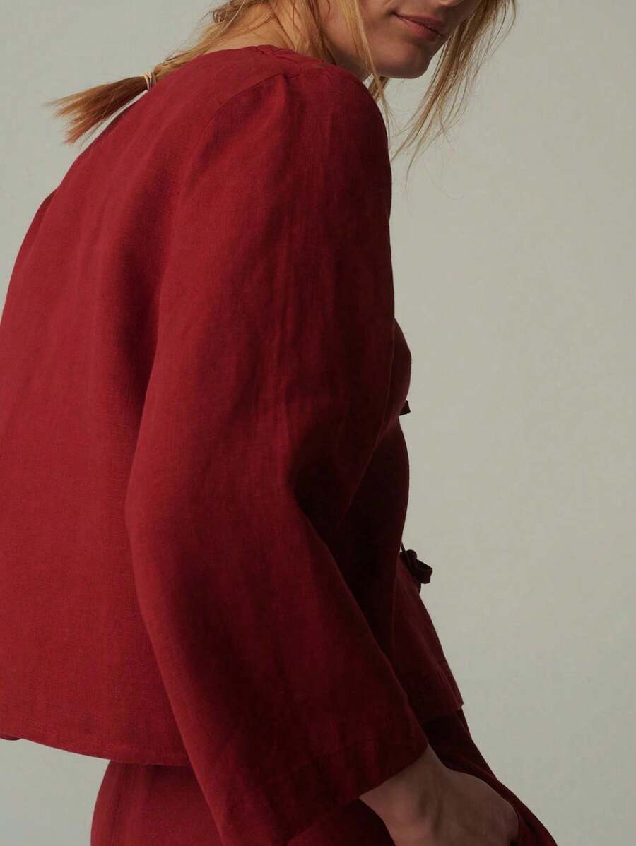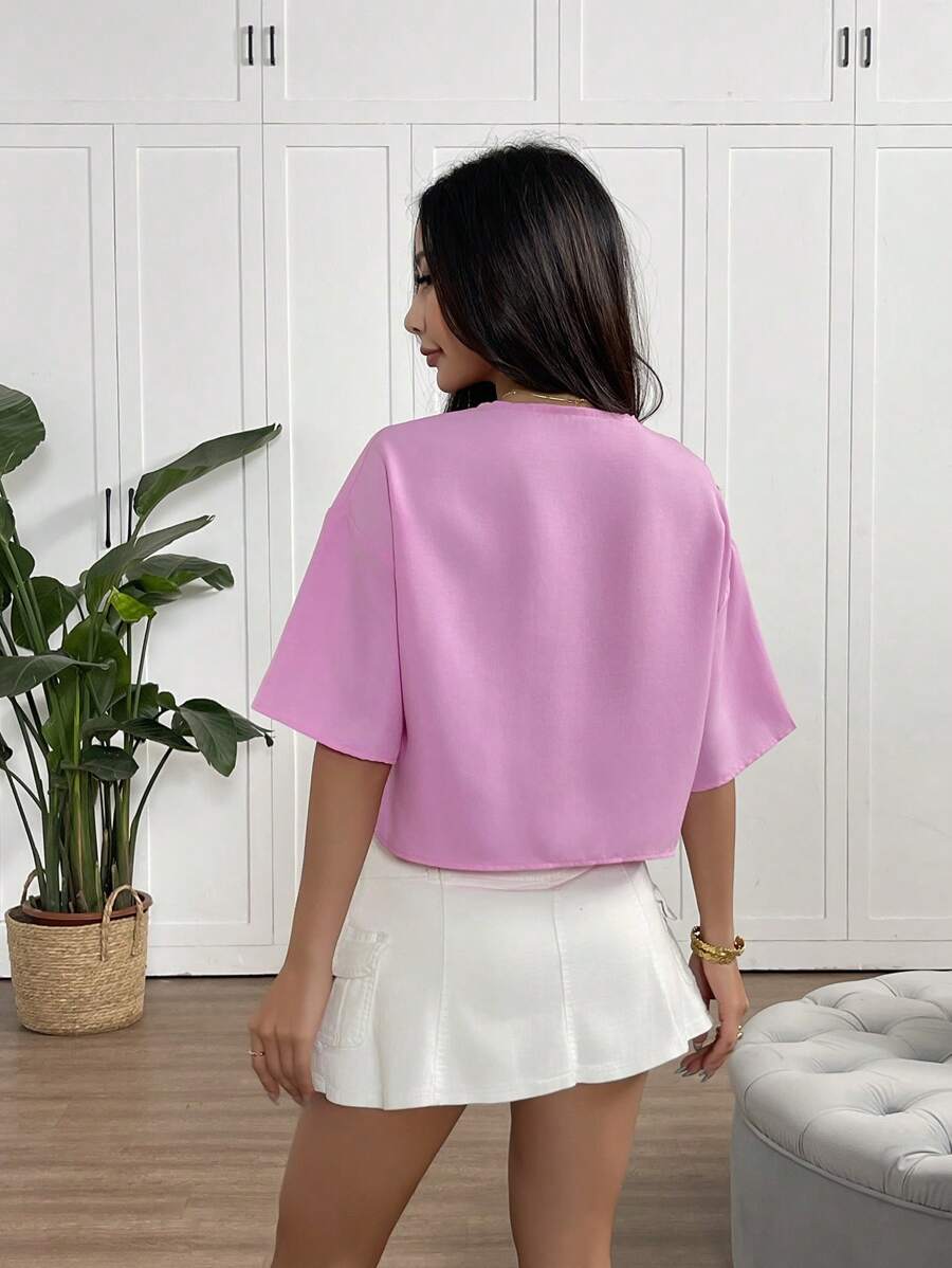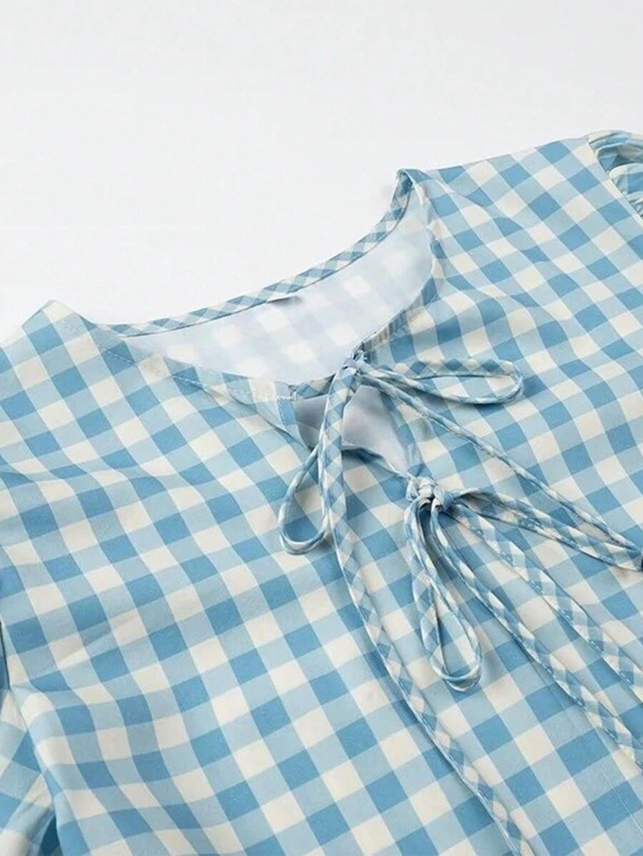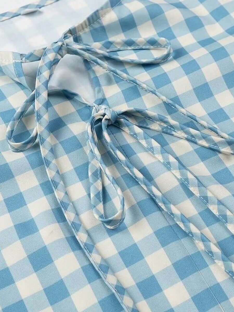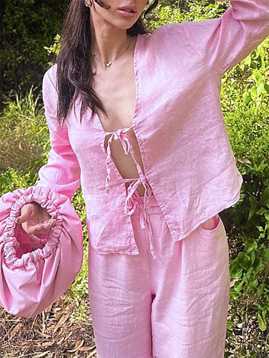 MIU Women's Vacation Casual Solid Color Tie Front Flare Sleeve Blouse Women Shirt