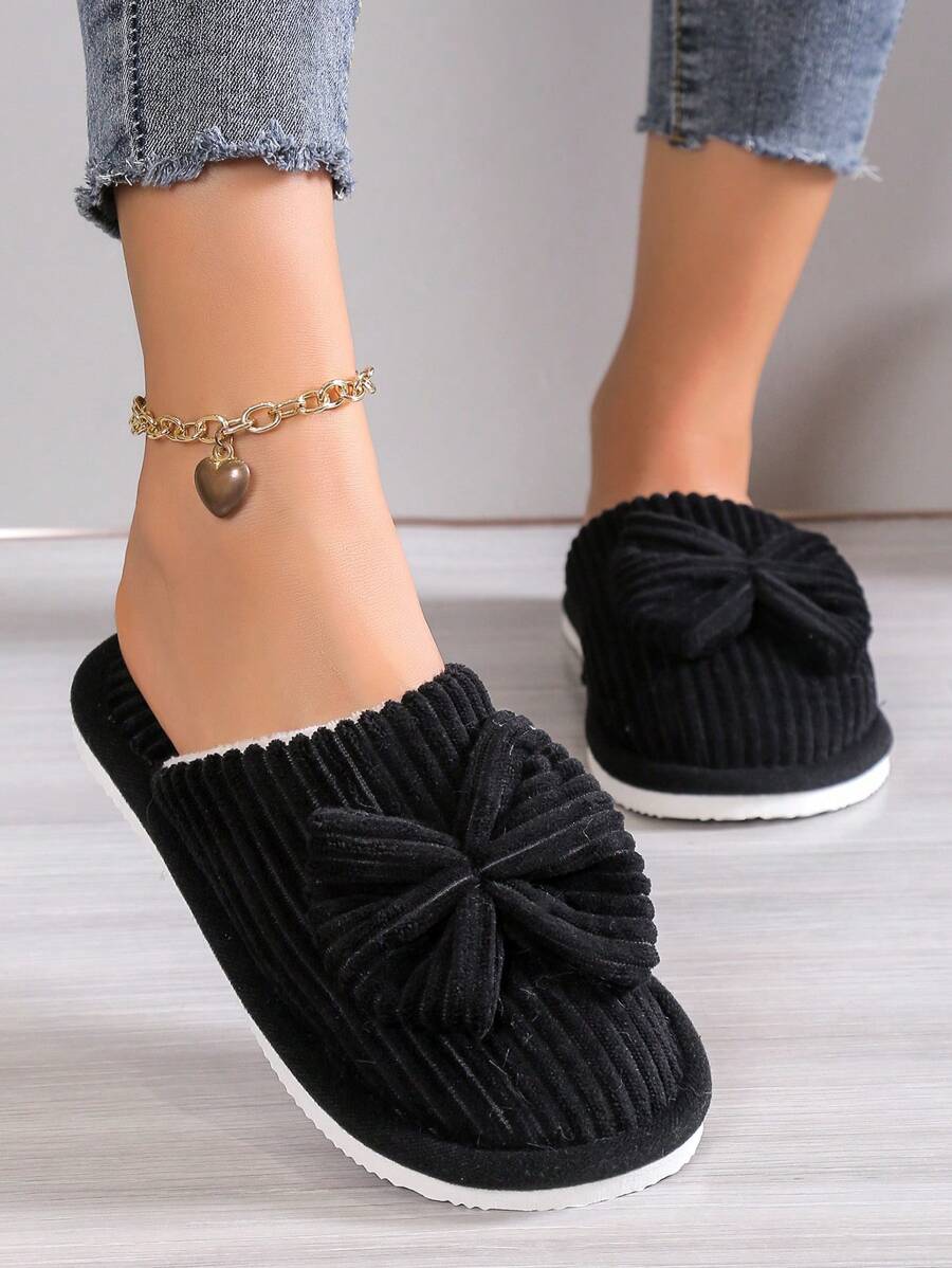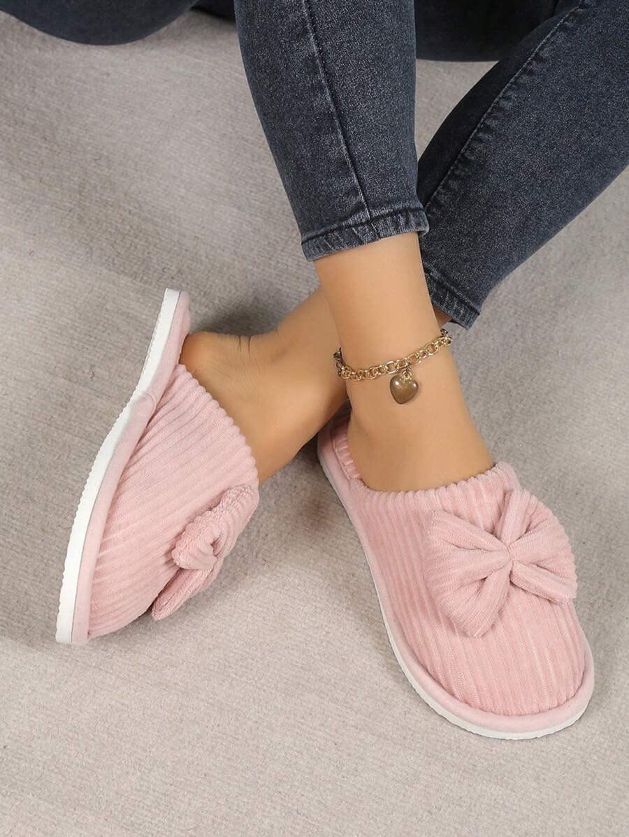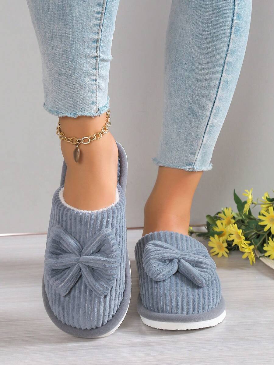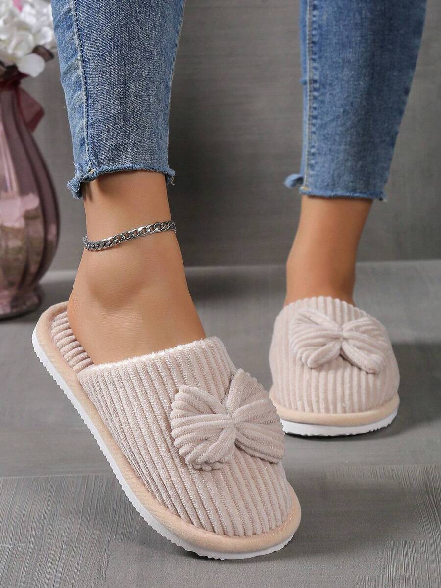 MIU Women's Velvet Bedroom Slippers With Bowknot Decoration, Home Indoor Shoes