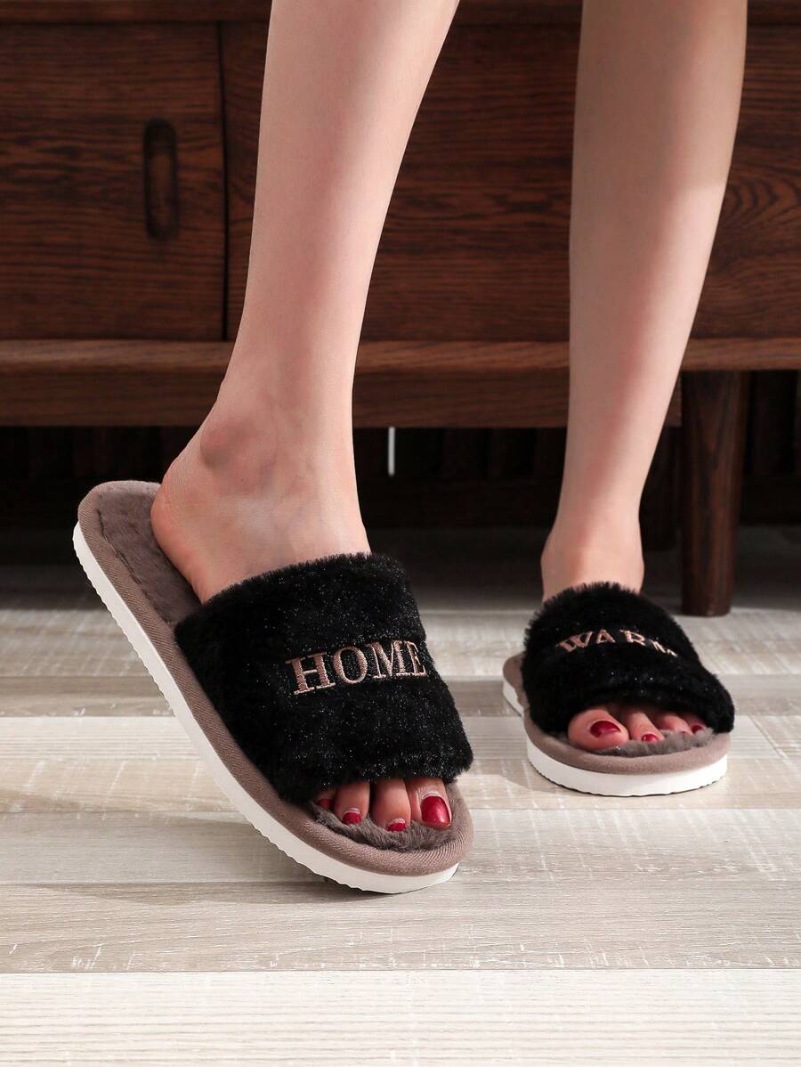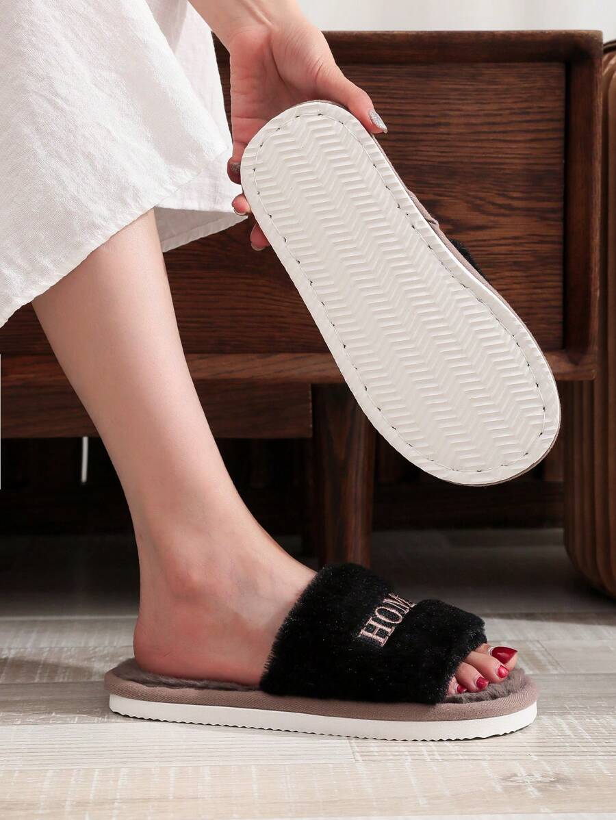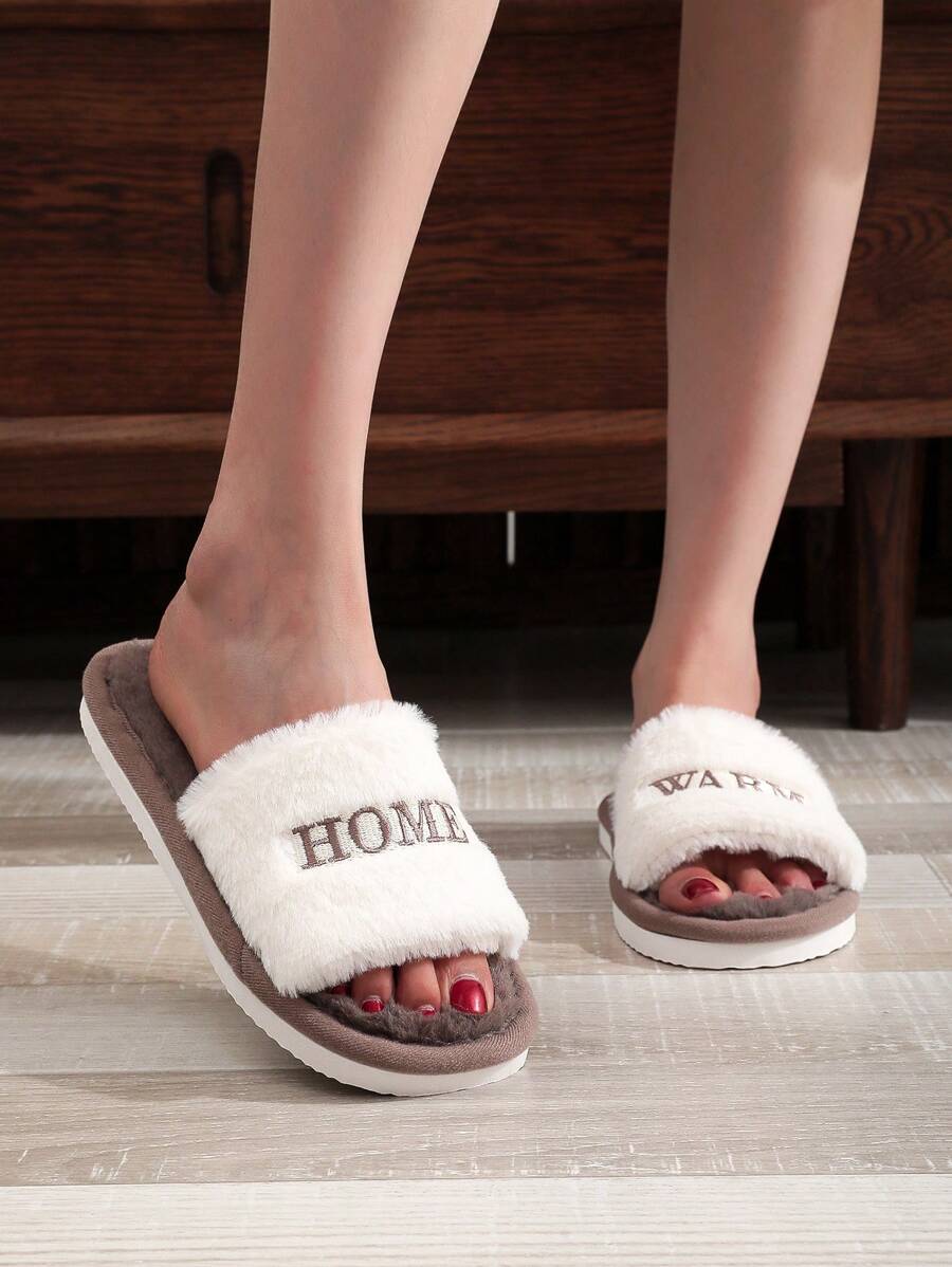 MIU Women's Warm Home Embroidered Letter H Fluffy Plush Slippers, Beige/Pink, Thin And Minimalist Design, Suitable For Spring, Summer, Autumn And Winter