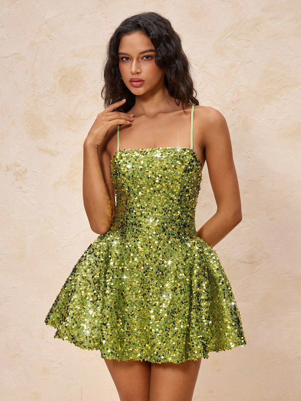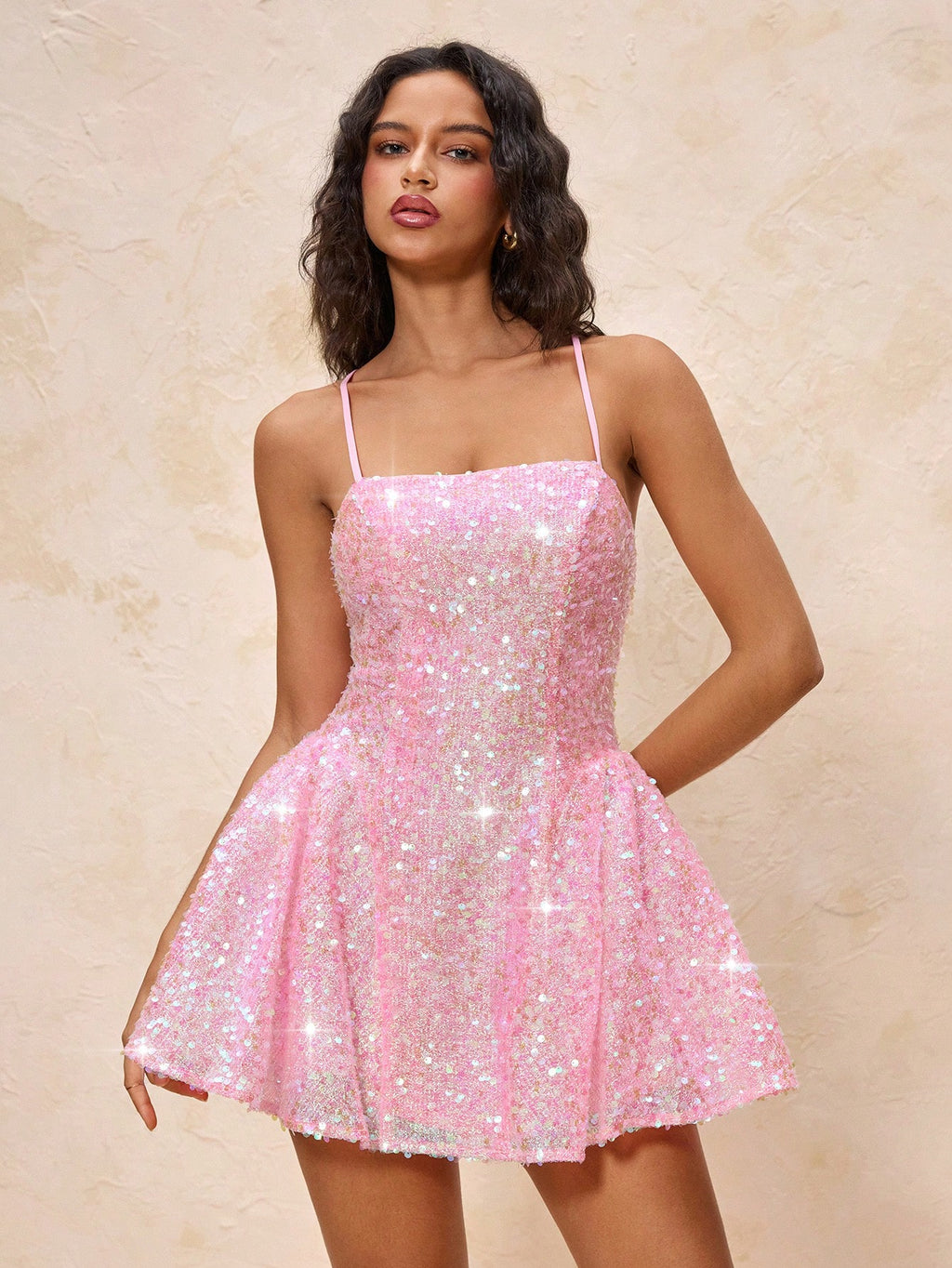 MIU ženska sjajna mini haljina sa srebrnim šljokicama — seksi, bez leđa, savršena za zabave, formalne proslave, maturske večeri i ljetne izlaske. Elegantna i glamurozna haljina za posebne prilike.
