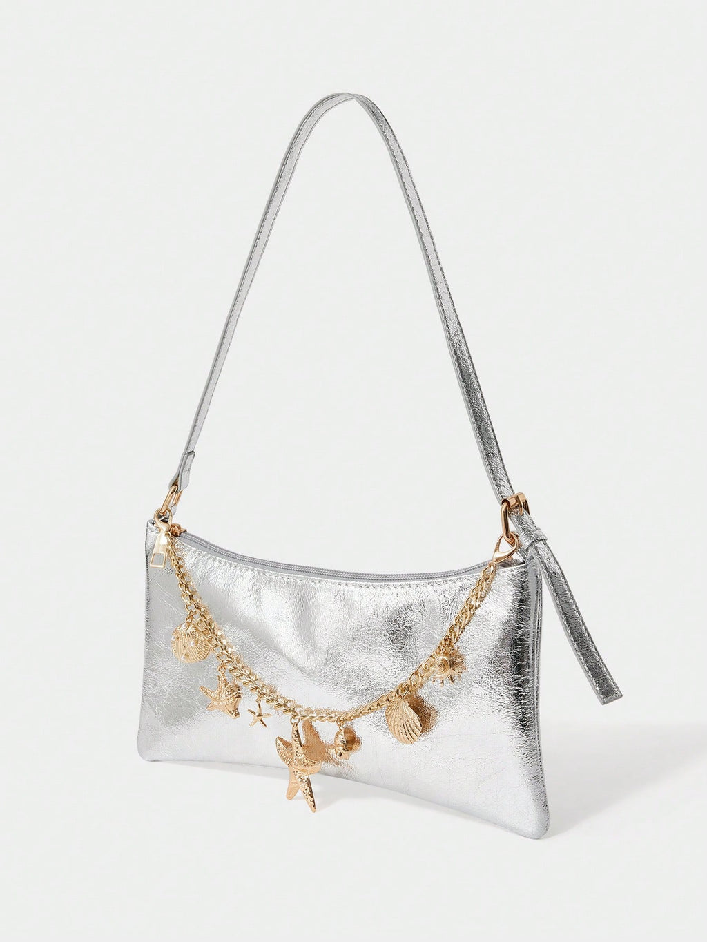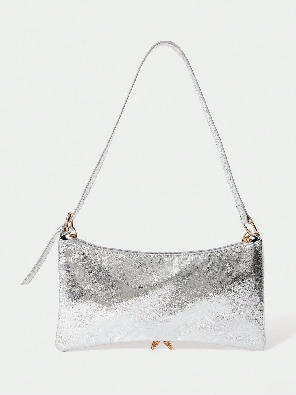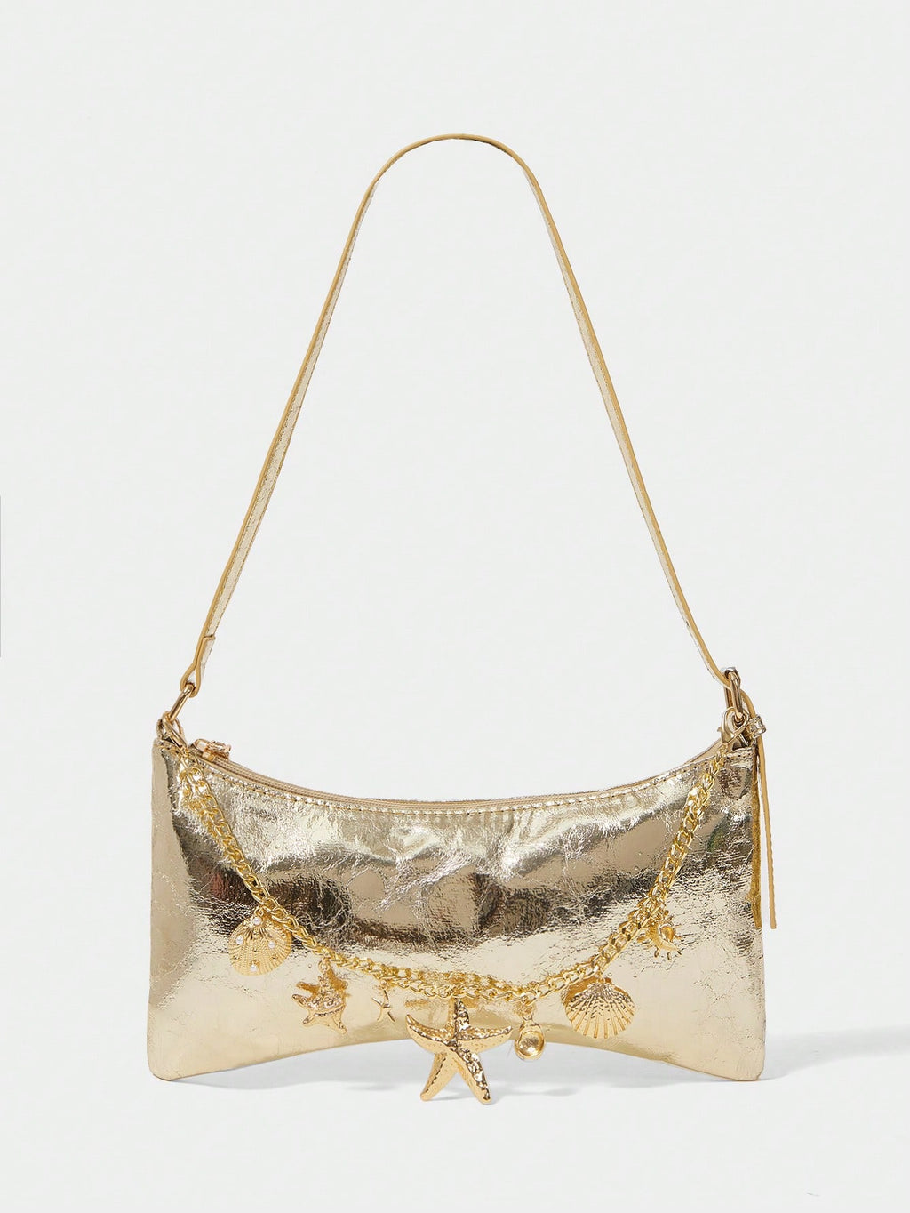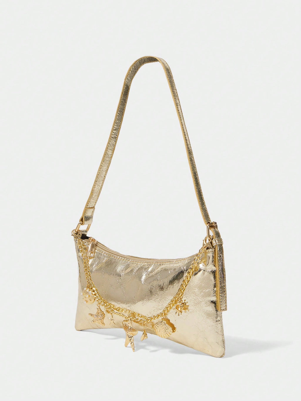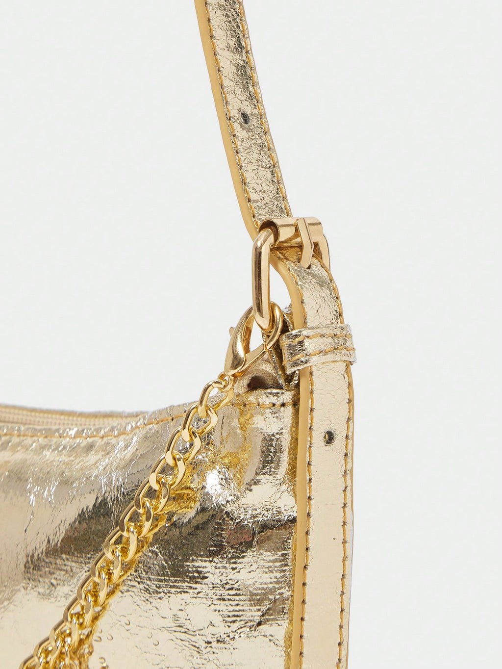 MiuVogue 1pc Metallic Cracked Texture Chain Decor Shoulder Bag