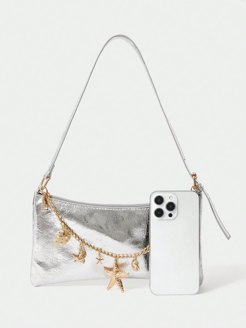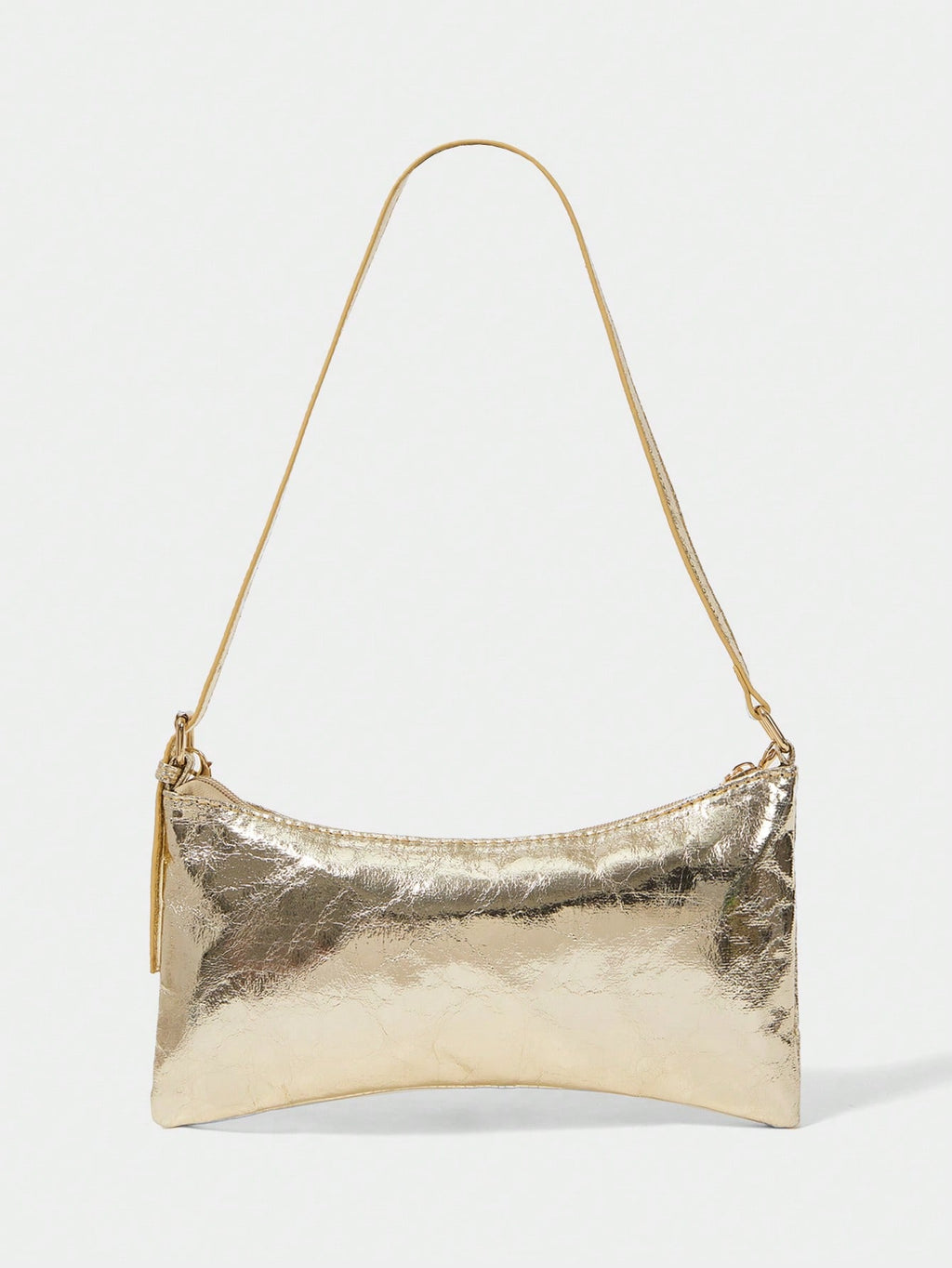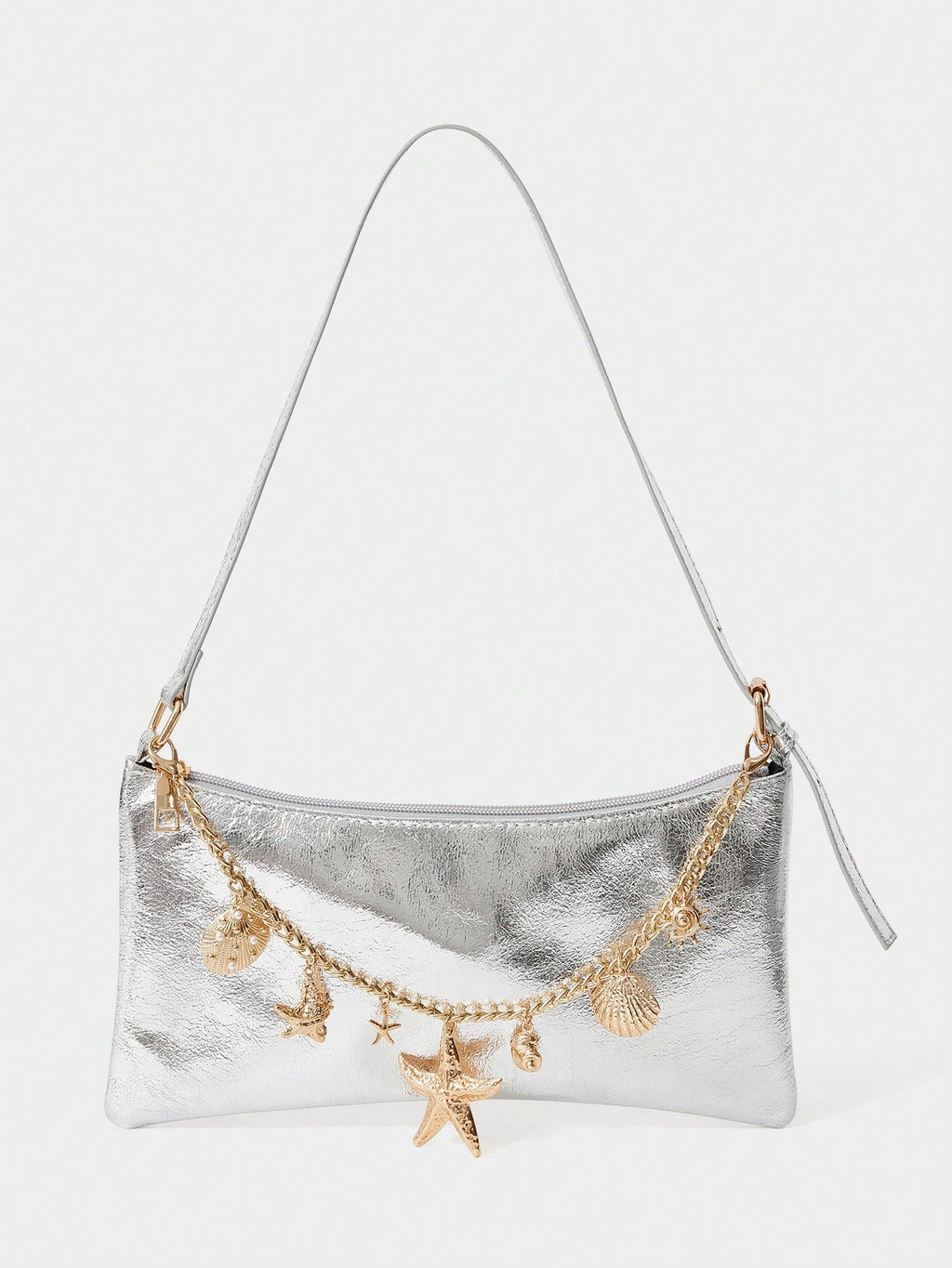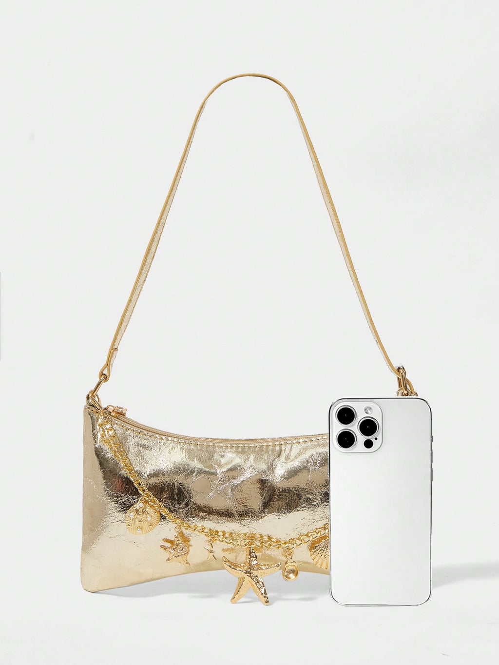 MiuVogue 1pc Metallic Cracked Texture Chain Decor Shoulder Bag
