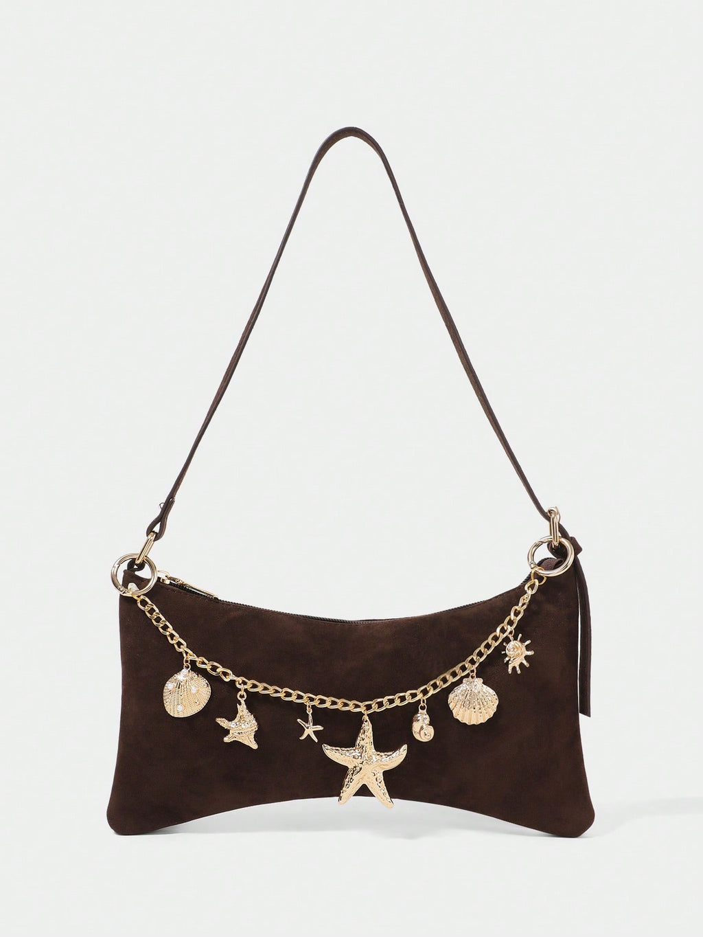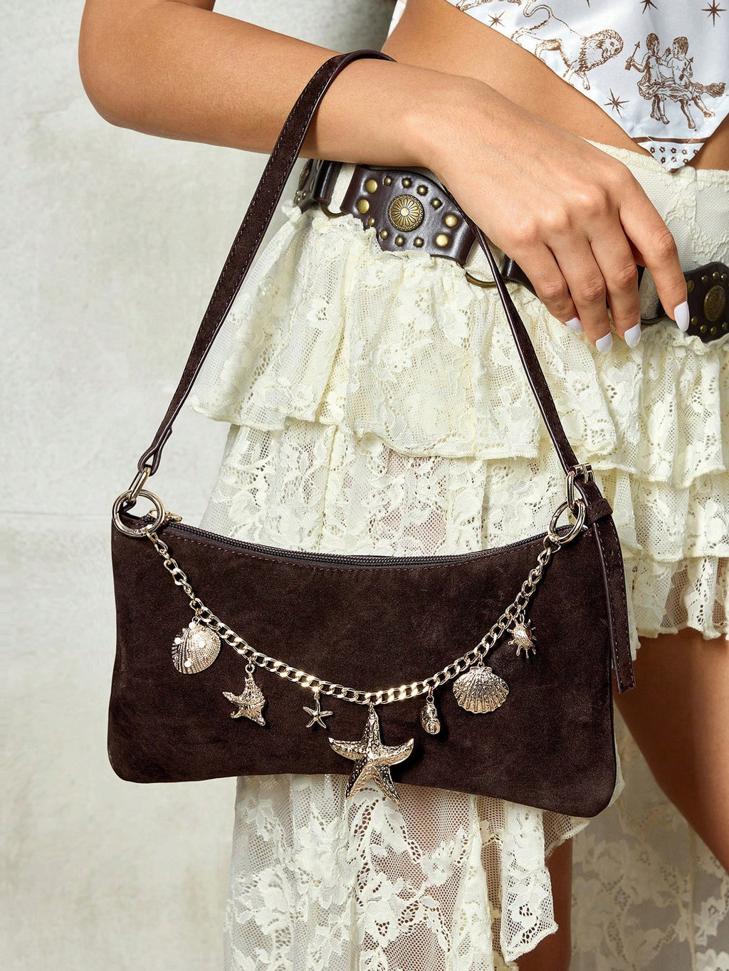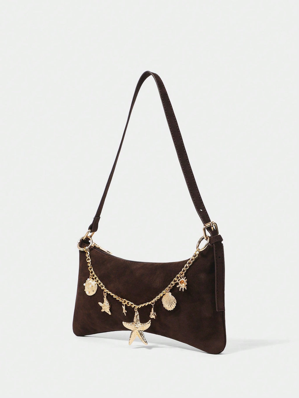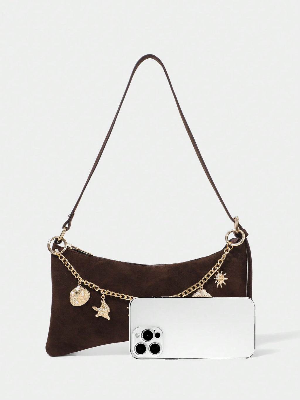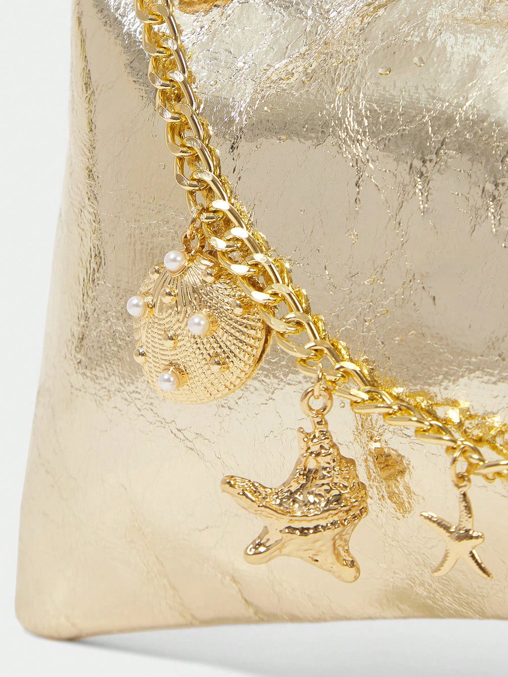 MiuVogue 1pc Metallic Cracked Texture Chain Decor Shoulder Bag