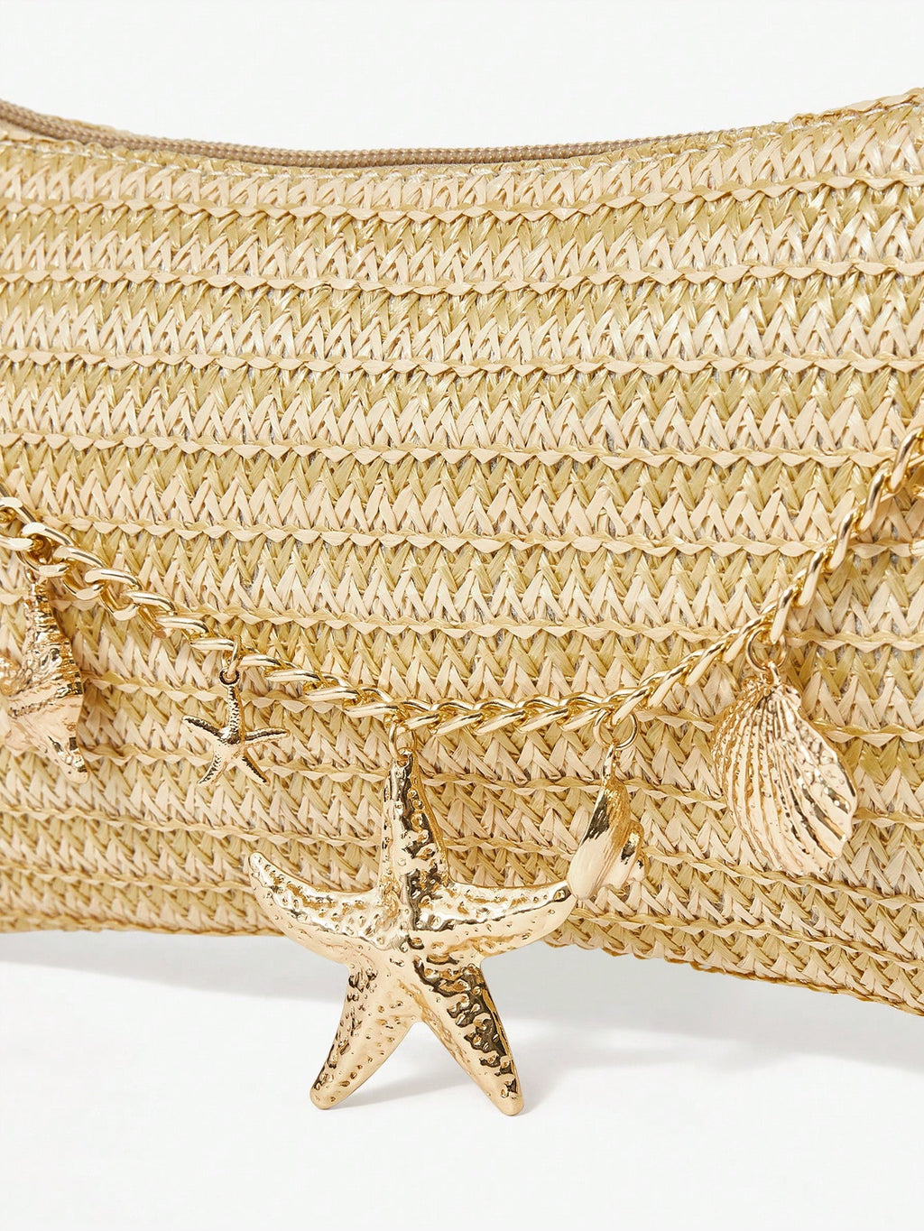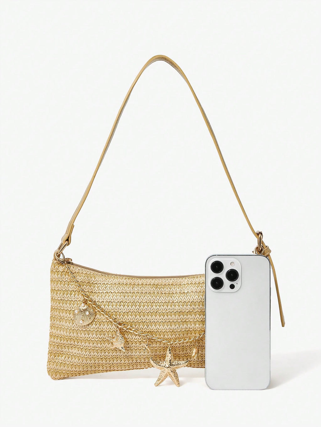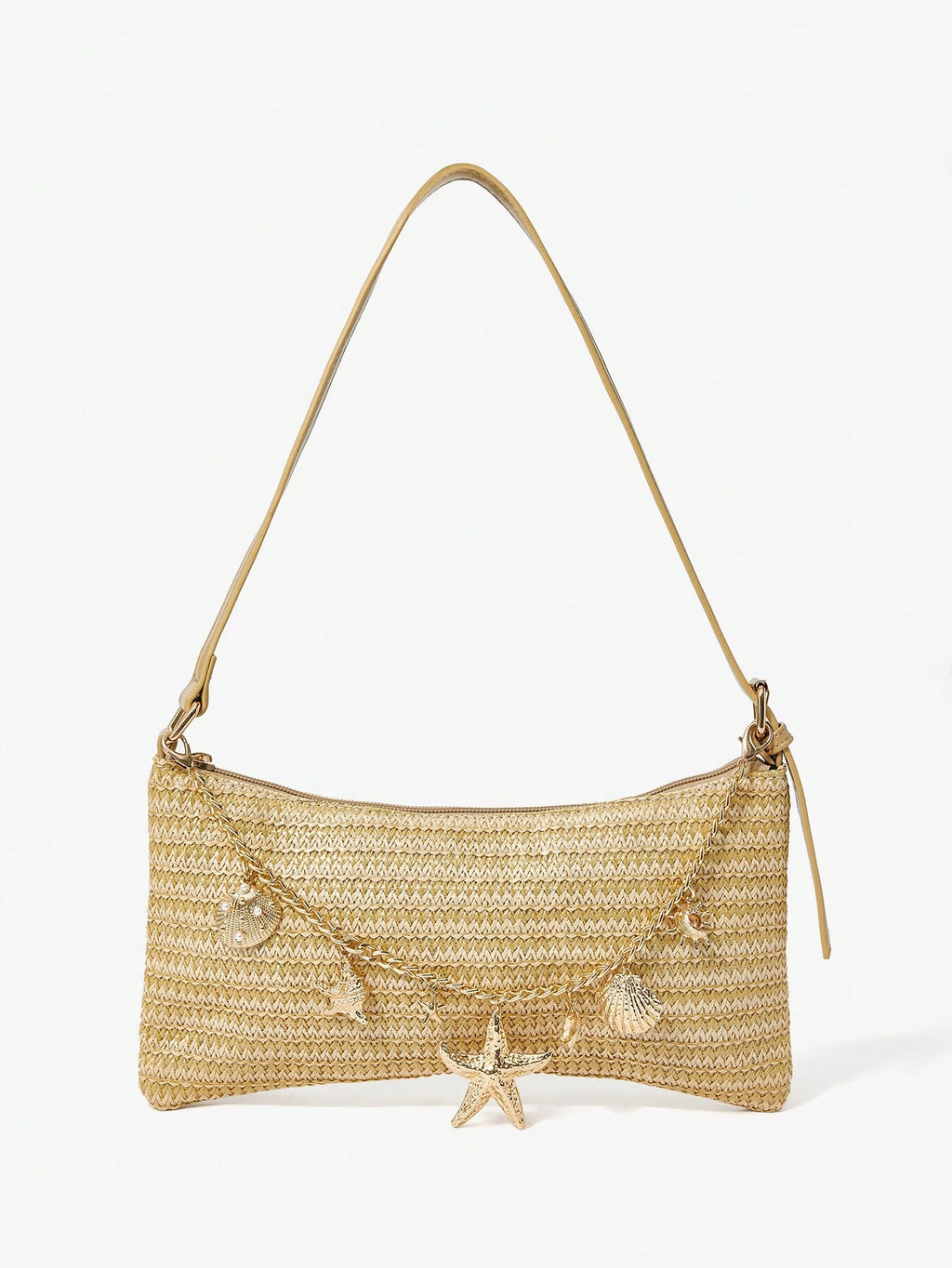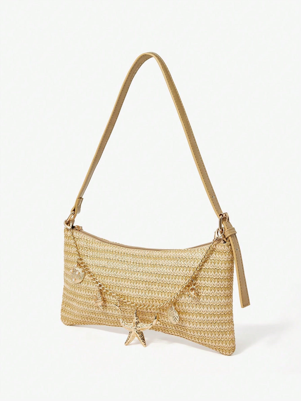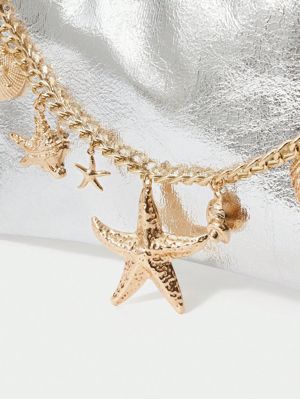MiuVogue 1pc Metallic Cracked Texture Chain Decor Shoulder Bag