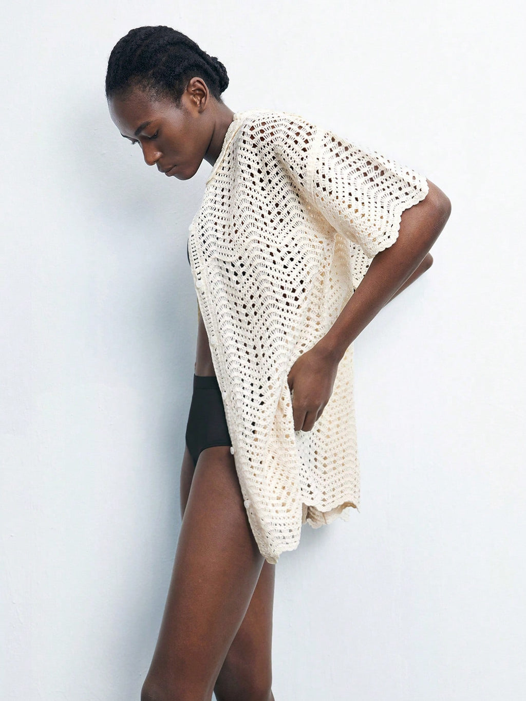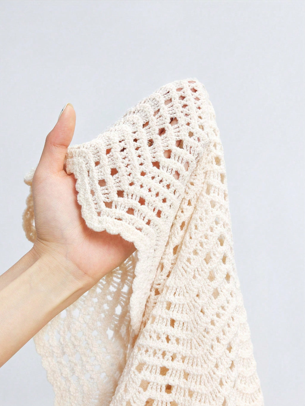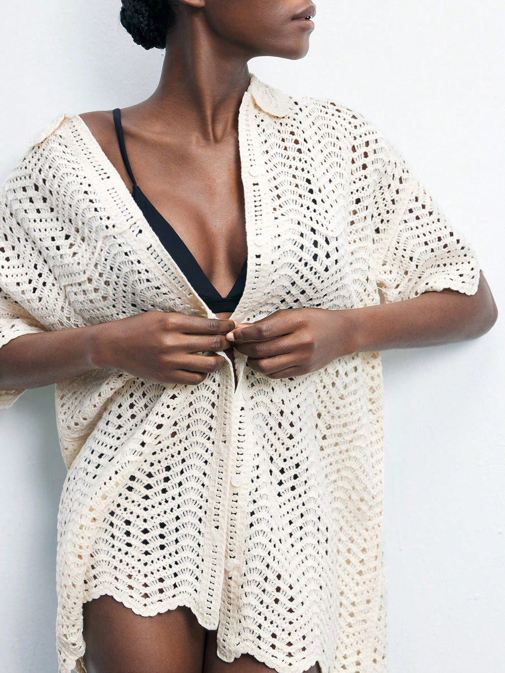 MiuVogue Apricot Color Crochet V-Neck Cover Up Women's Sheer Cover Up, Casual Comfortable Loose Bohemian Style, Suitable For St. Patrick's Day, Spring Break, Easter, Holiday Clothes, Vacation Outfits Woman, Festival