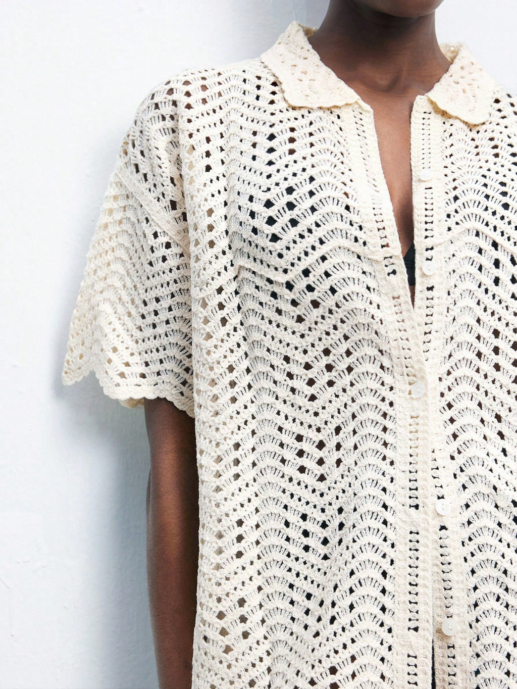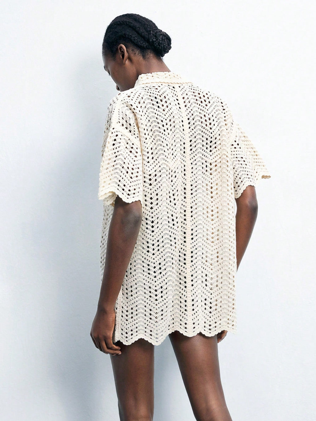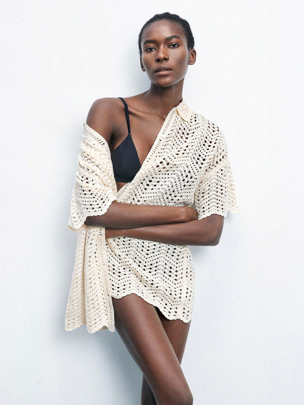 MiuVogue Apricot Color Crochet V-Neck Cover Up Women's Sheer Cover Up, Casual Comfortable Loose Bohemian Style, Suitable For St. Patrick's Day, Spring Break, Easter, Holiday Clothes, Vacation Outfits Woman, Festival