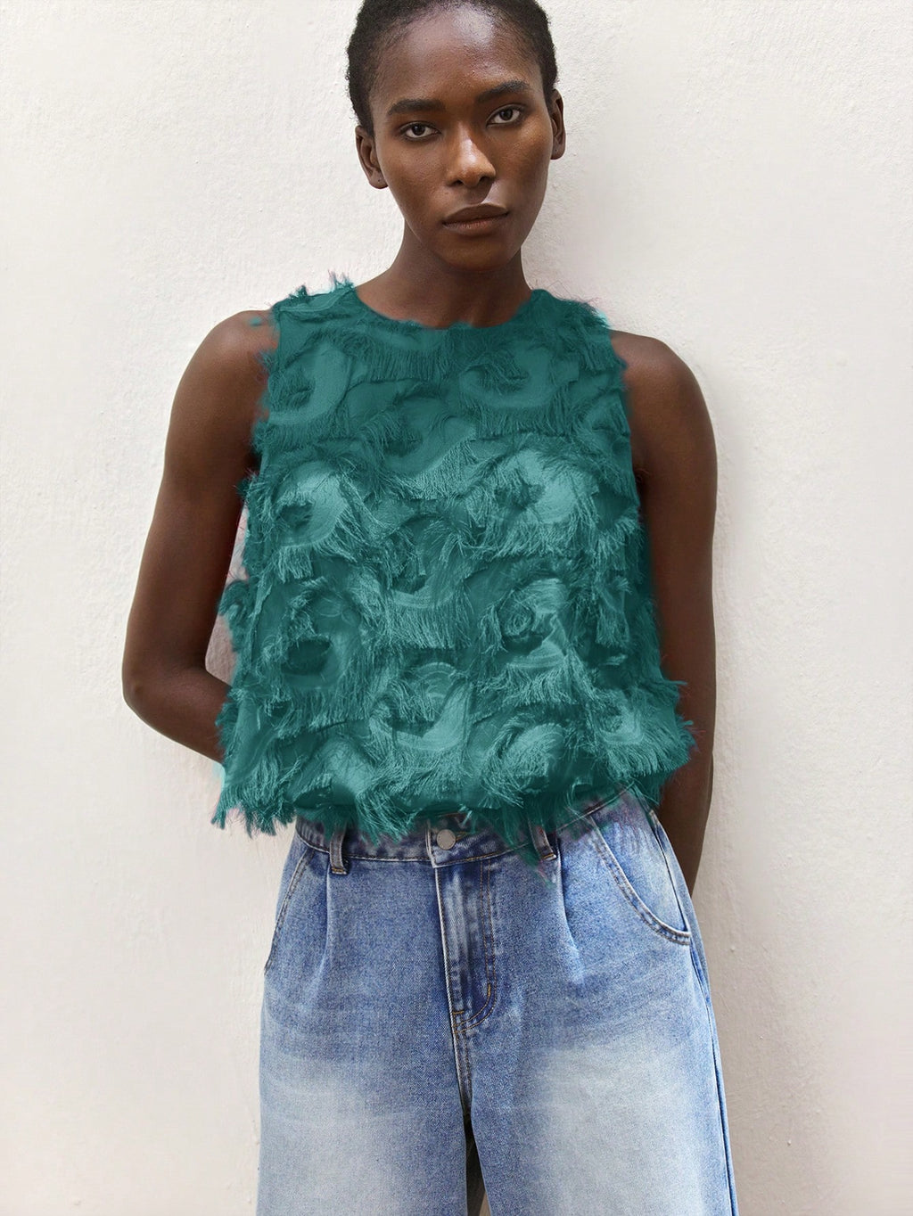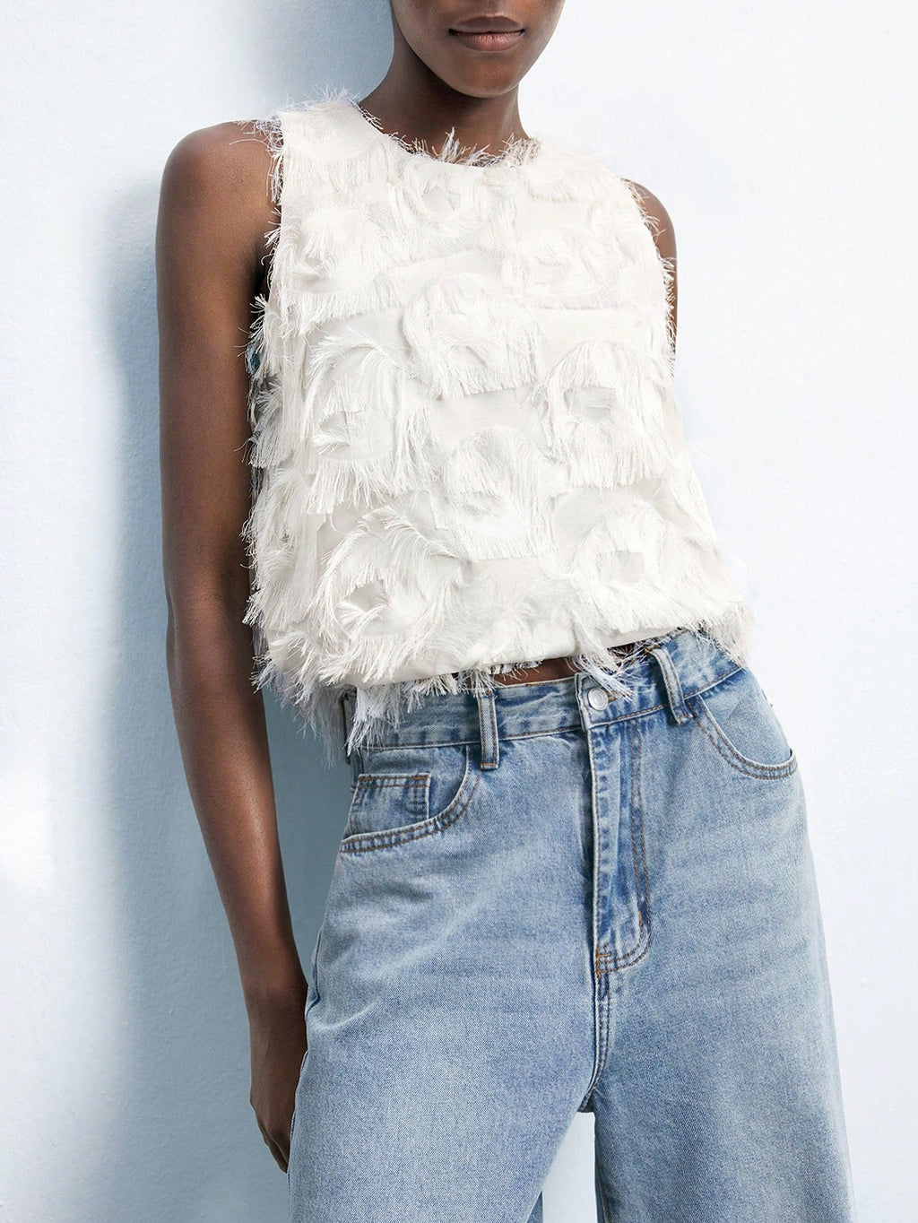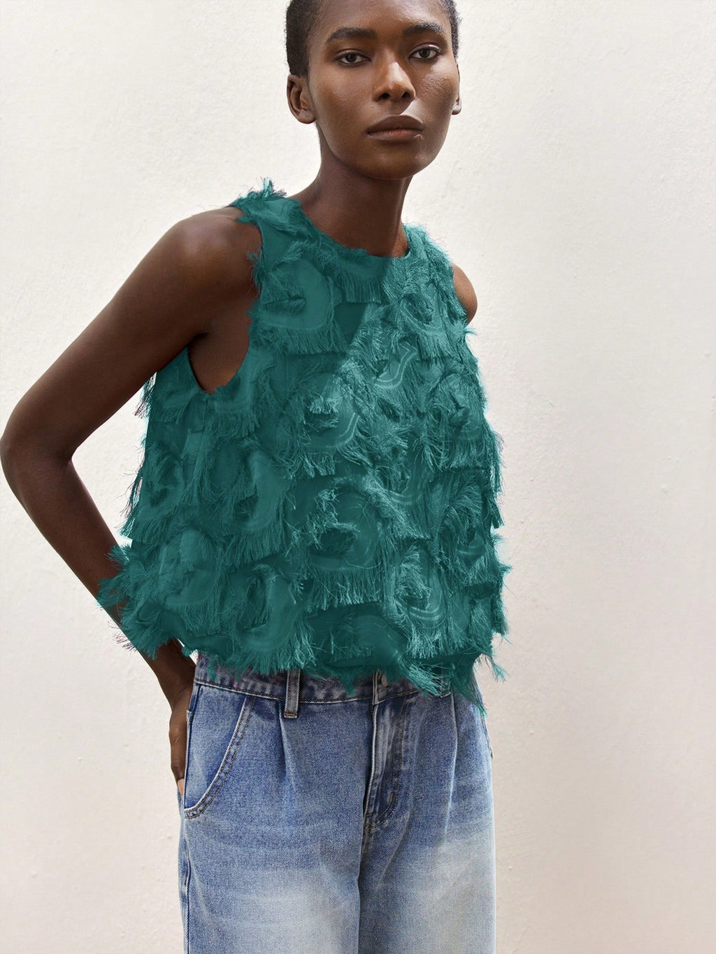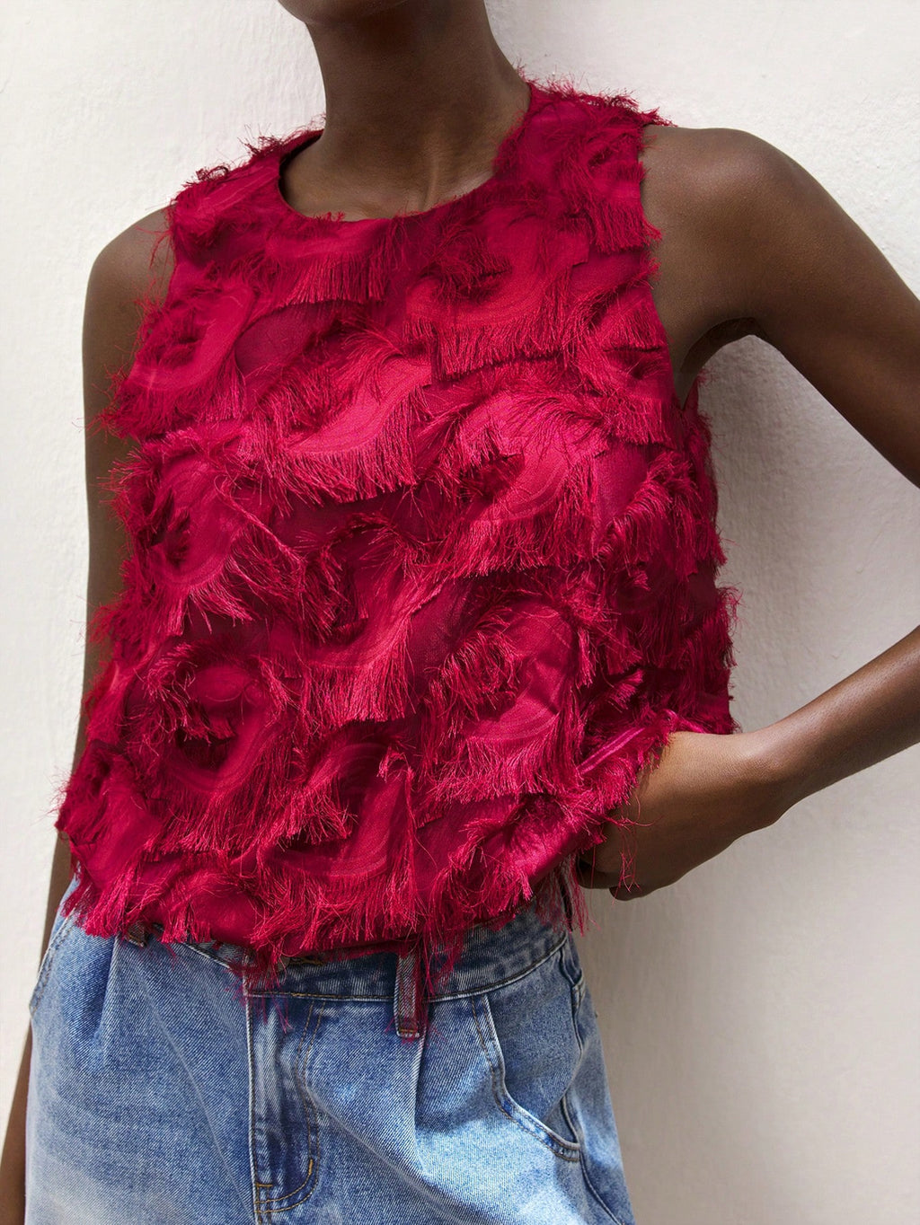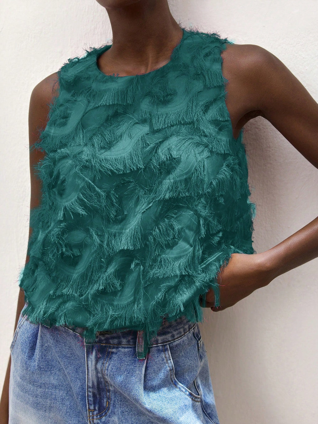 MiuVogue Apricot Jacquard Fabric Round Neck Floral Hem Design Comfortable Casual Bohemian Style Women's Tank Top, Suitable For Spring