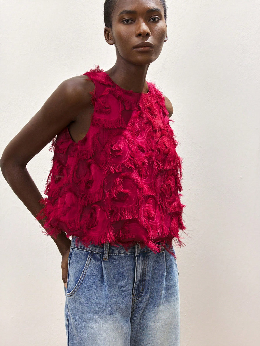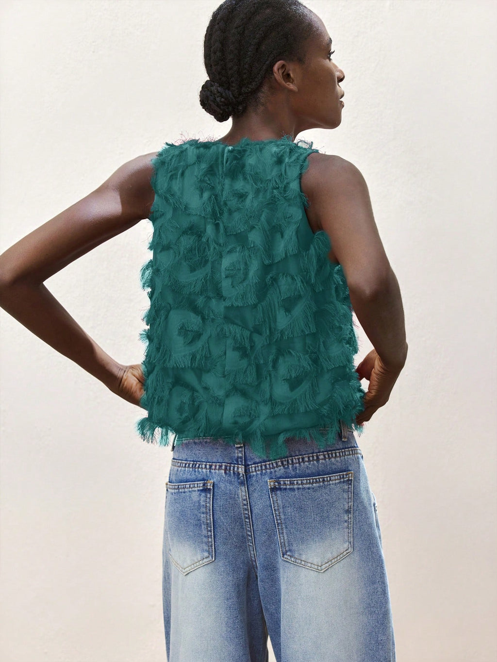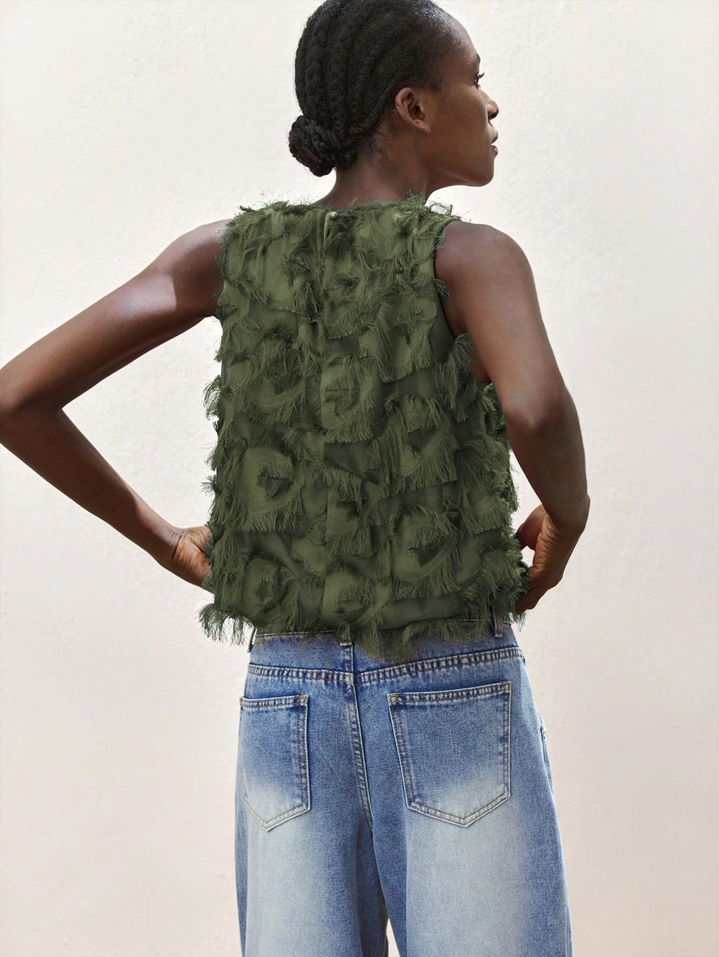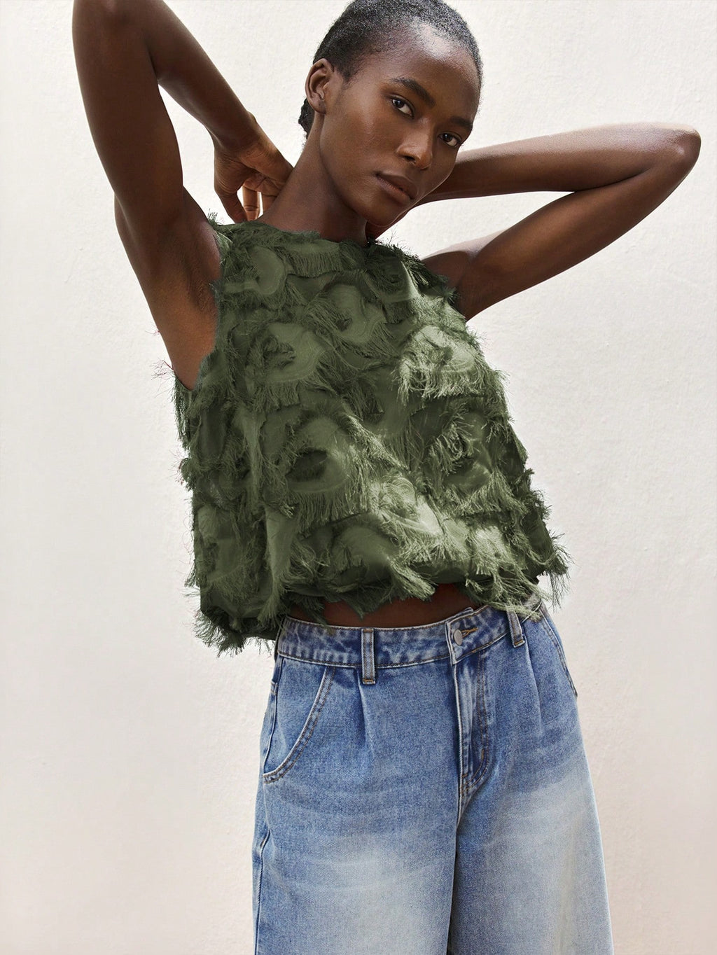 MiuVogue Apricot Jacquard Fabric Round Neck Floral Hem Design Comfortable Casual Bohemian Style Women's Tank Top, Suitable For Spring