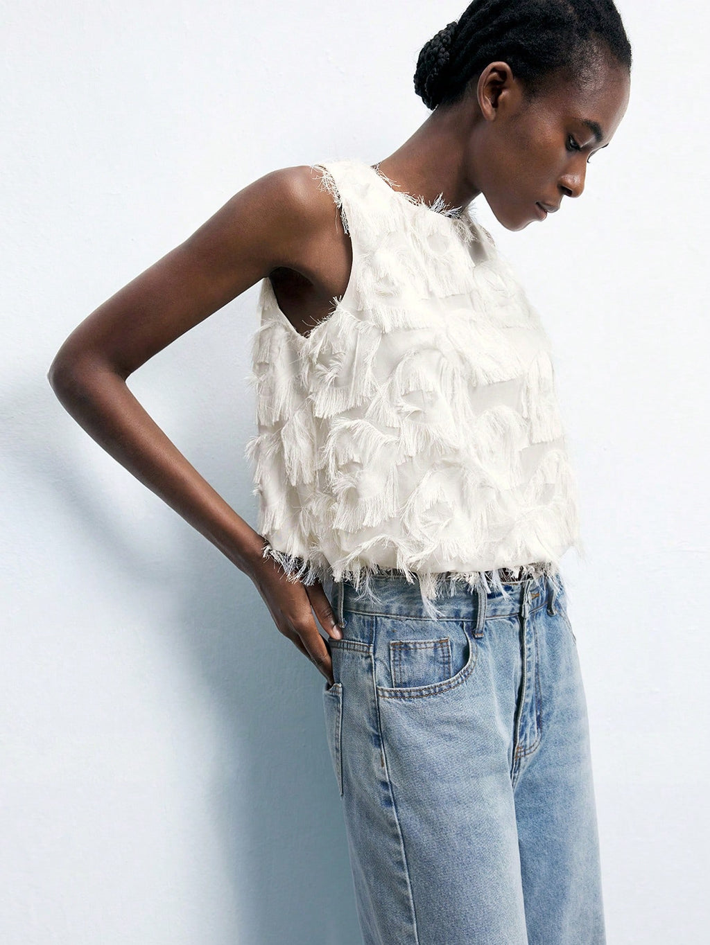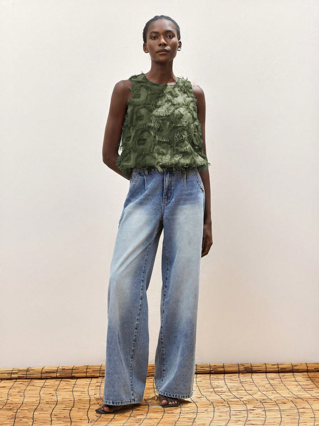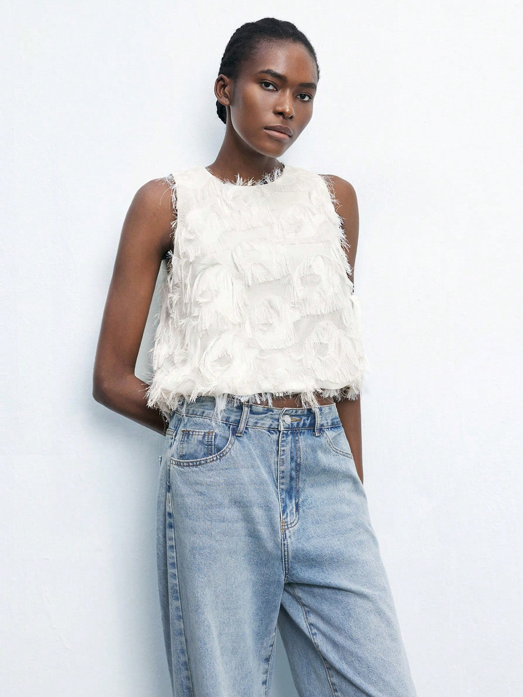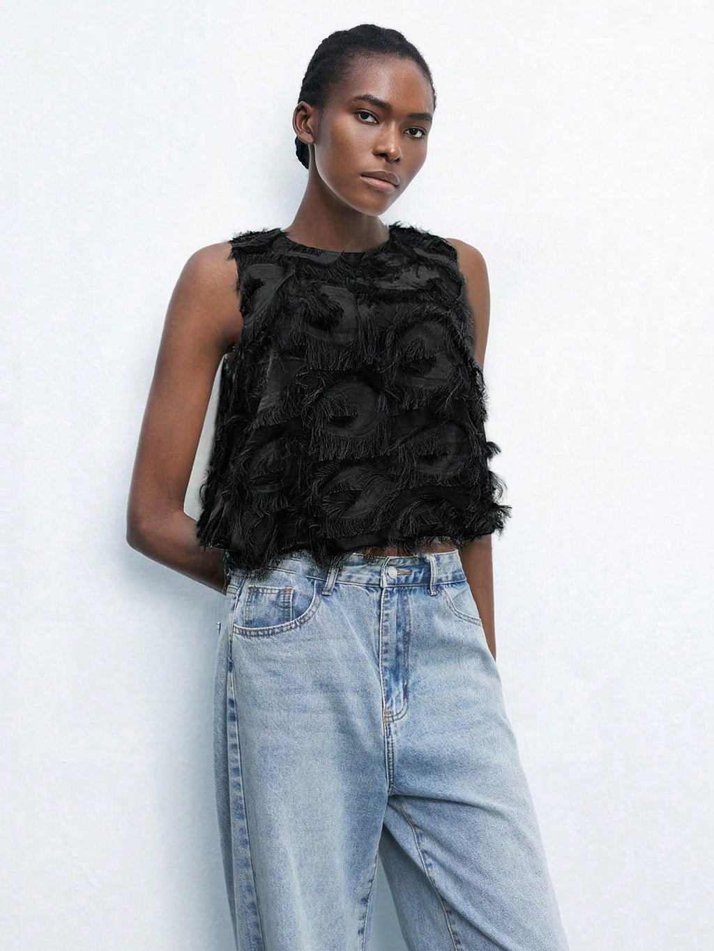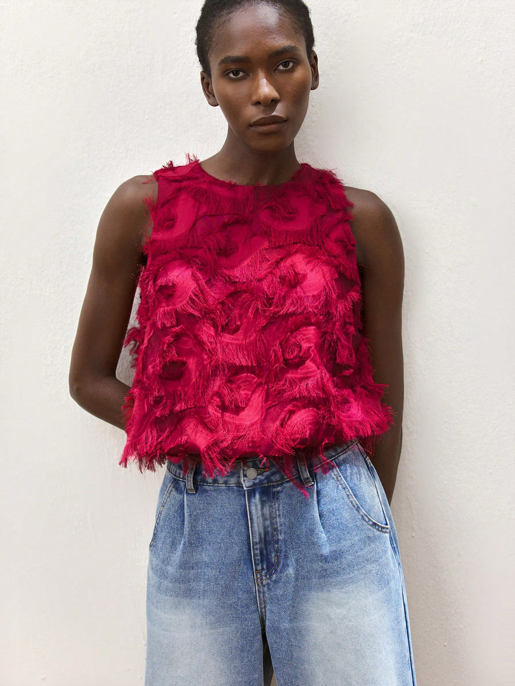 MiuVogue Apricot Jacquard Fabric Round Neck Floral Hem Design Comfortable Casual Bohemian Style Women's Tank Top, Suitable For Spring