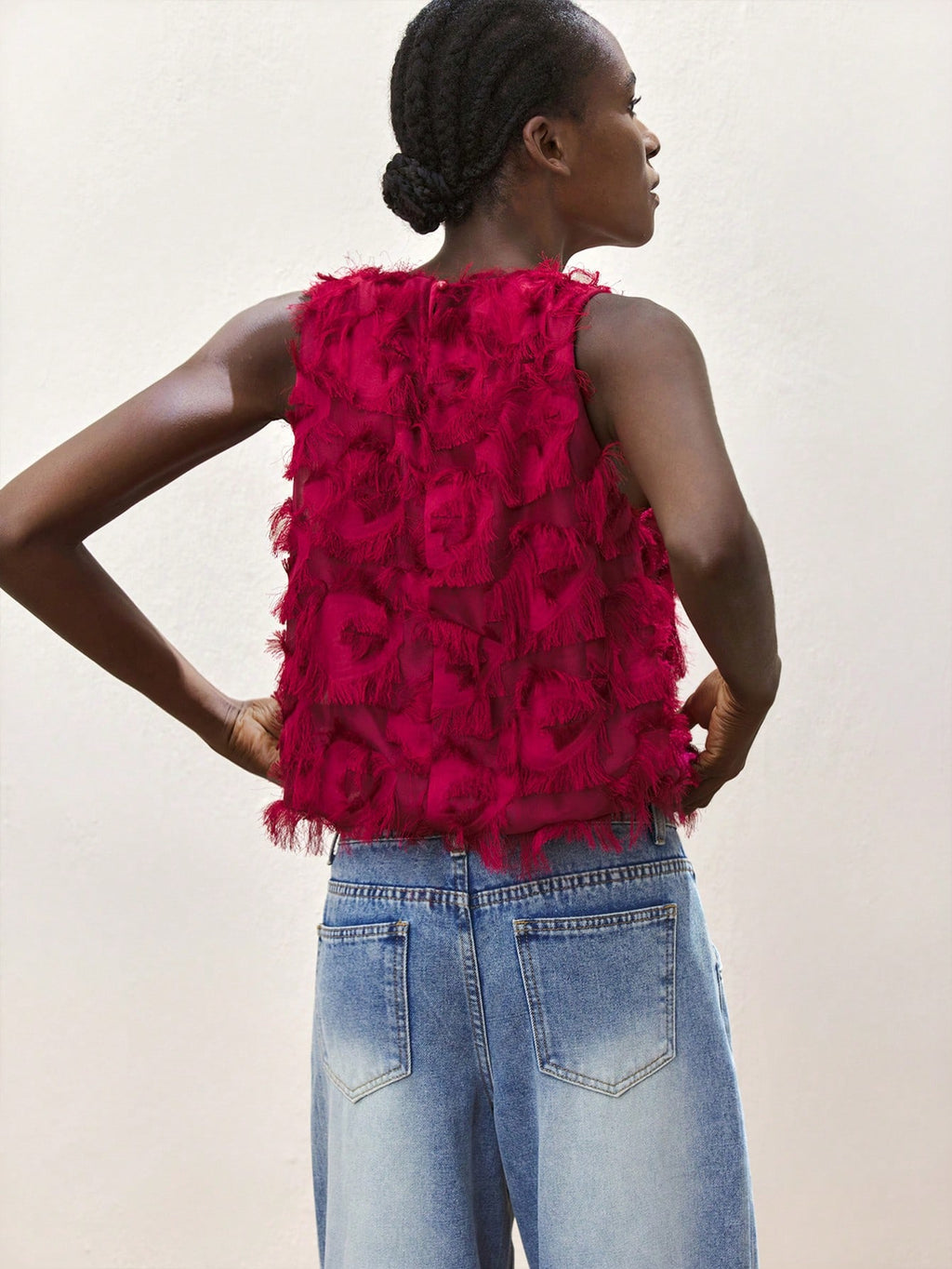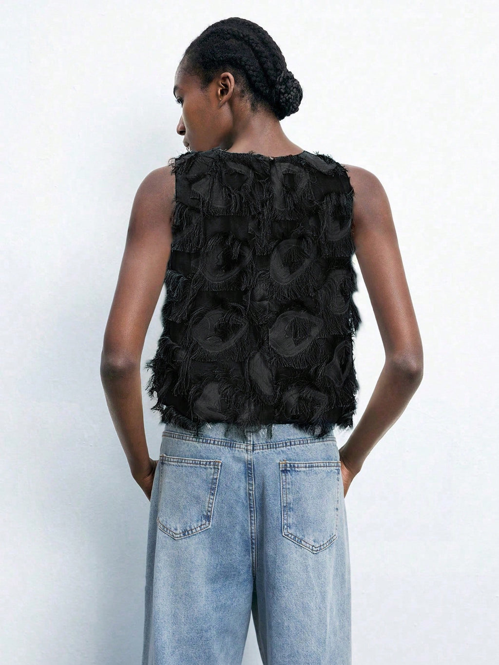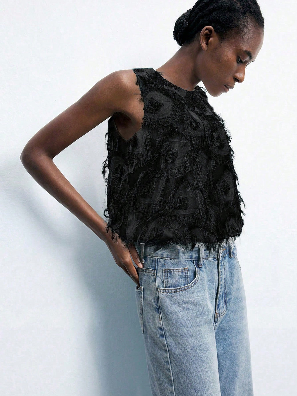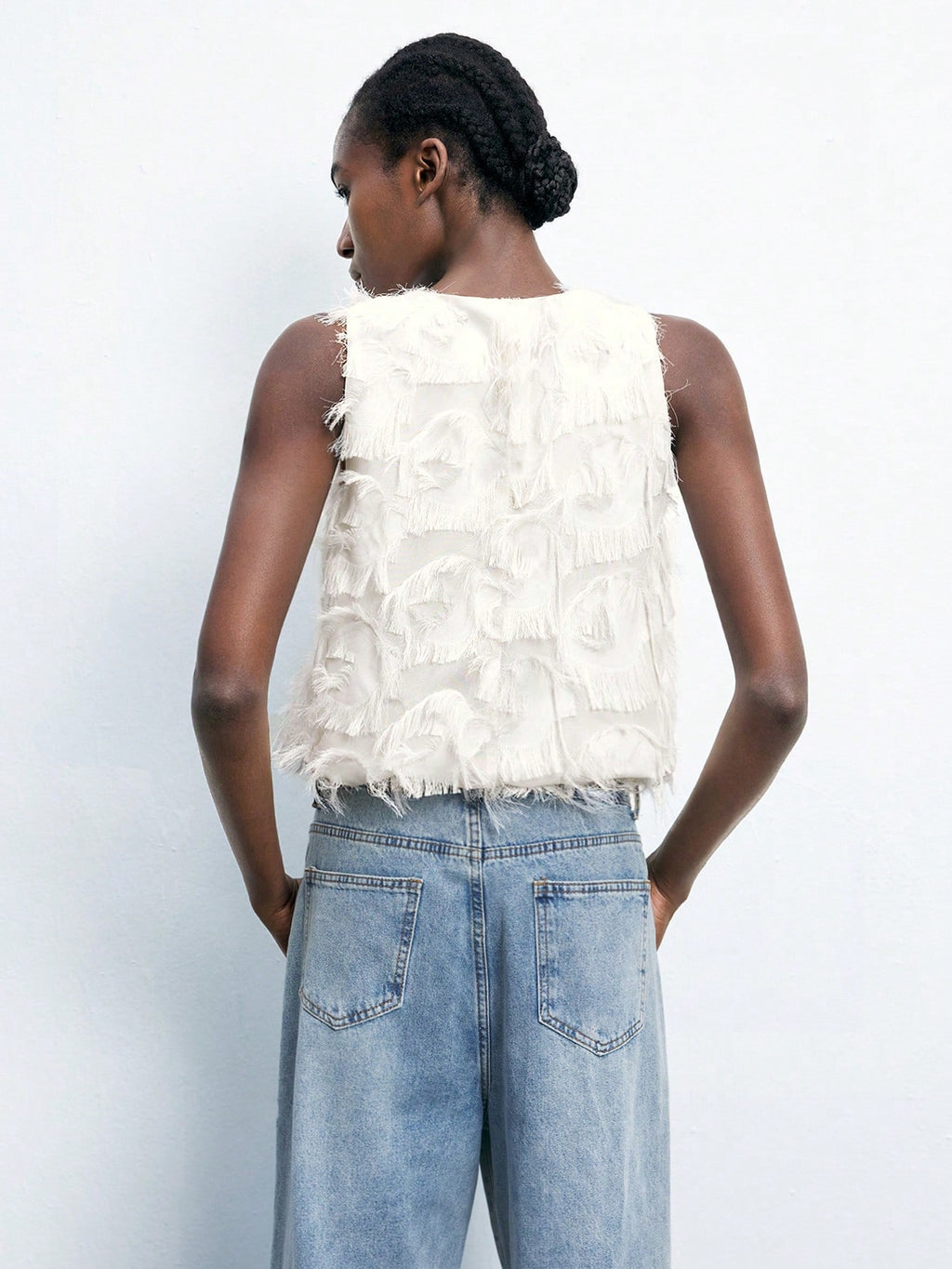 MiuVogue Apricot Jacquard Fabric Round Neck Floral Hem Design Comfortable Casual Bohemian Style Women's Tank Top, Suitable For Spring