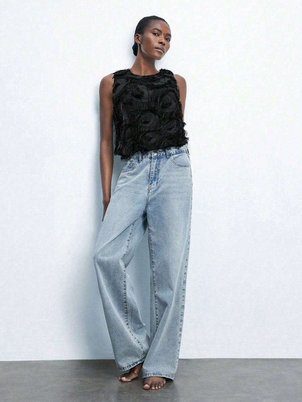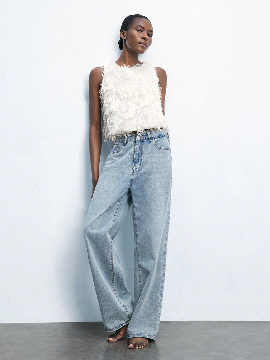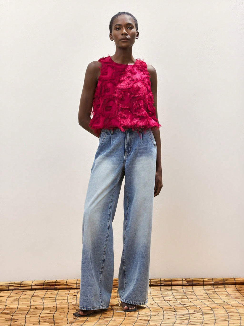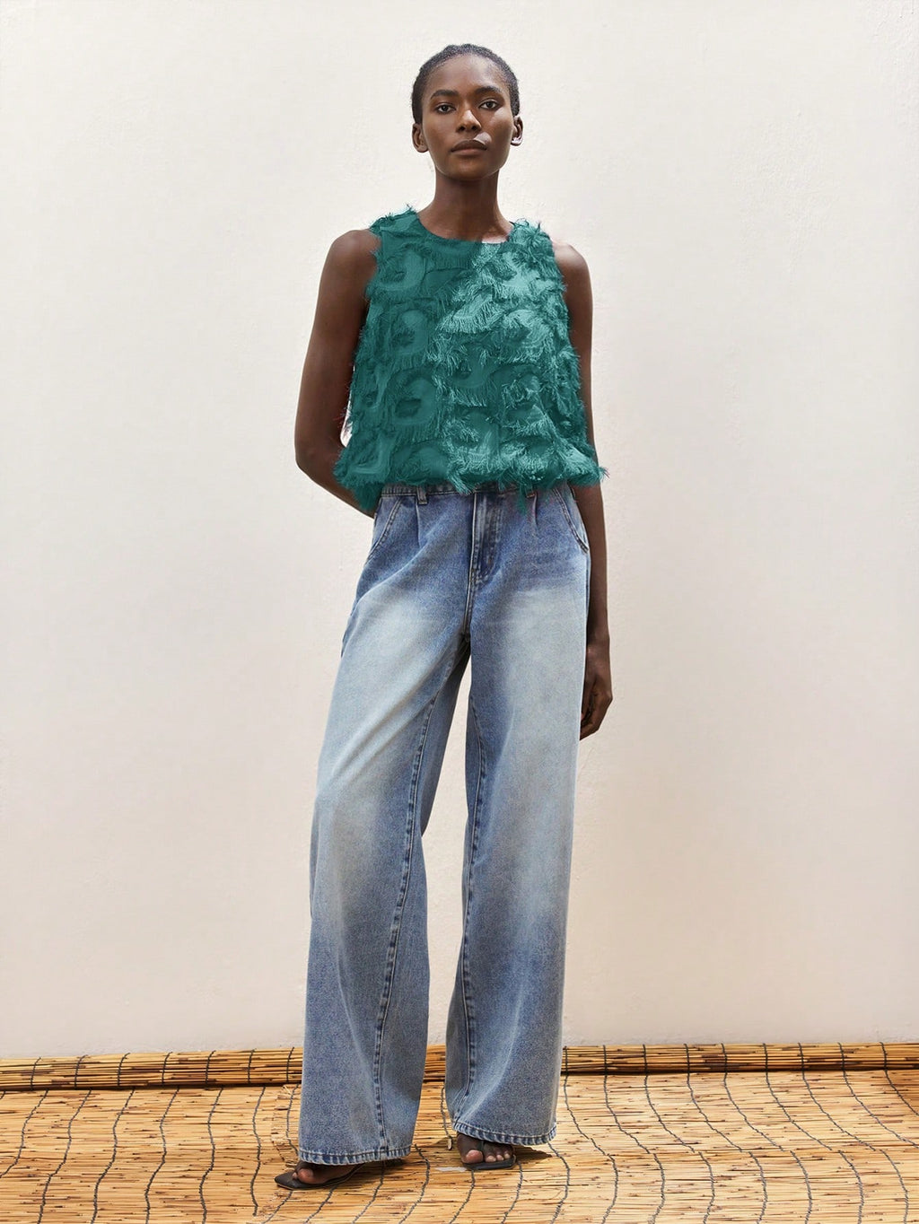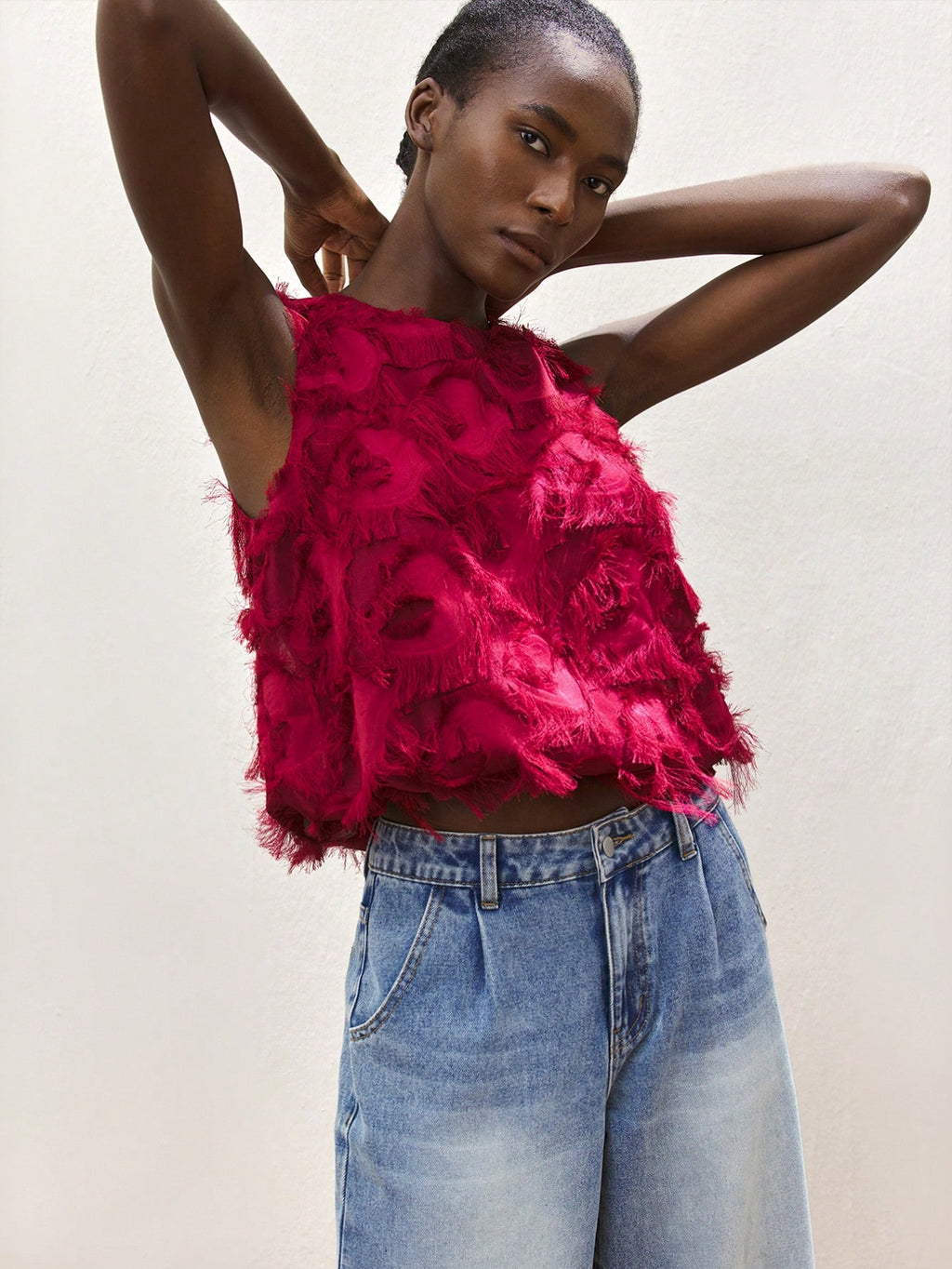 MiuVogue Apricot Jacquard Fabric Round Neck Floral Hem Design Comfortable Casual Bohemian Style Women's Tank Top, Suitable For Spring