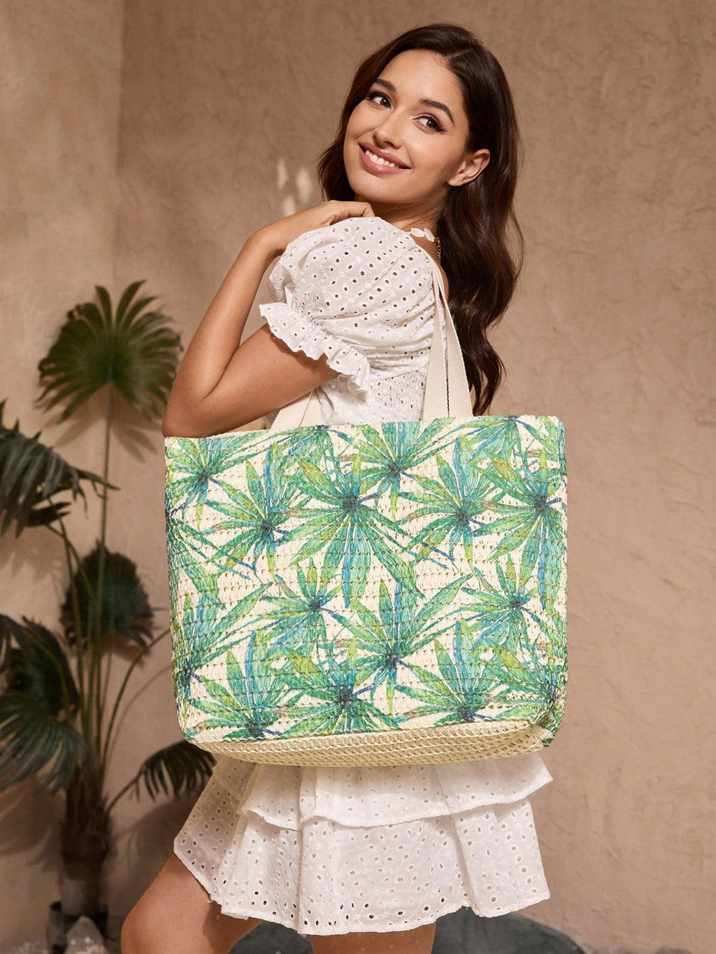 MiuVogue Bohemian Style Shoulder Bag, Casual Woven Tote Bag, Beach Style Handbag (Pattern Random), Summer Vacation Bag
