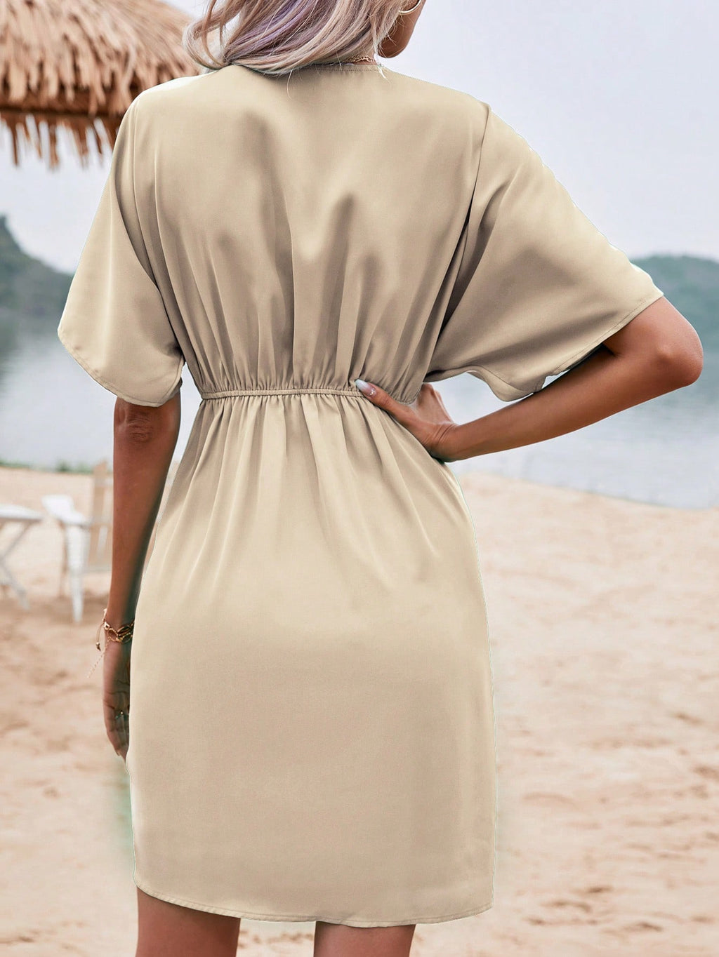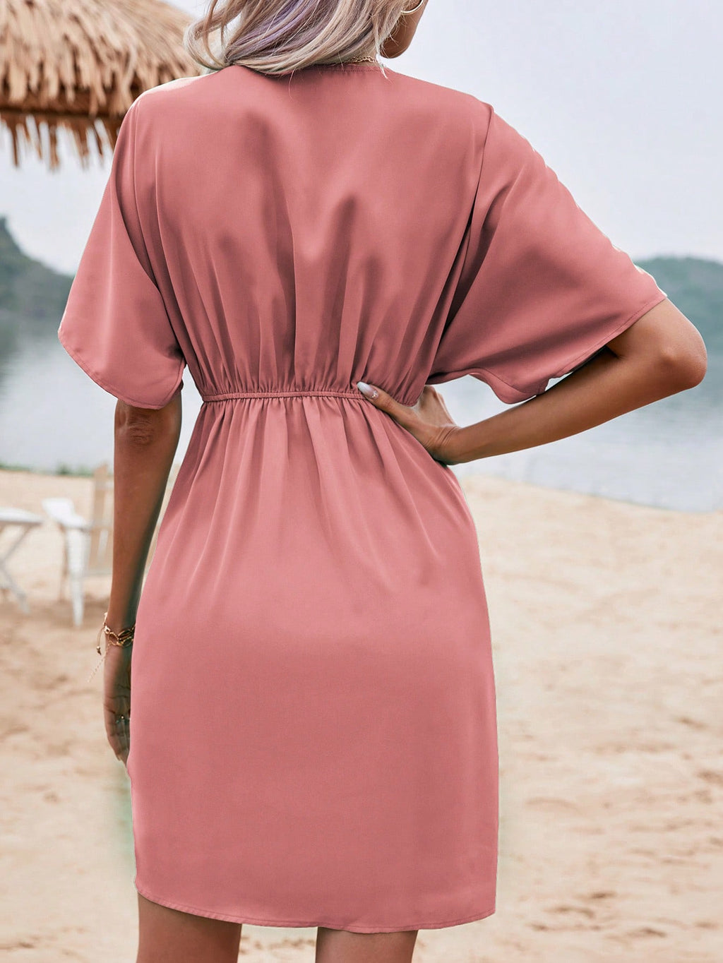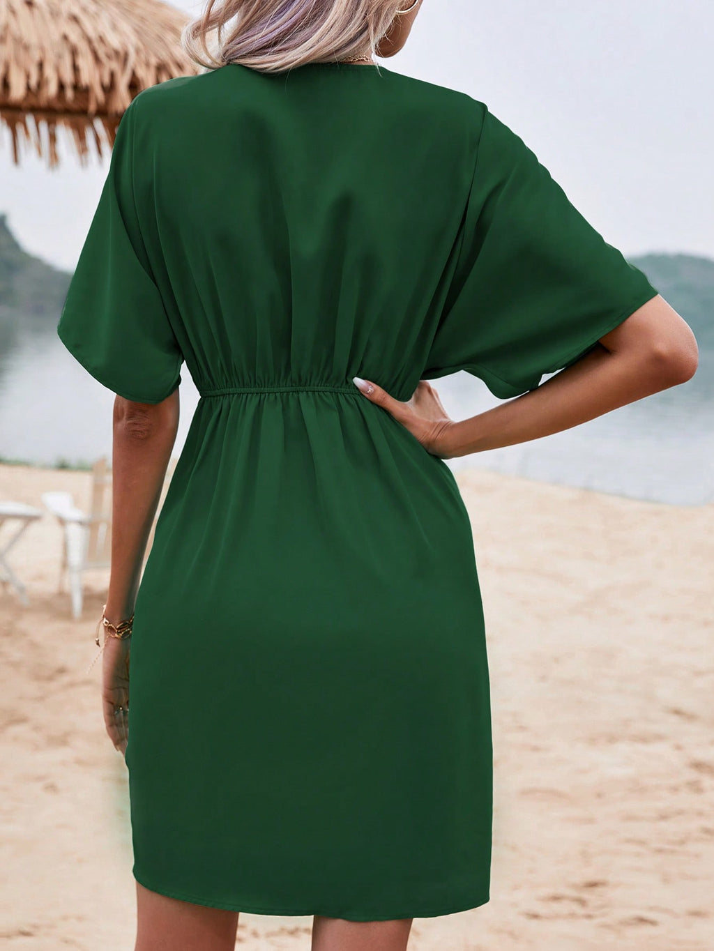 MiuVogue Clasi Solid Batwing Sleeve Ruched Front Dress