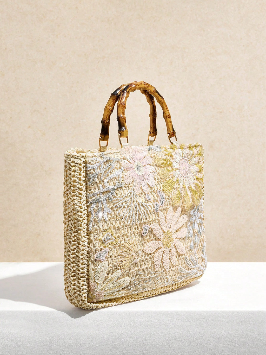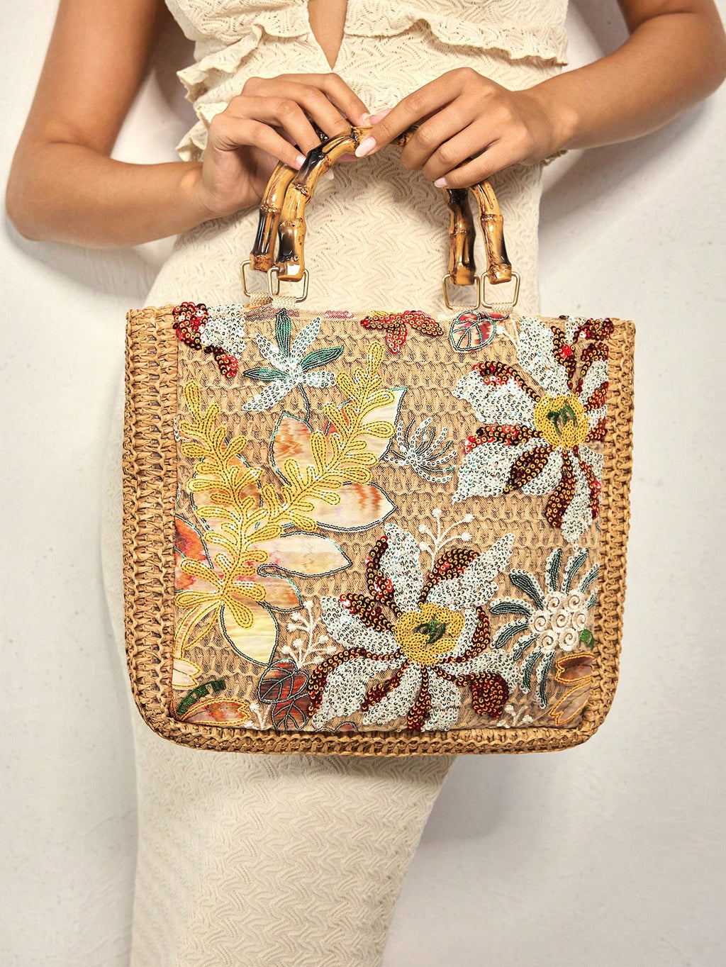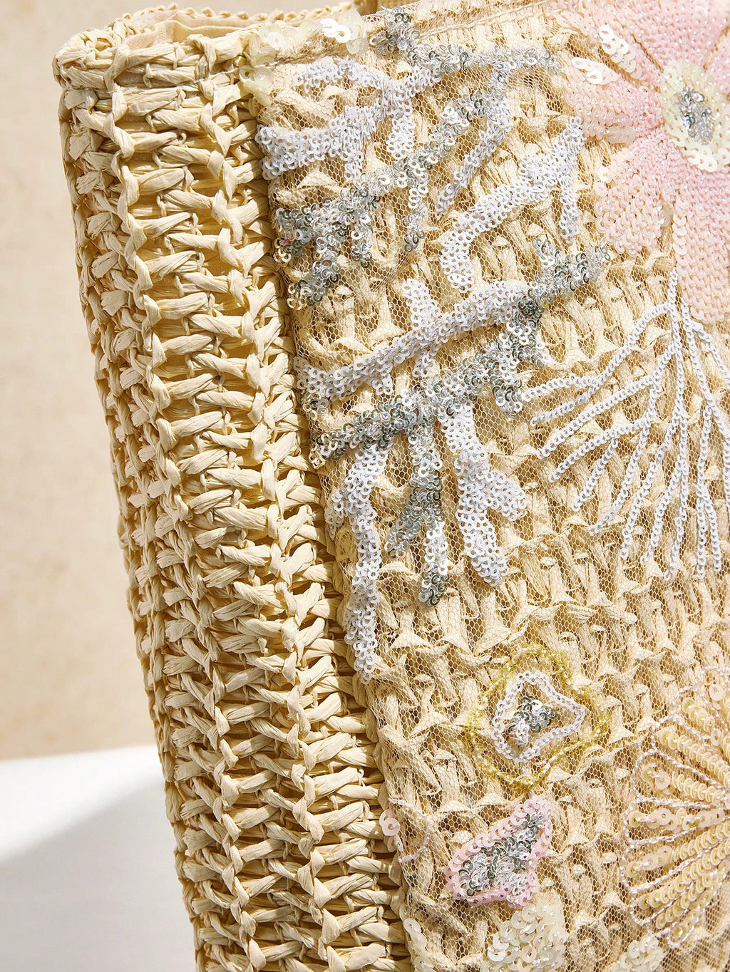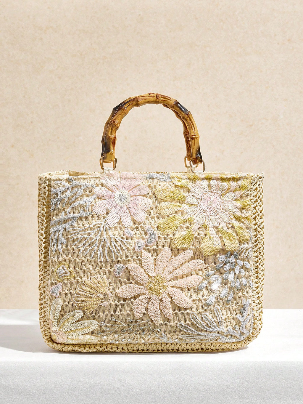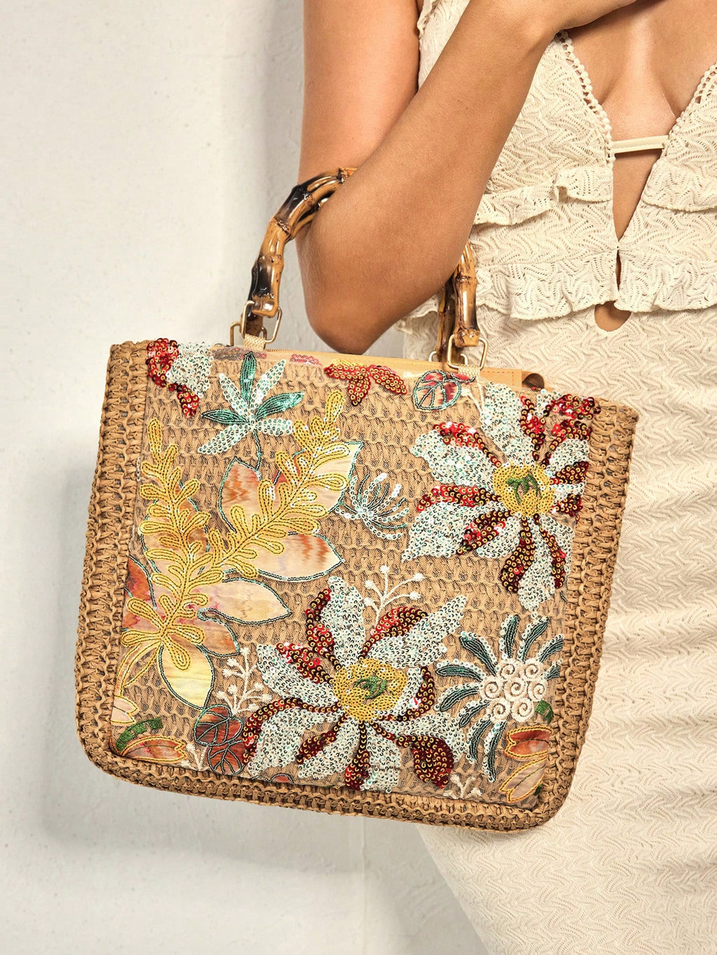 MiuVogue Floral Sequin Embellished Random Woven Women's Handbag