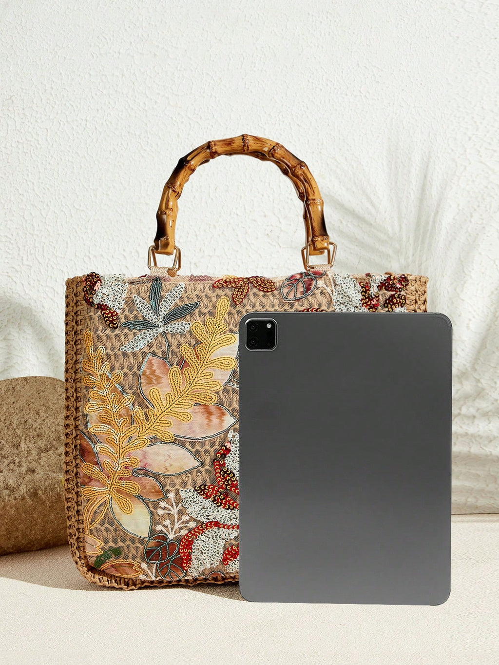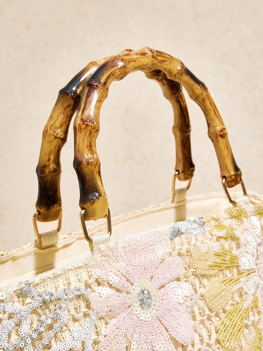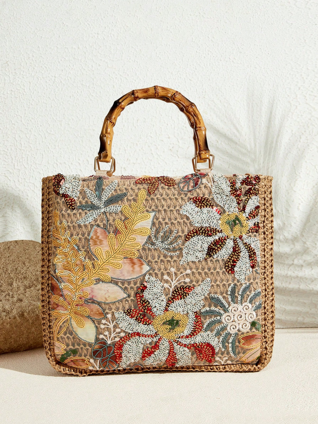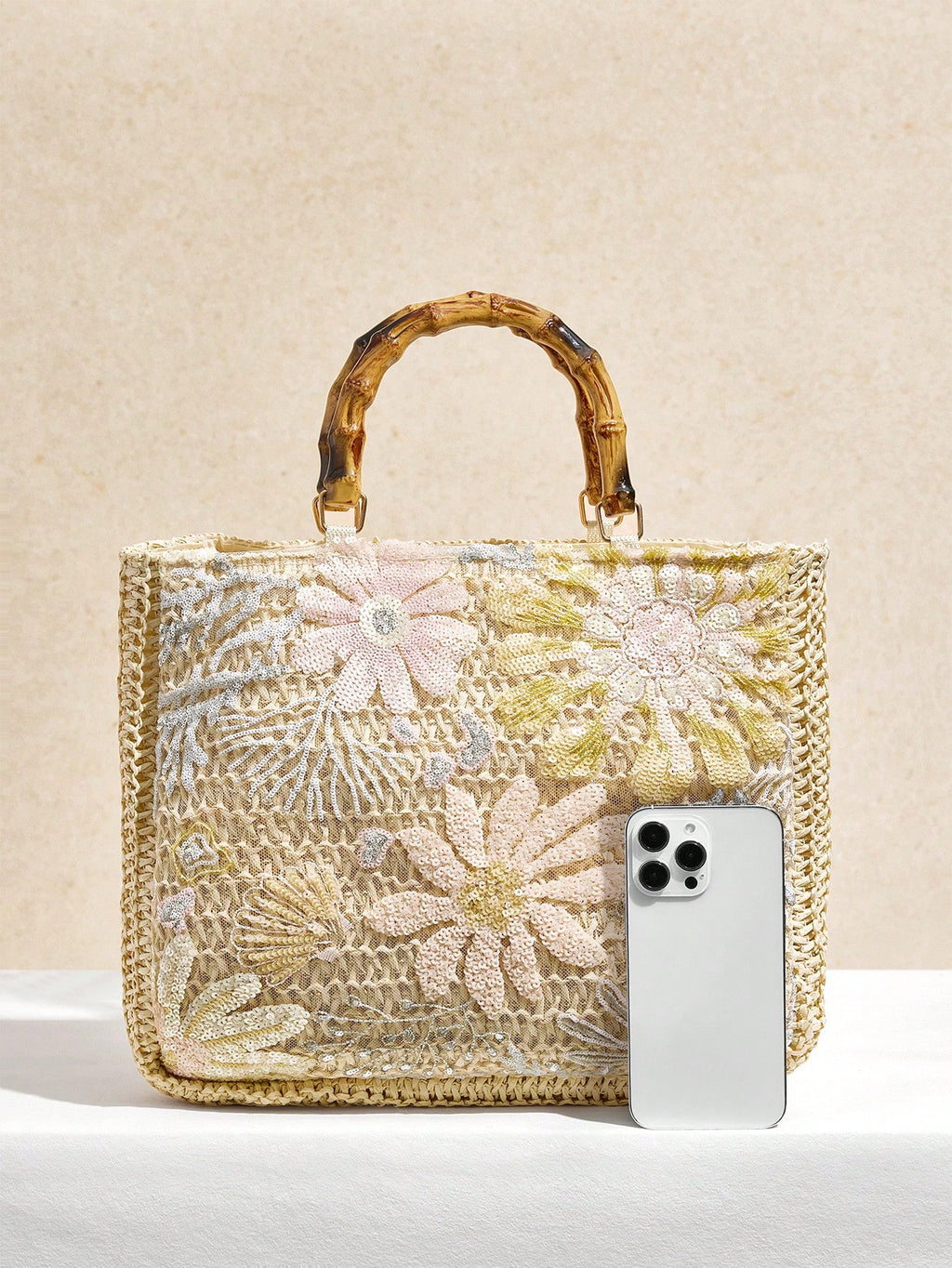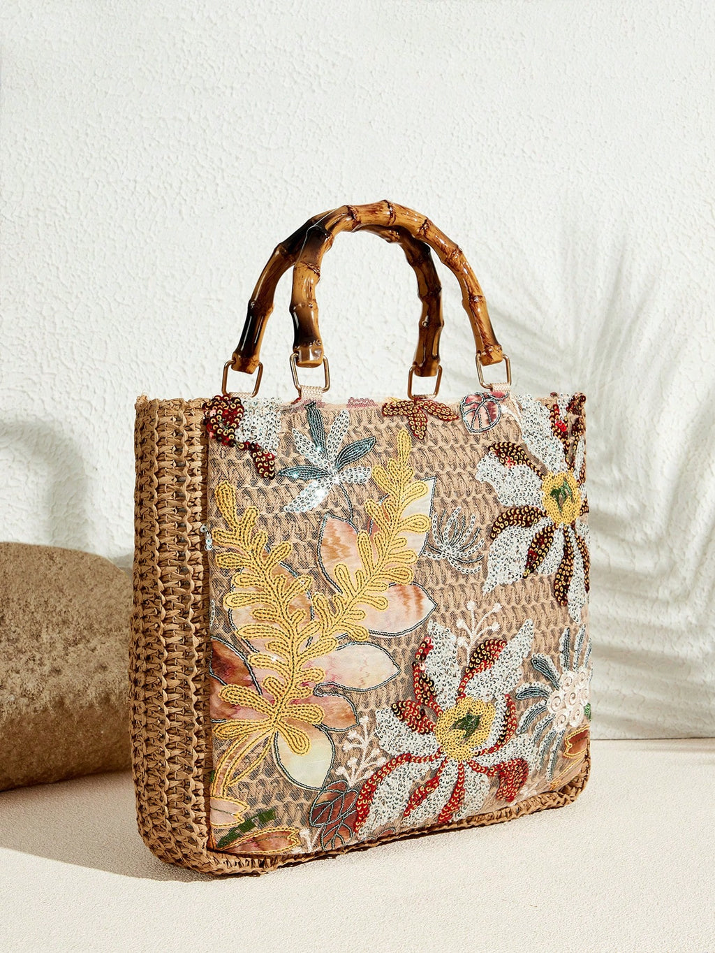 MiuVogue Floral Sequin Embellished Random Woven Women's Handbag