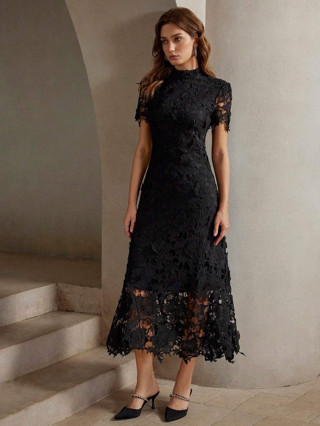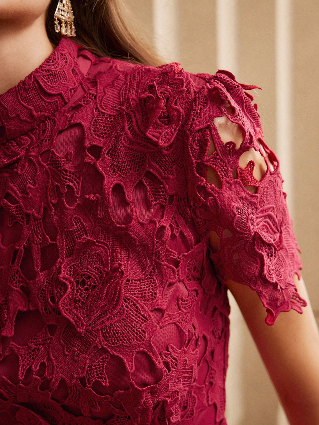MiuVogue Lace Trim Fitted Mini Dress For Women Burgundy Maxi Women Outfit