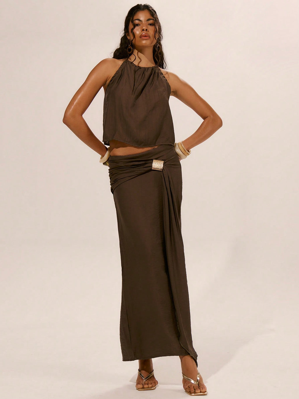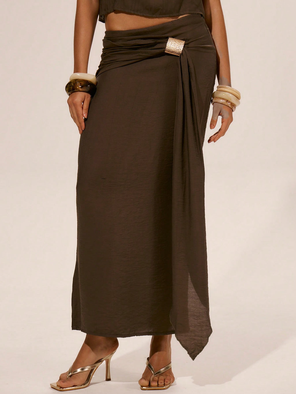 MiuVogue Maxi Draped Tie Gold Detail Trim Cover Up Skirt Spring, Summer, Ibiza, Holiday, Cute, Romantic, Festival, Vacation Beachwear, Beach Unearthly