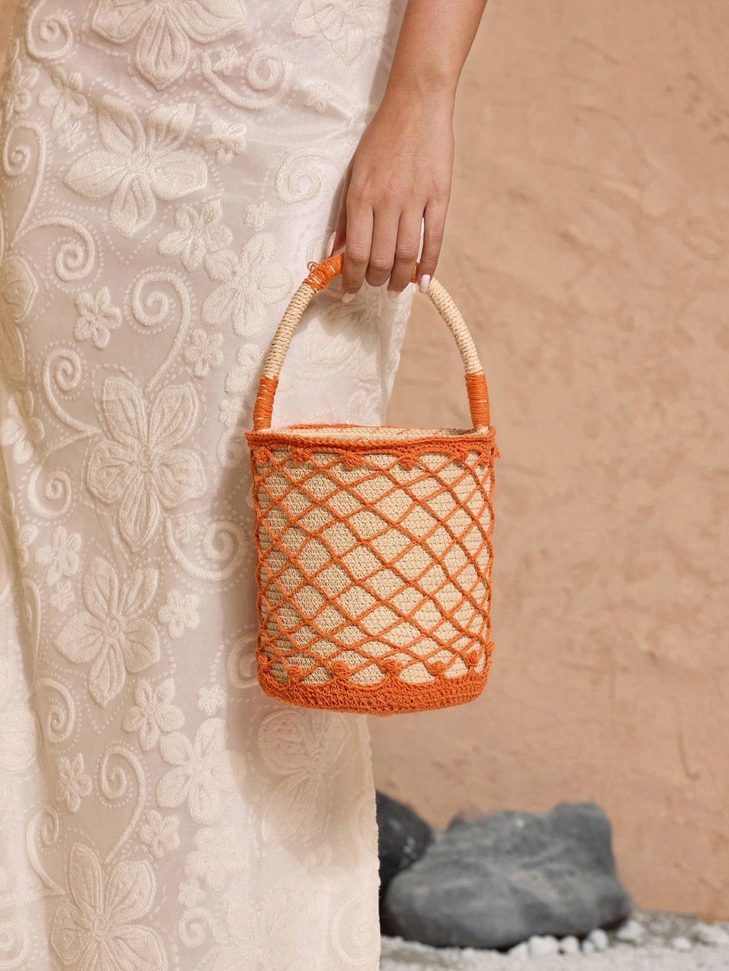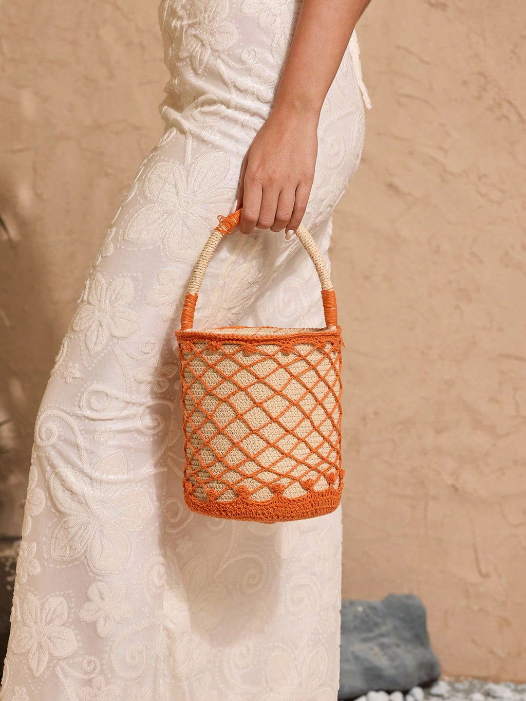 MiuVogue Netted Bucket Shaped Tote Bag, Simple Fashion Casual Daily Use