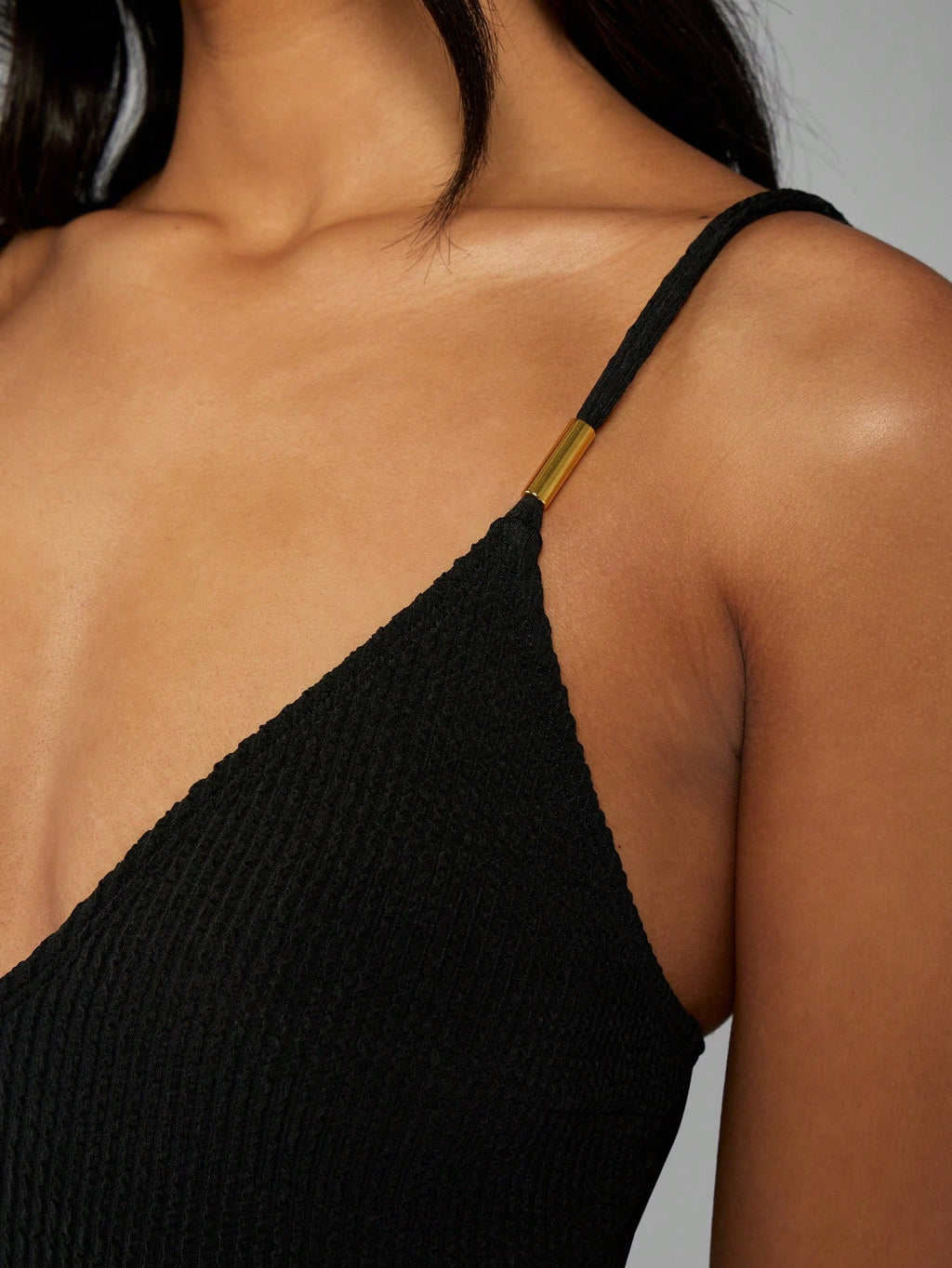 MiuVogue Ribbed Plunge Neck One Piece Swimsuit With Metal Bracelet Detail Adjustable Straps Beach Pool Summer Vacation Cruise Resort Wear Athletic Cut