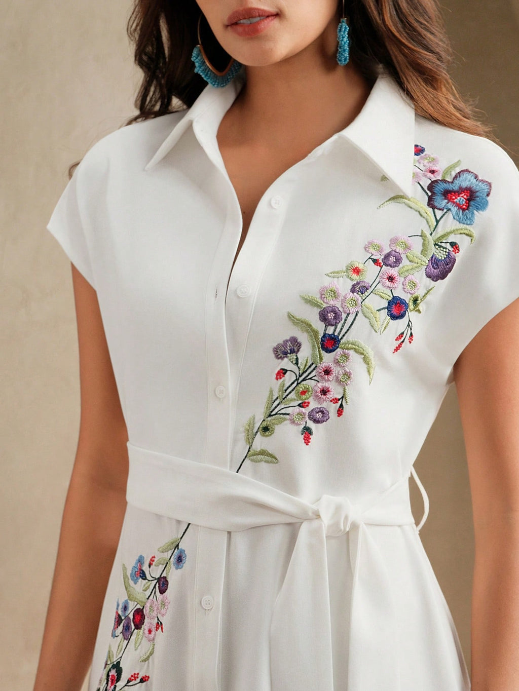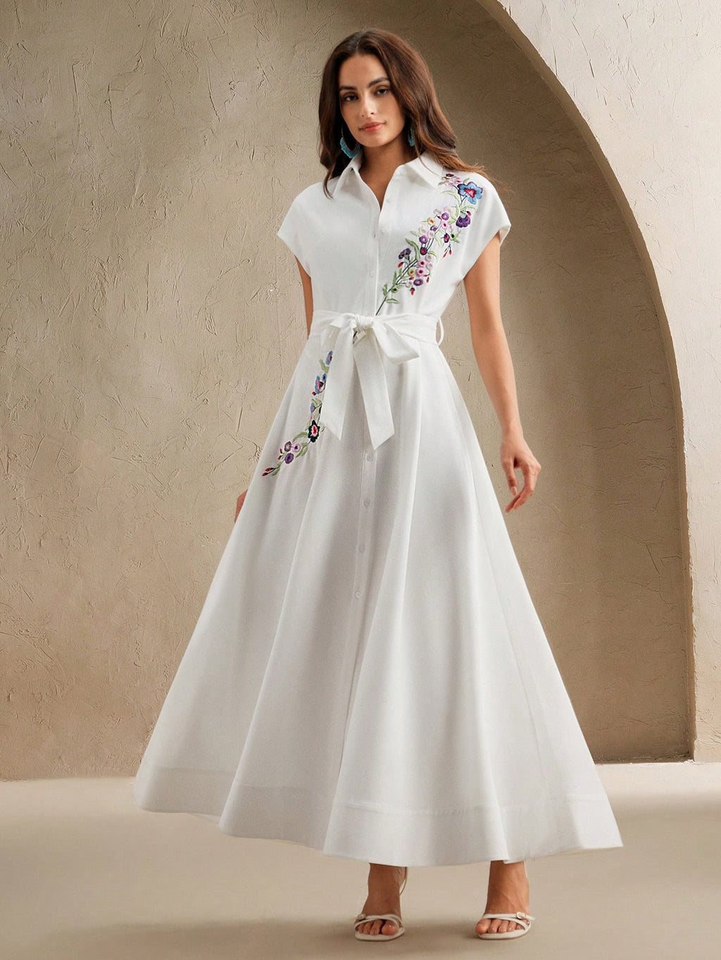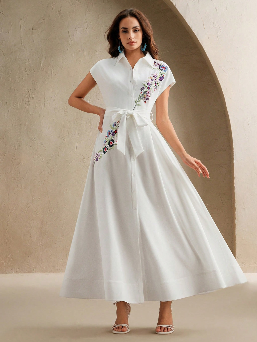MiuVogue Spring/Summer New Open-Front Embroidered Floral Pattern Sleeveless Dress With Belt For Women