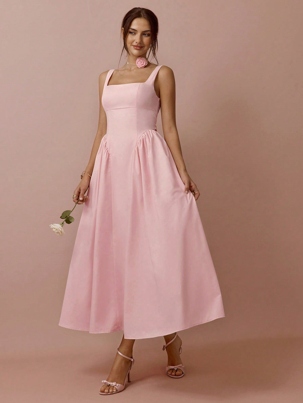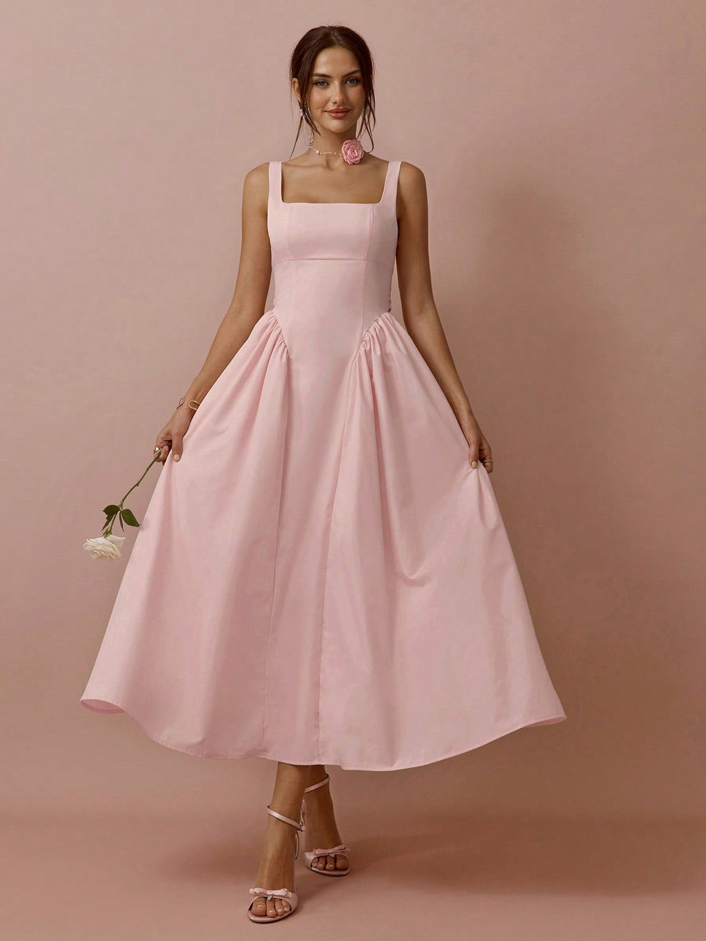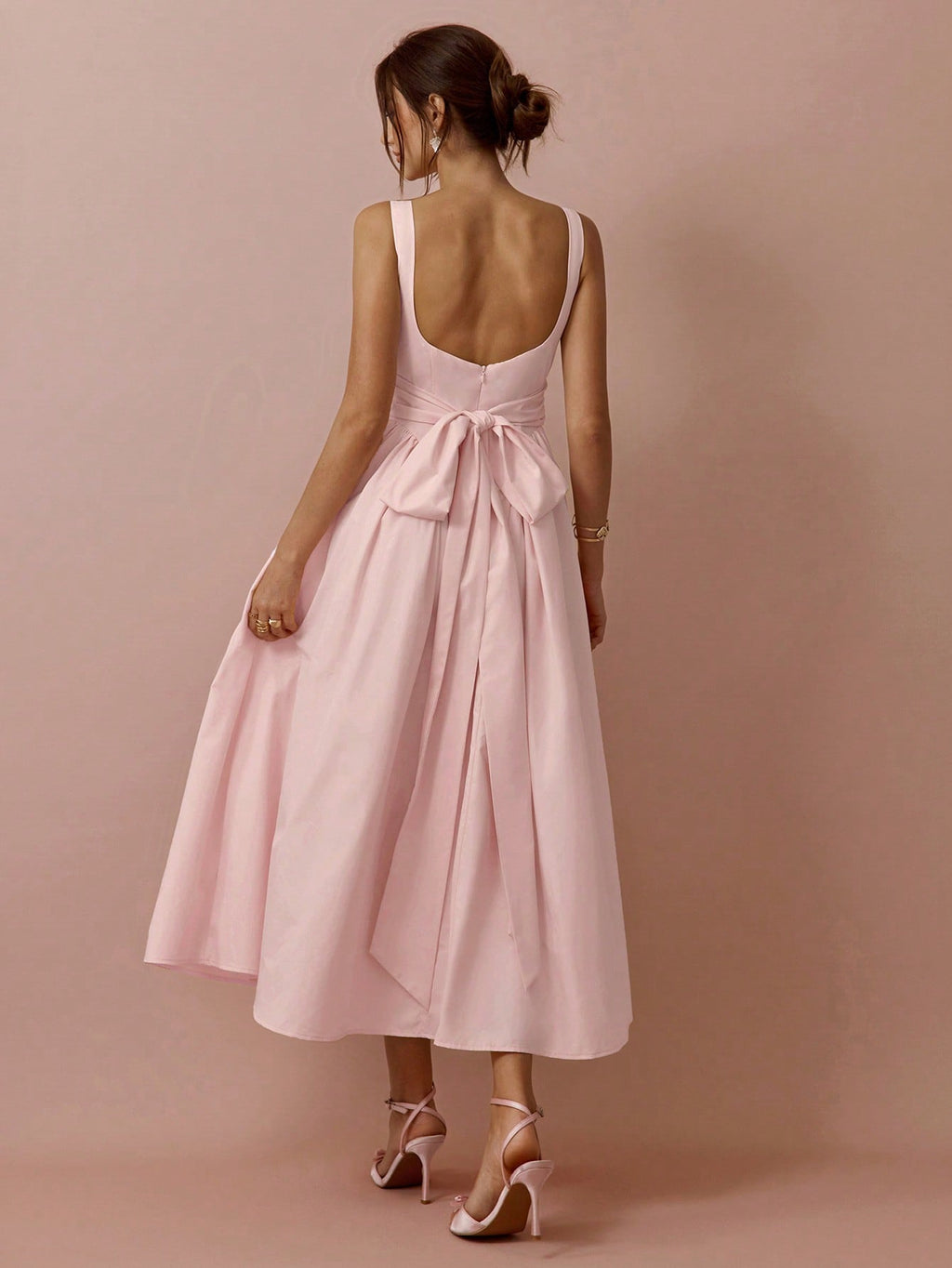MiuVogue Spring/Summer Romantic Women's Soft Pink Big Bowknot Back Cinched Waist Sleeveless Backless Princess Long Dress,Sweet