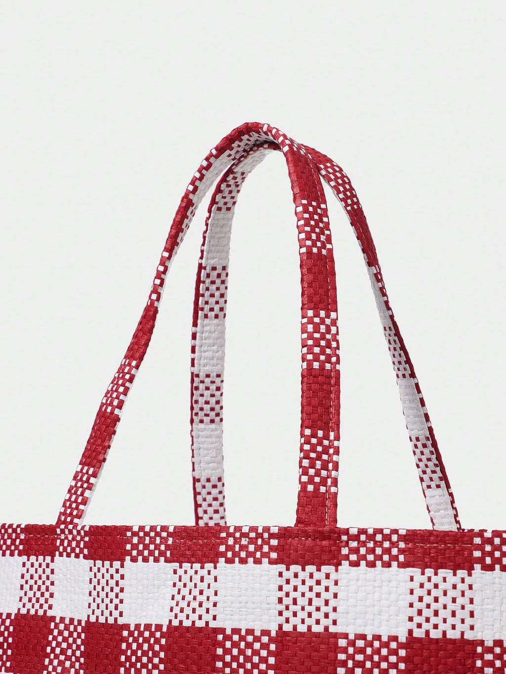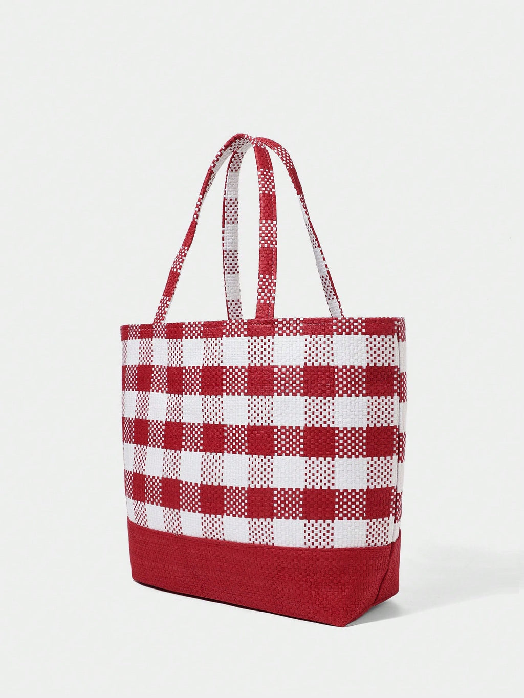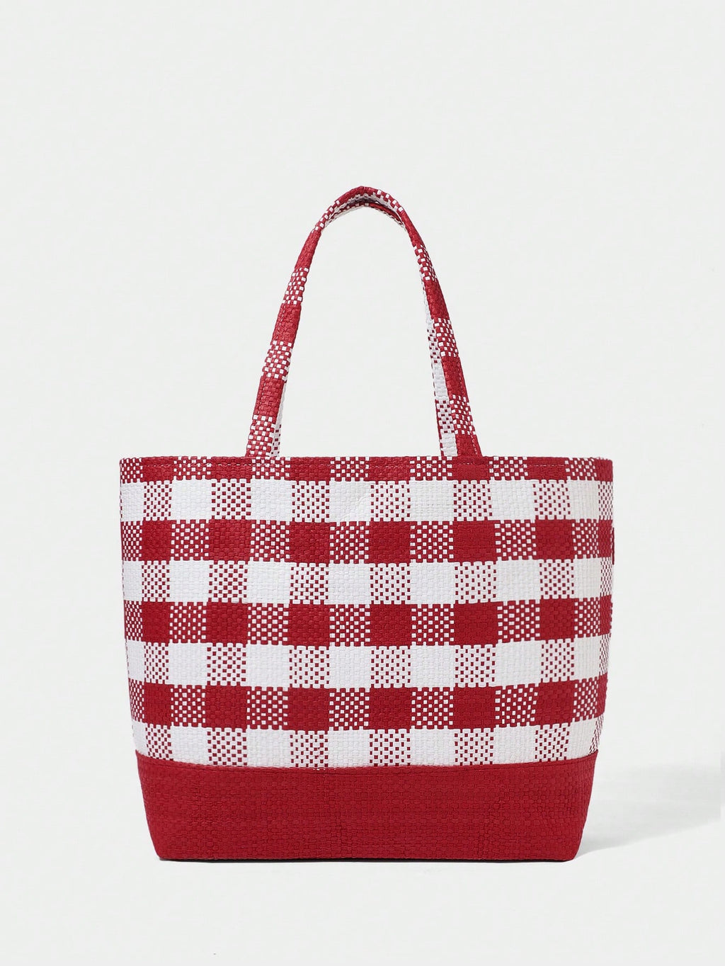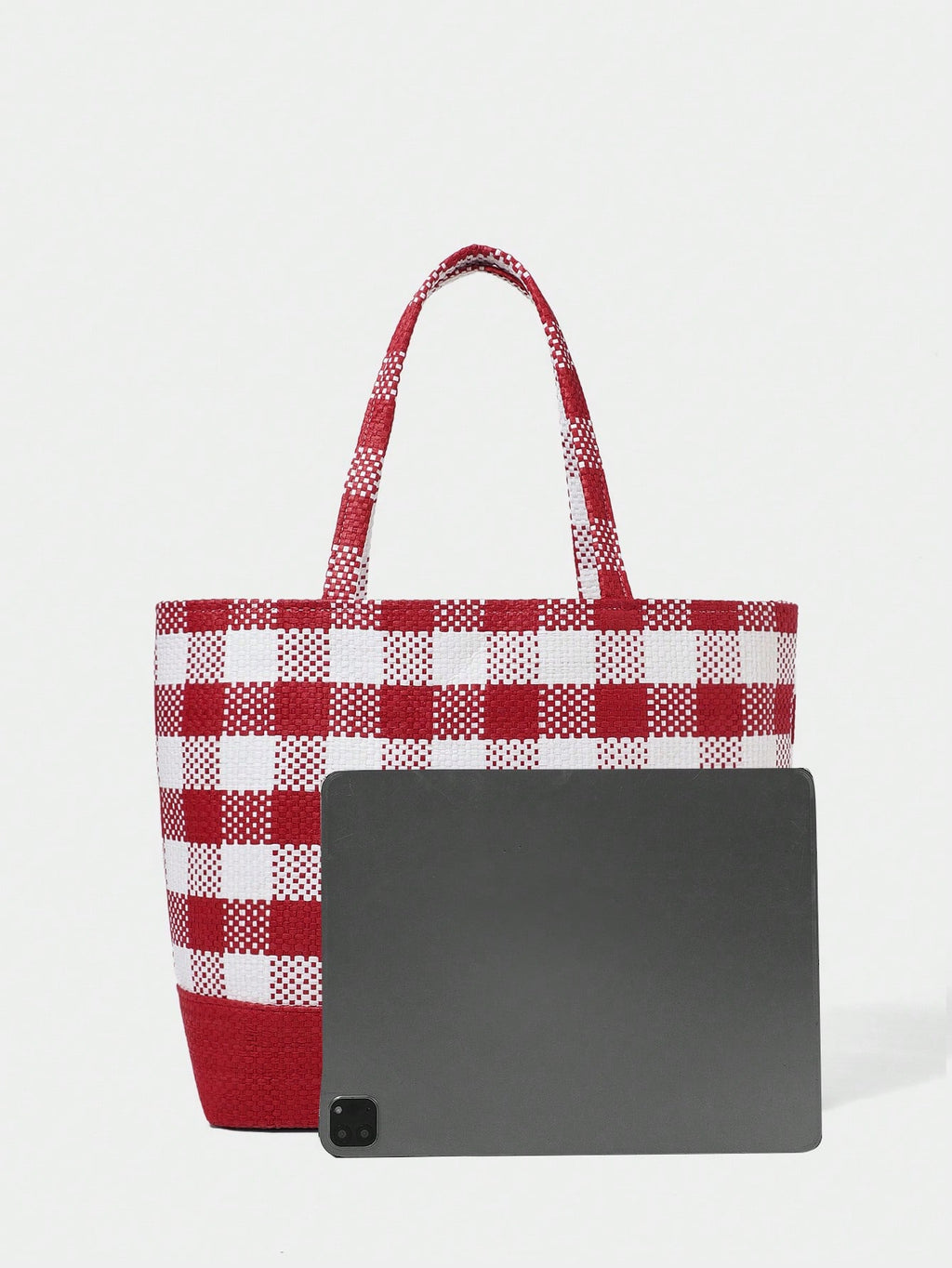MIU torba za odmor, ležerna, u kombinaciji boja i karo uzorka — velika tote torba velikog kapaciteta.