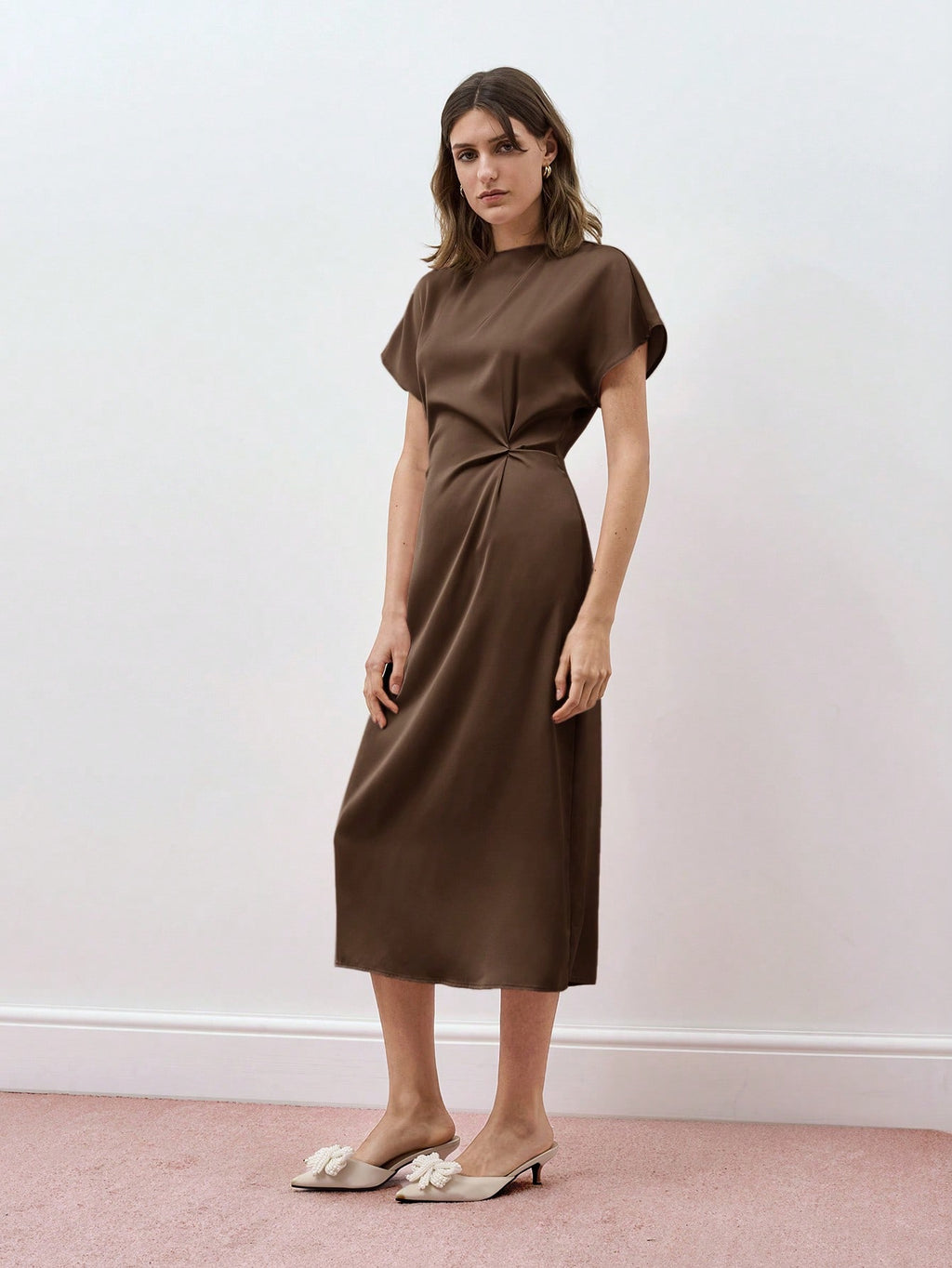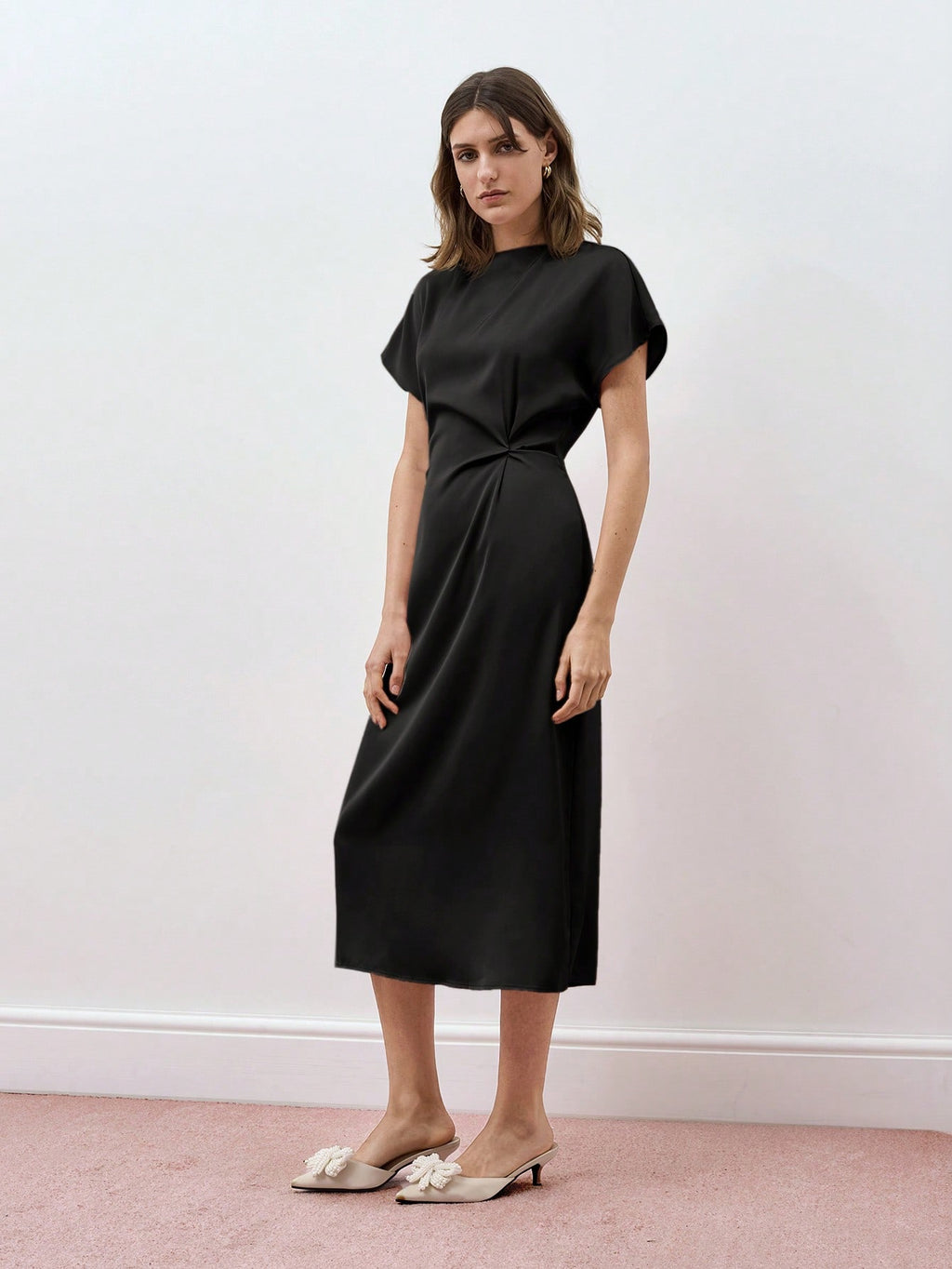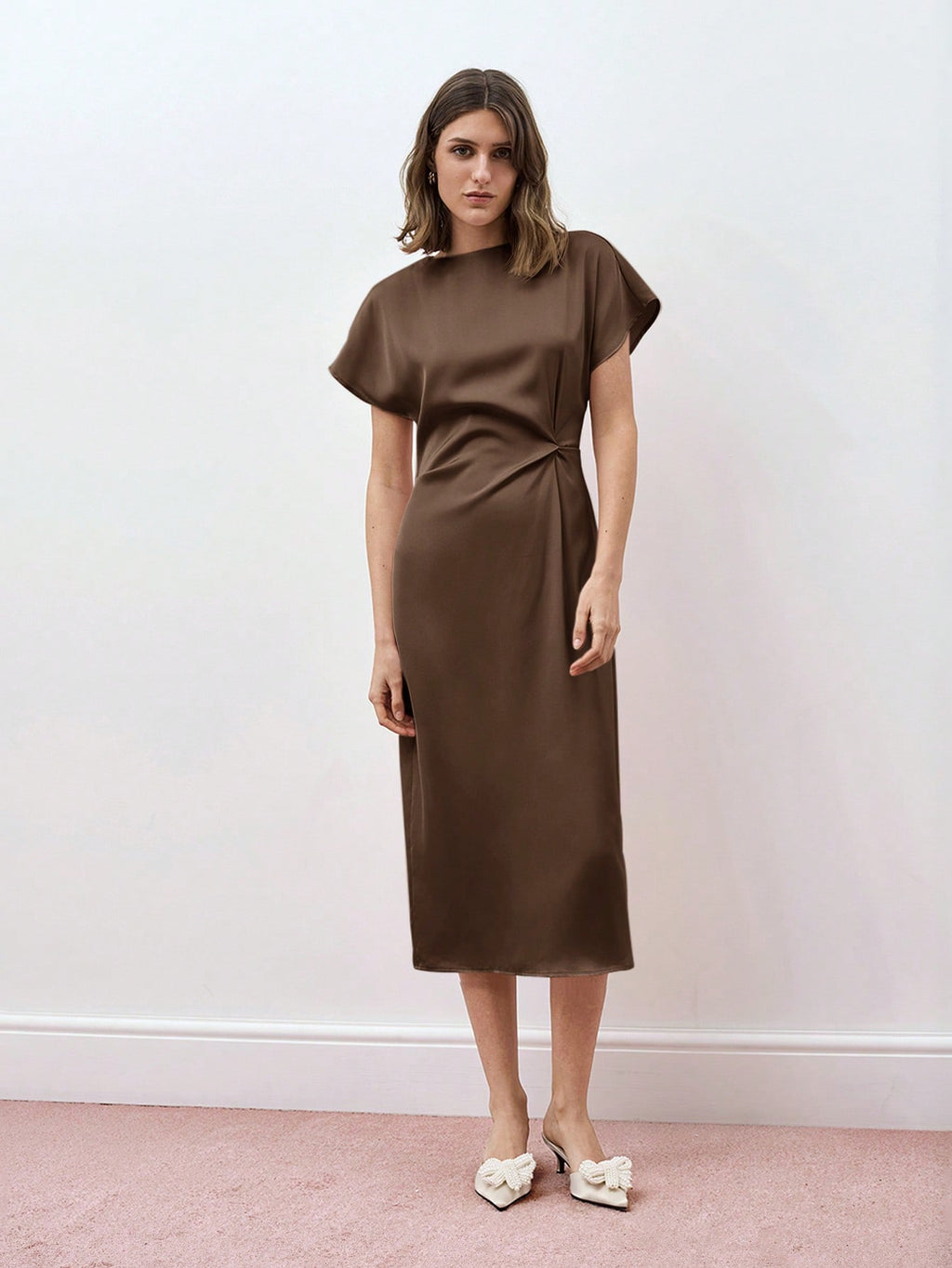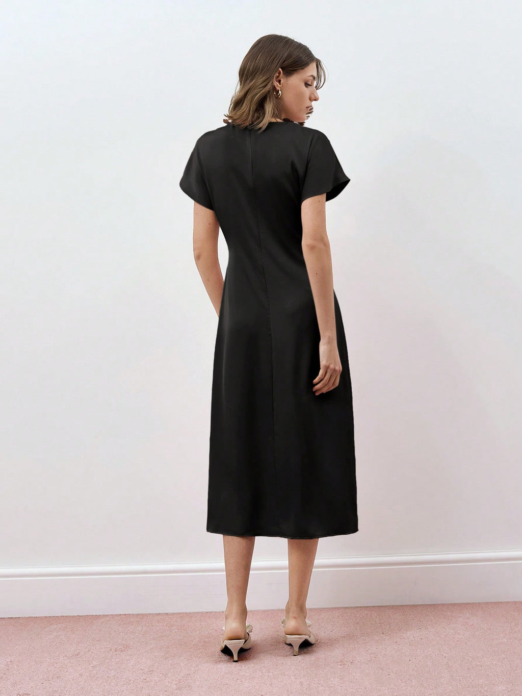 MiuVogue Women Solid Color Round Neck Short Sleeve Casual Fitted Midi Dress,Festival Business Casual Woman
