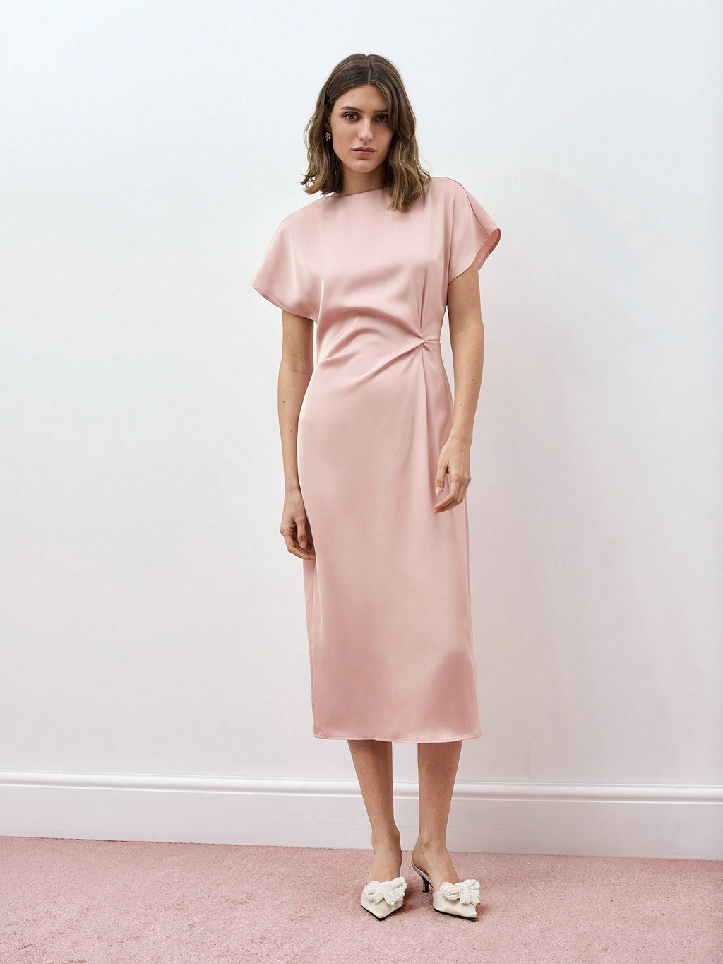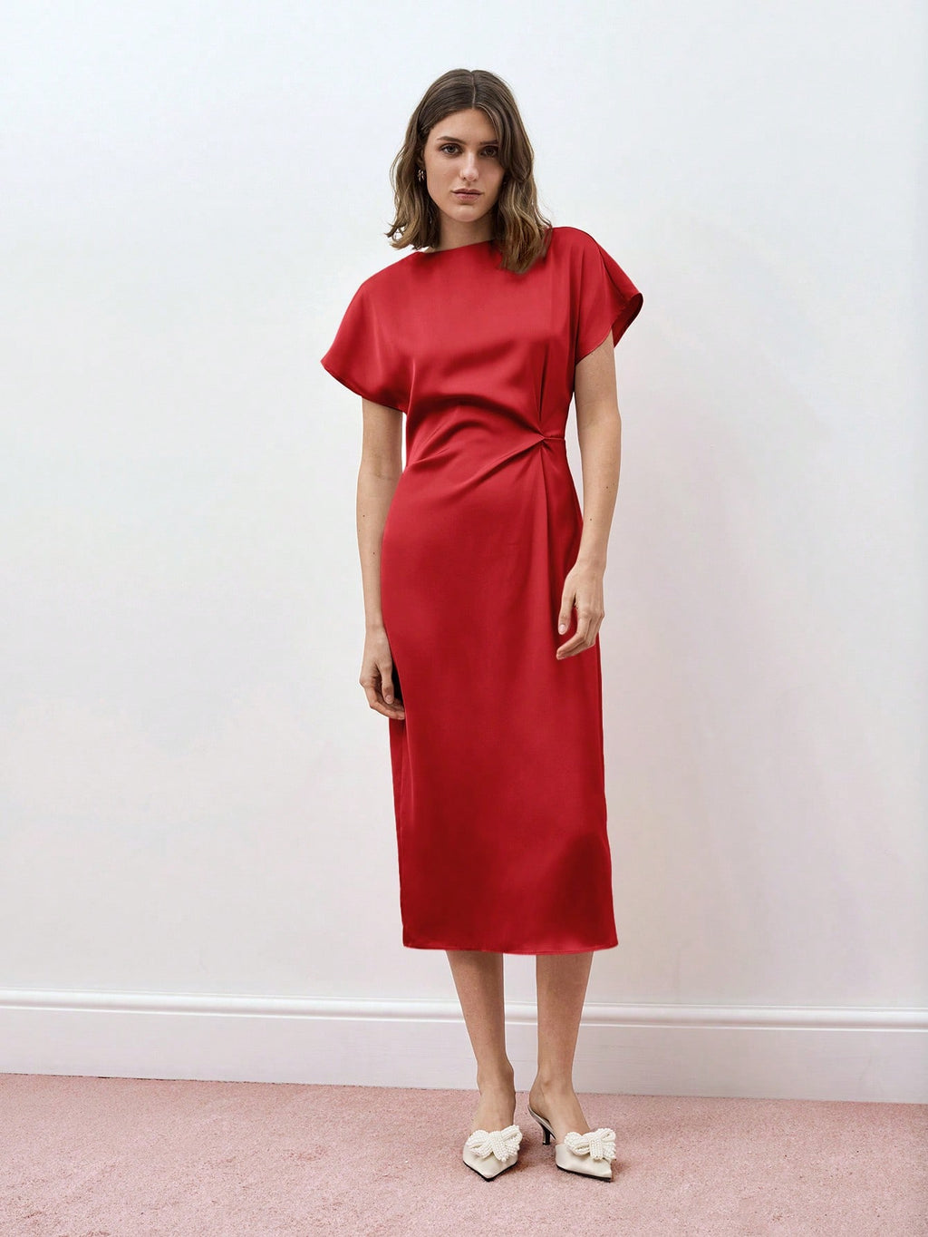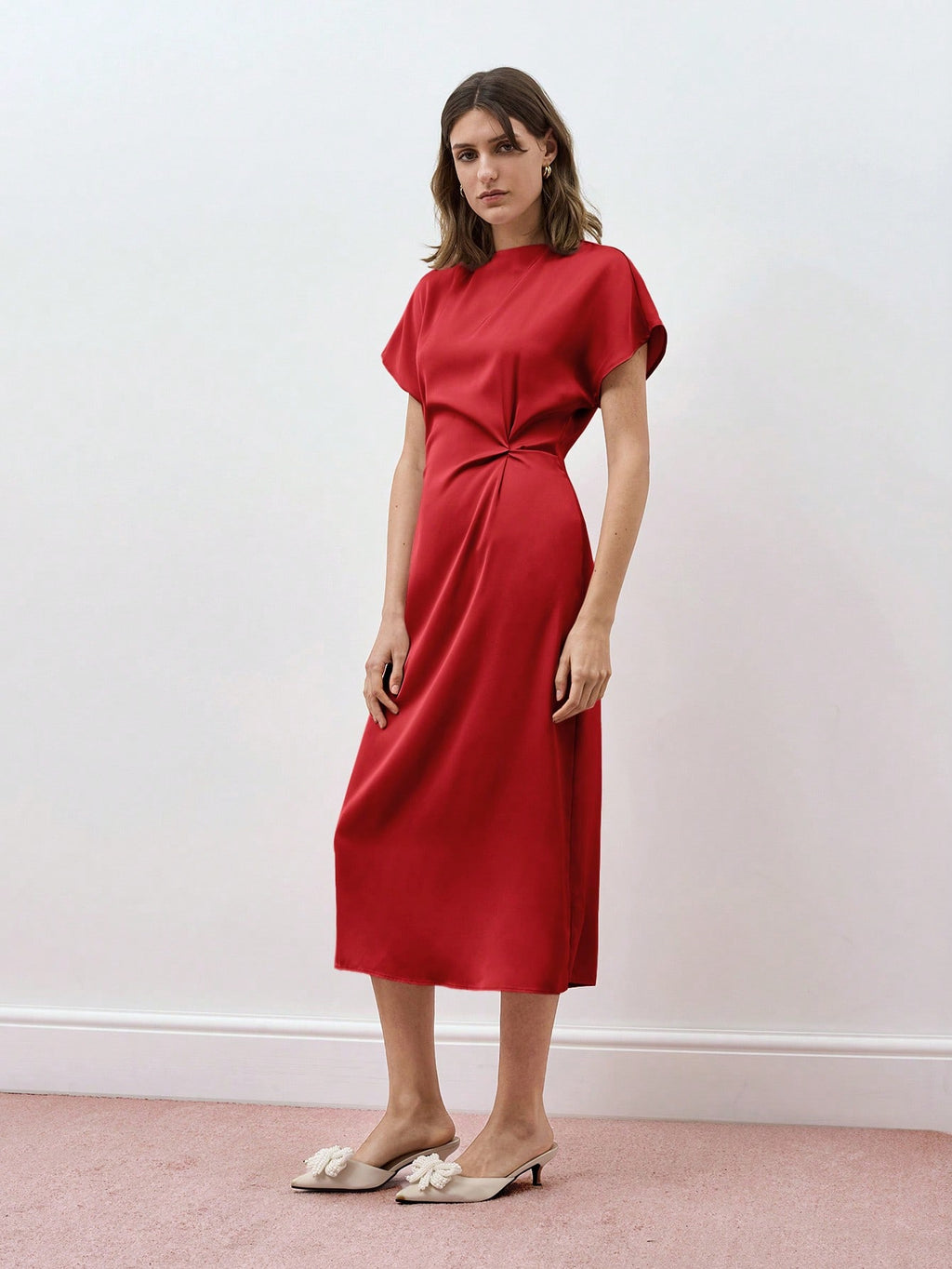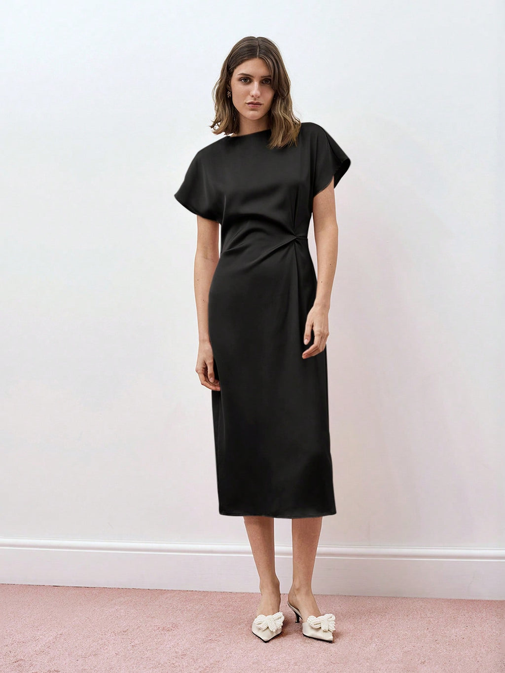 MiuVogue Women Solid Color Round Neck Short Sleeve Casual Fitted Midi Dress,Festival Business Casual Woman