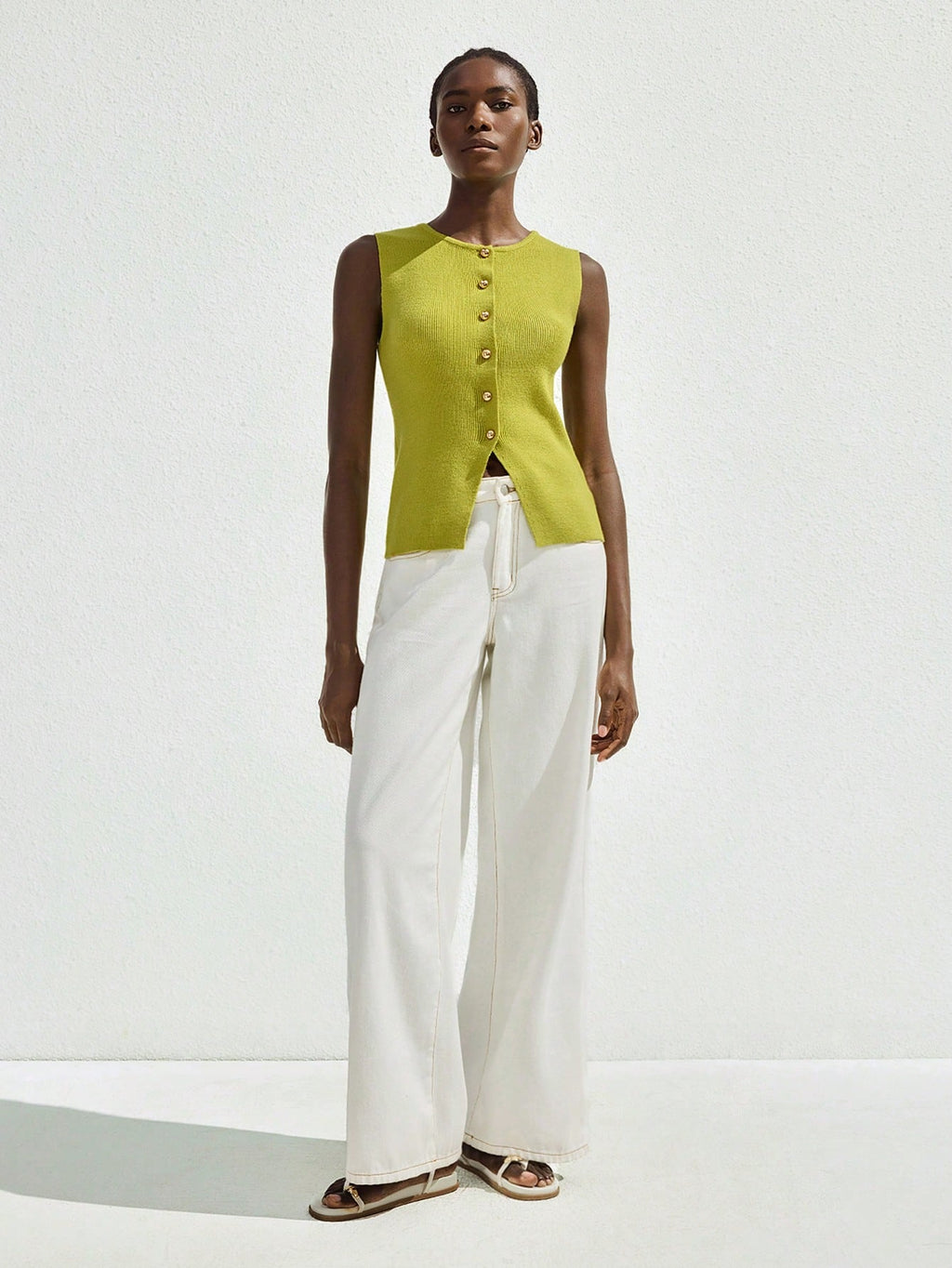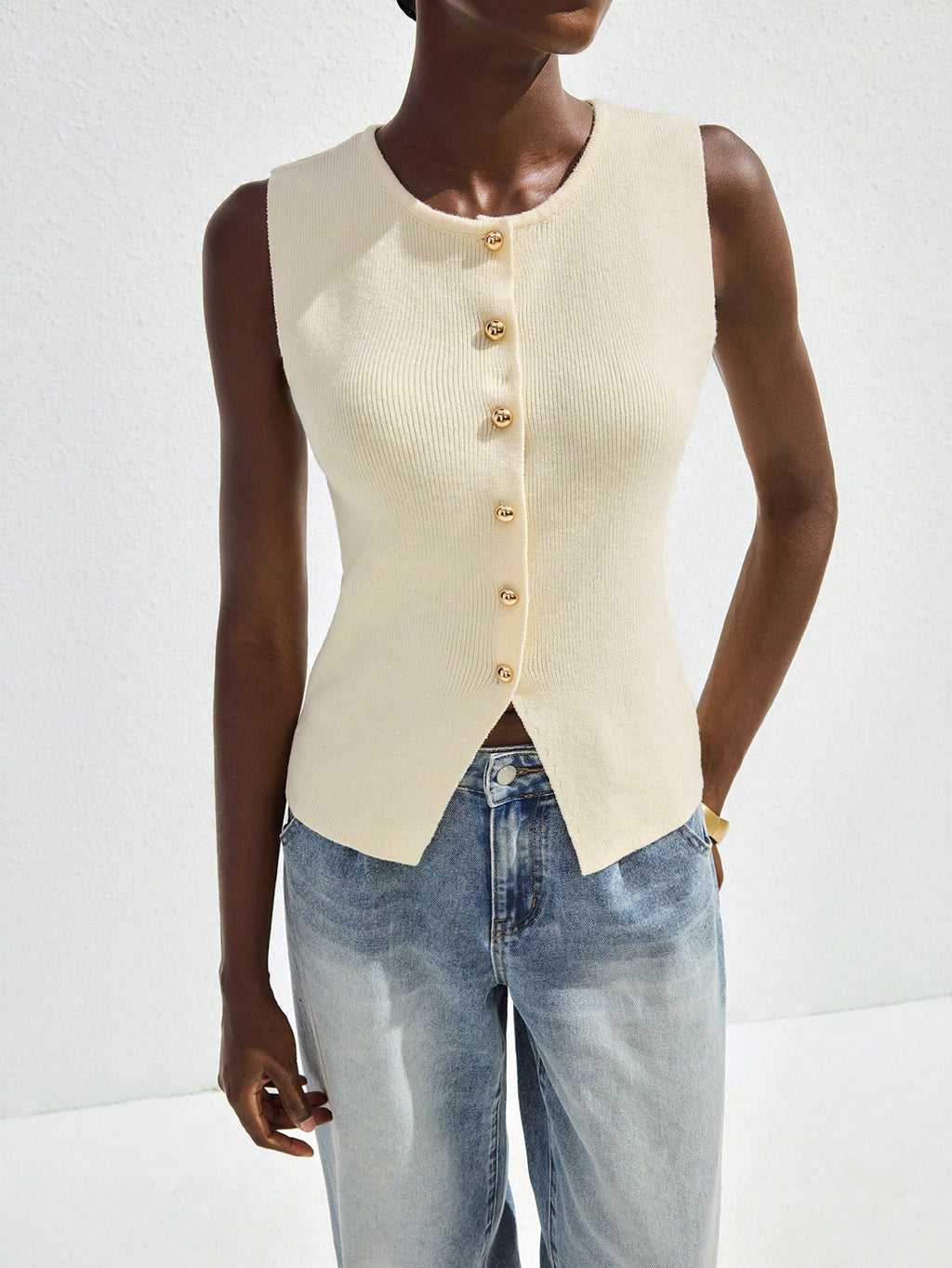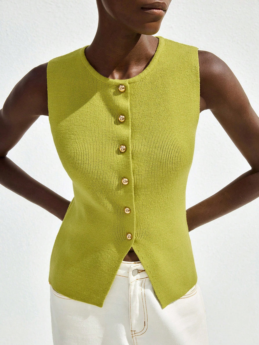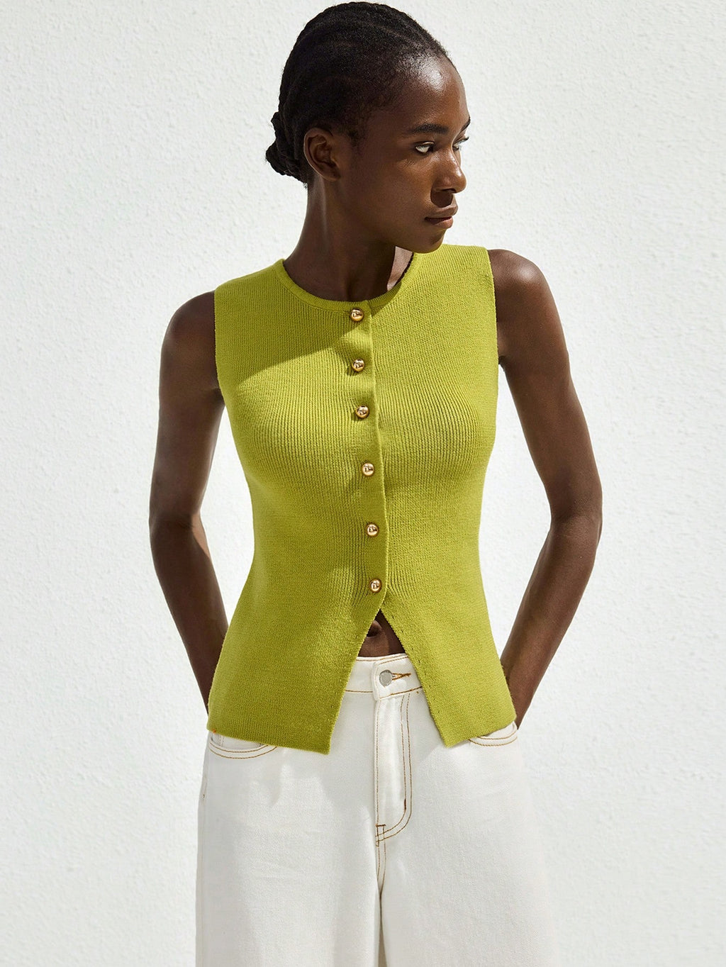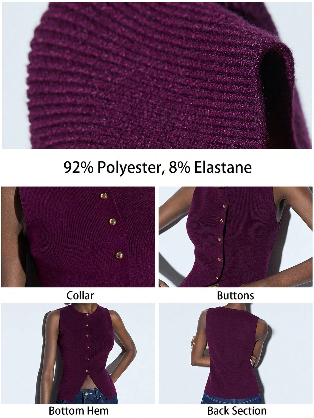 MiuVogue Women's Casual Solid Color Front Button Sleeveless Knit Top, Summer Women Summer Clothing